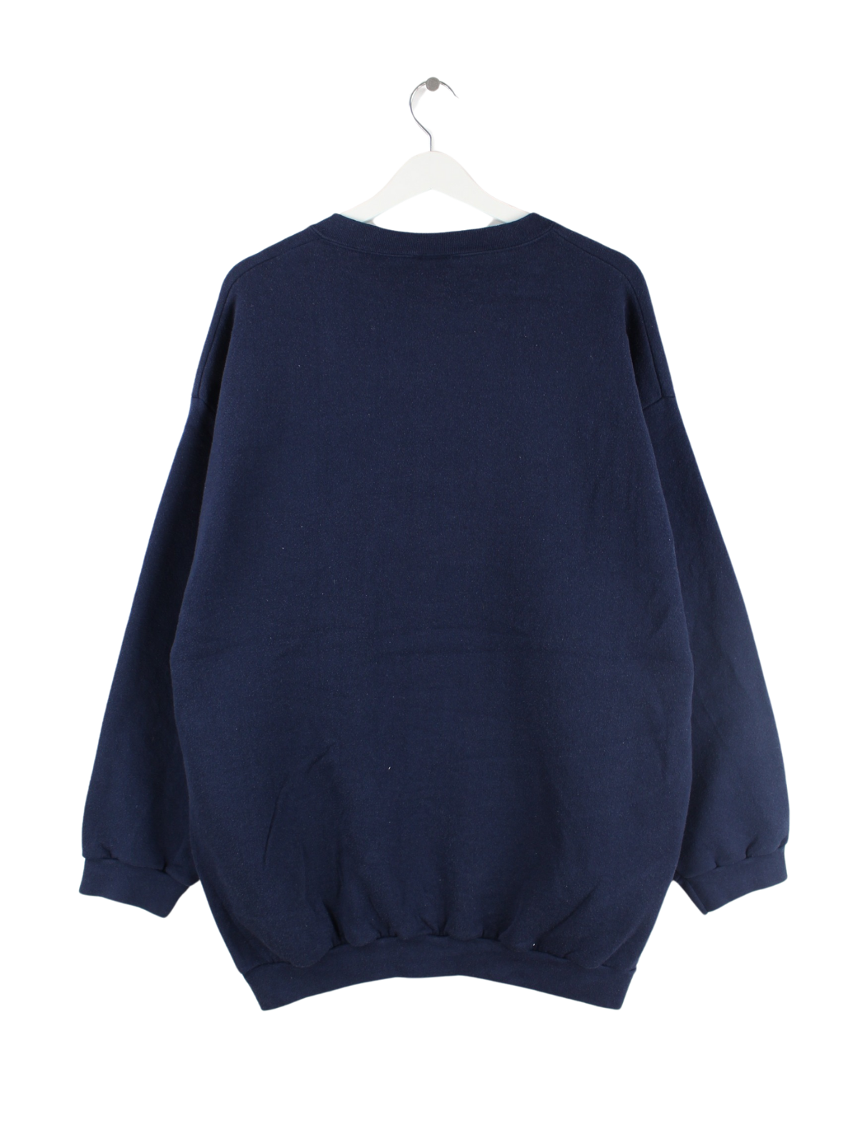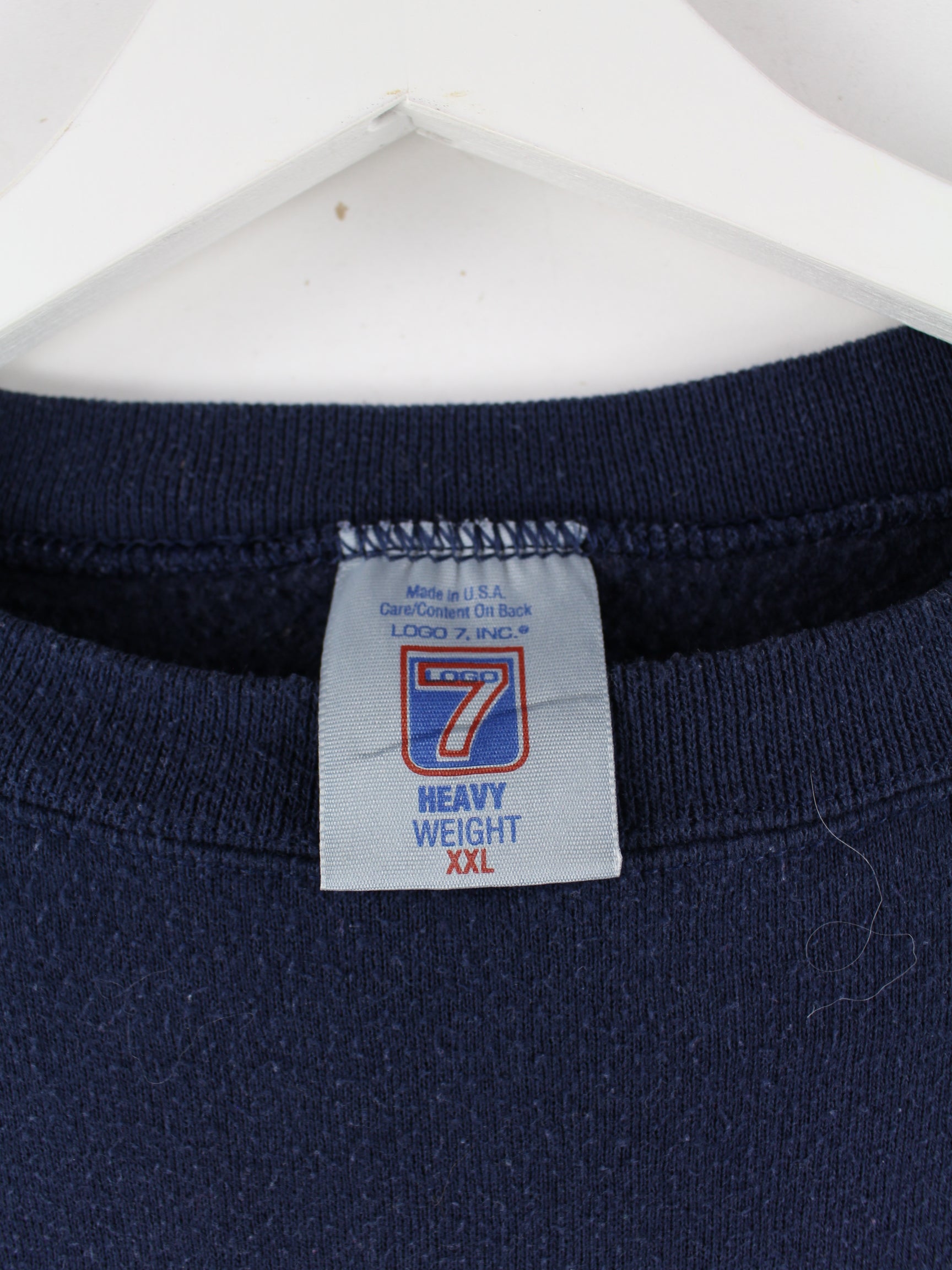 Blauer Sweater mit Stick der Brand Logo 7 aus den 90'ern in Größe XXL. Er ist aus einer Baumwollmischung produziert und in sehr gutem Zustand im Angebot.