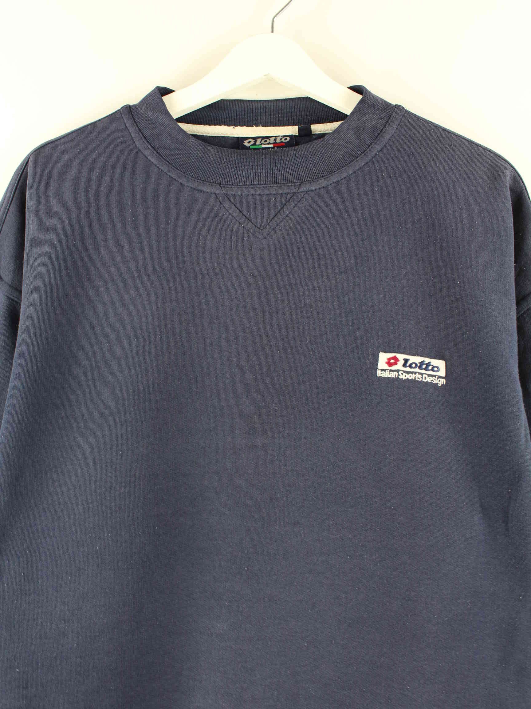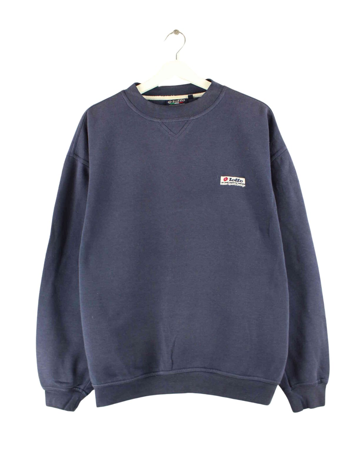 Blue sweater with an embroidered Lotto brand logo from the early 2000s in size M. It is made of a cotton blend and is in very good condition.