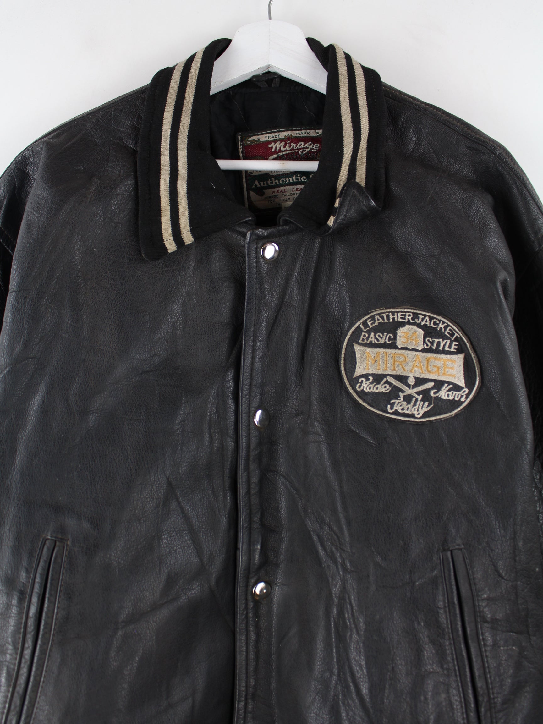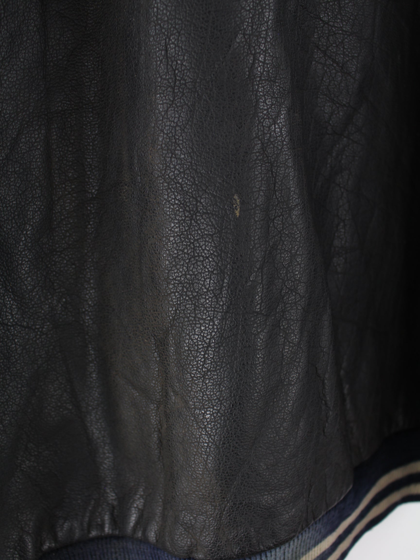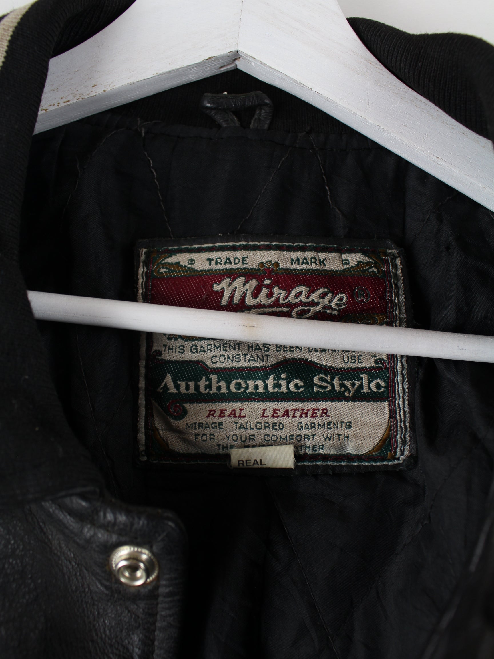 Mirage 90s Vintage Embroidered College Leather Jacket Black XL