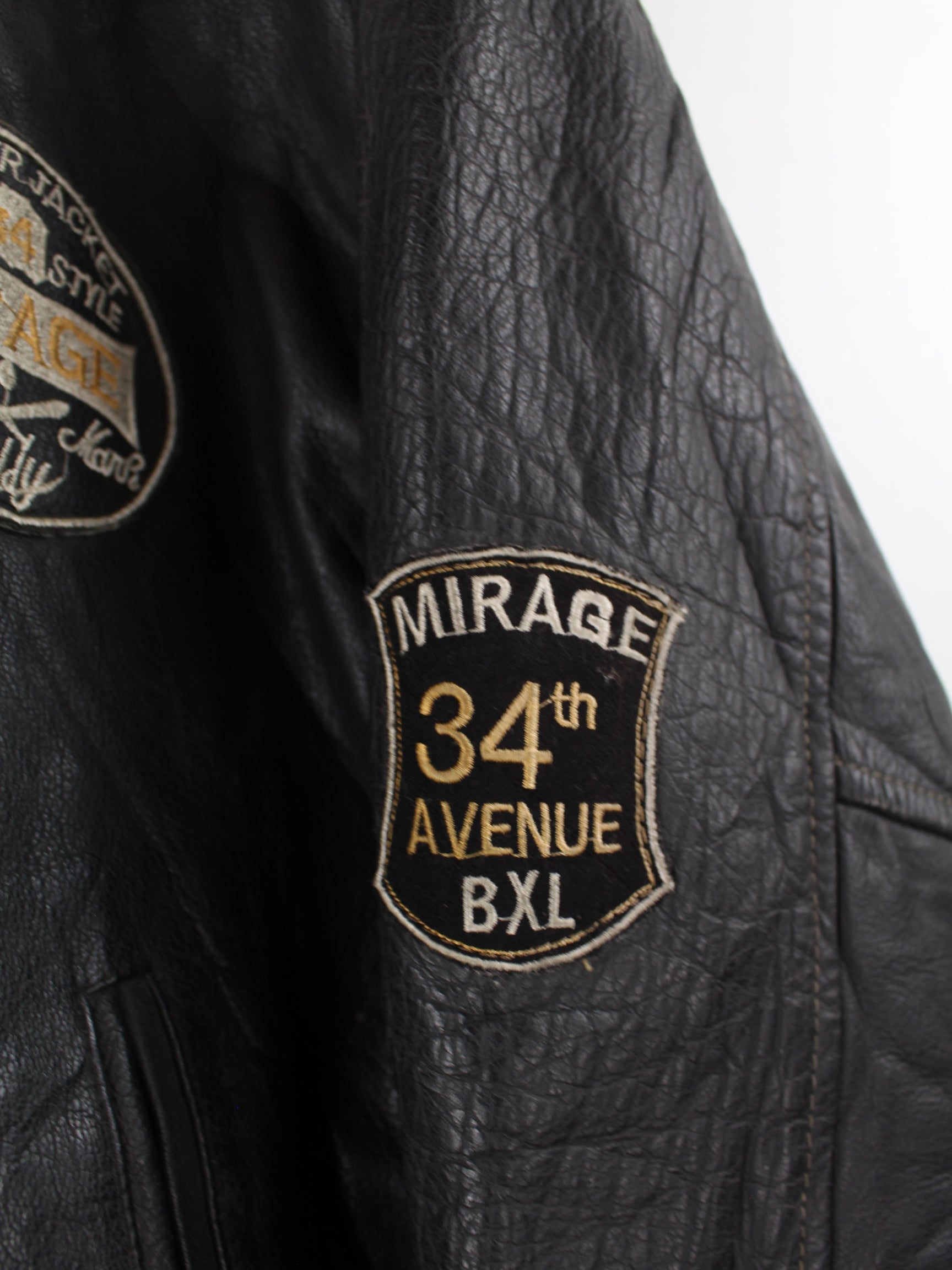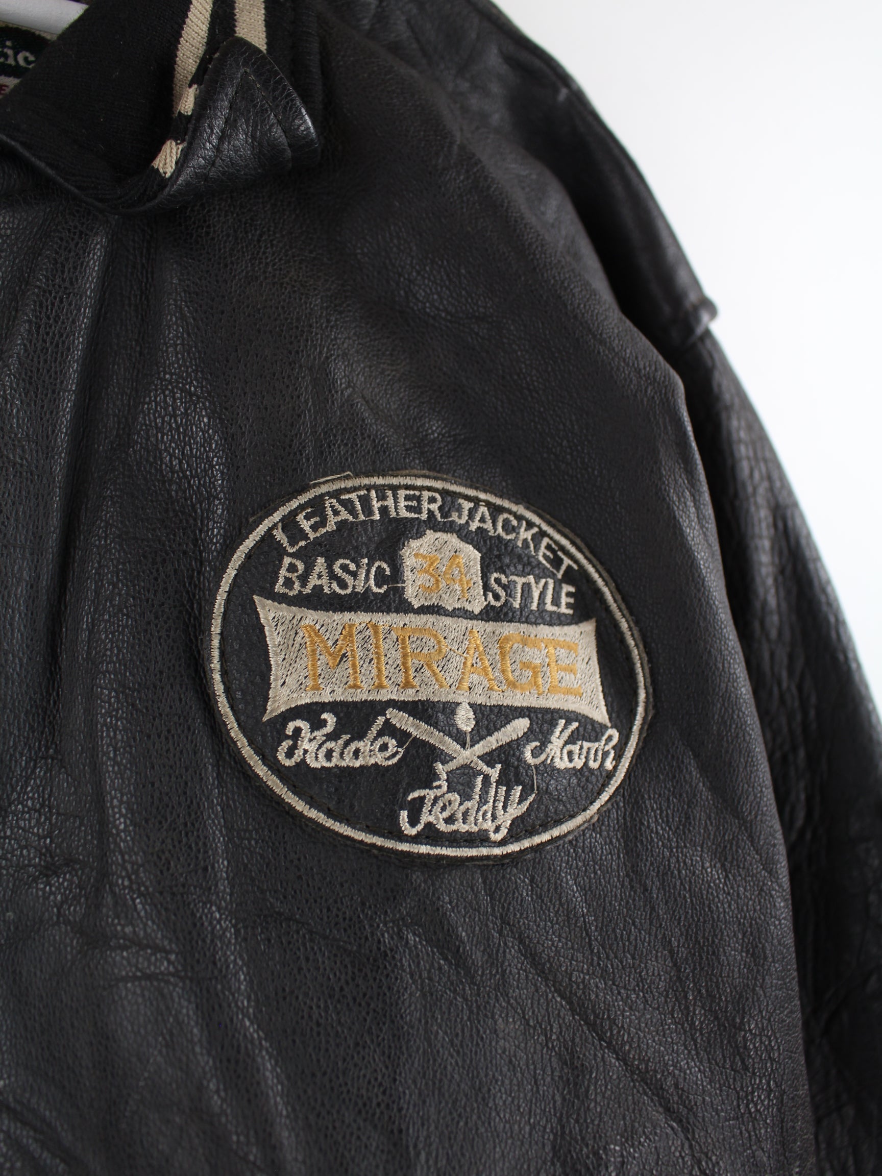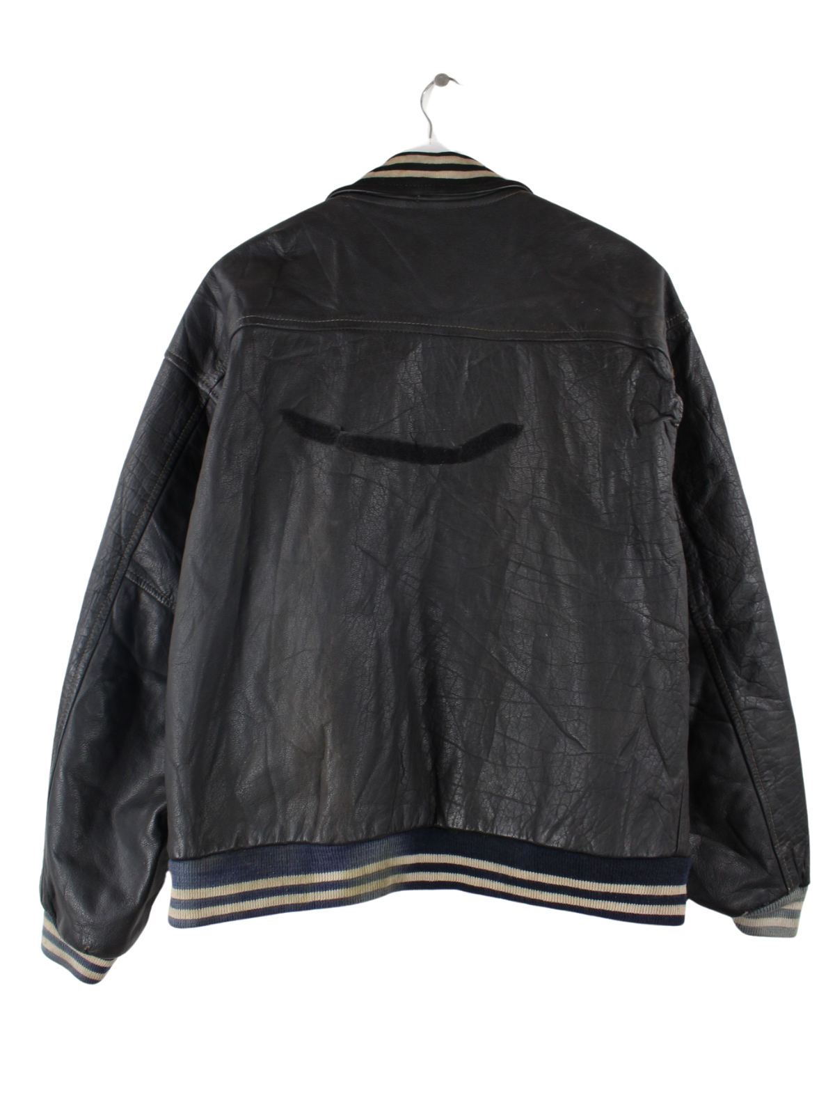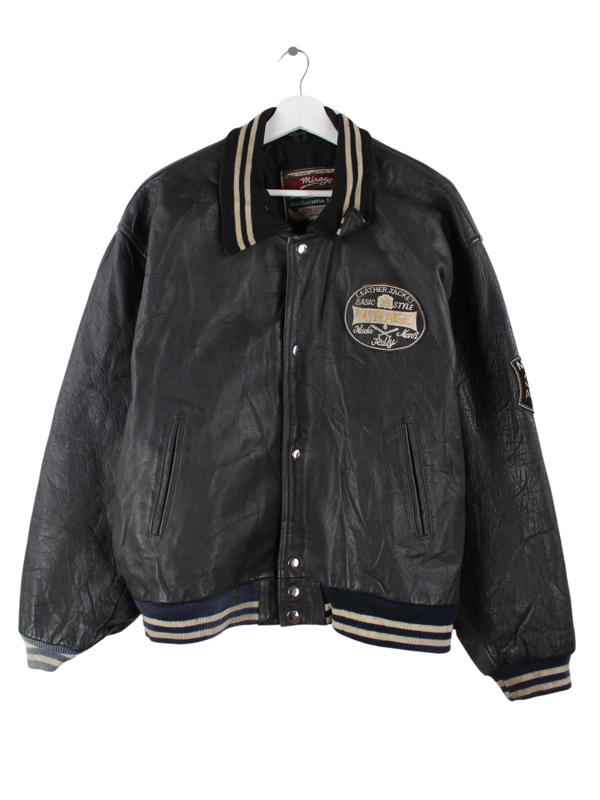 Mirage 90s Vintage Embroidered College Leather Jacket Black XL