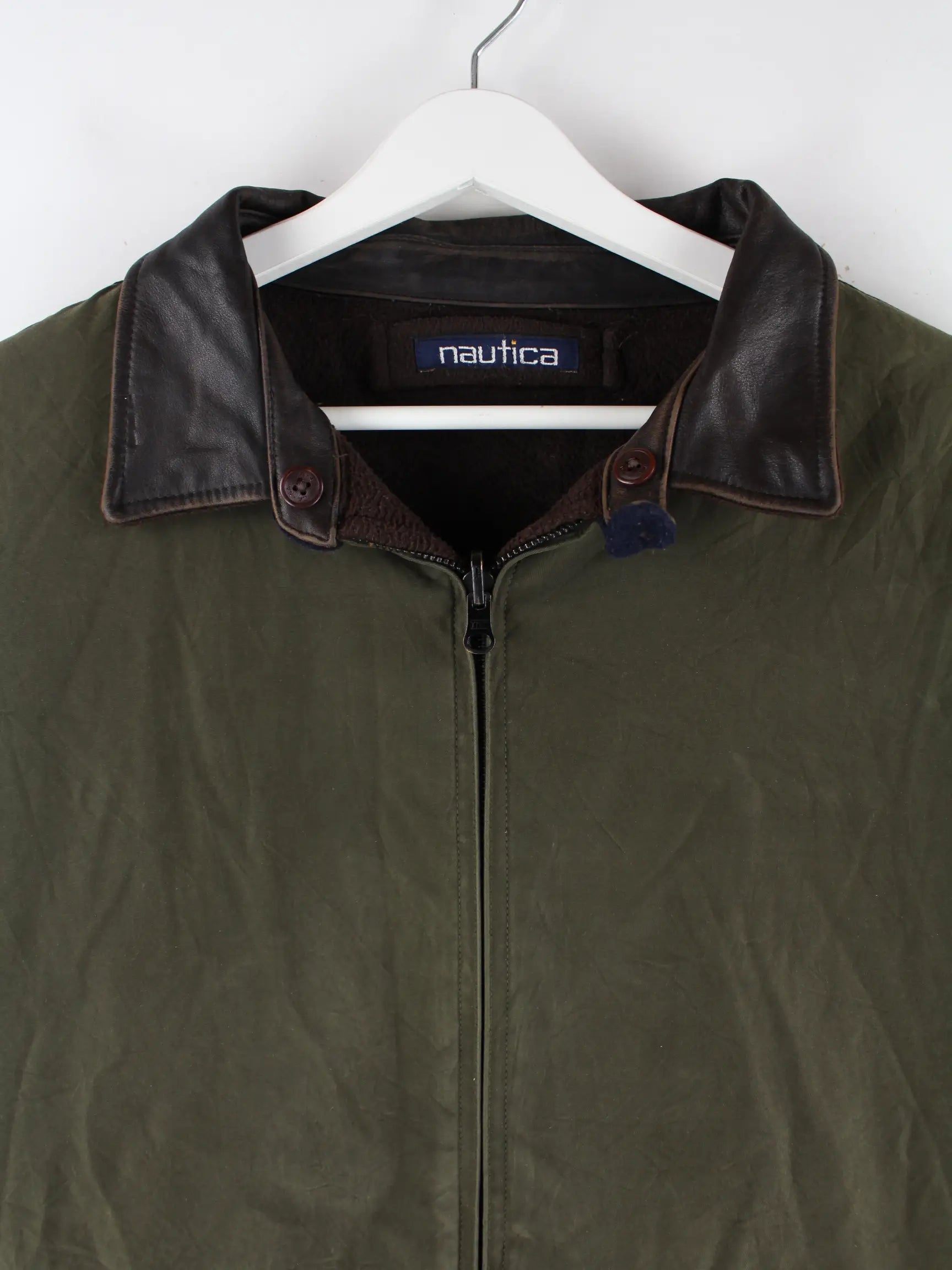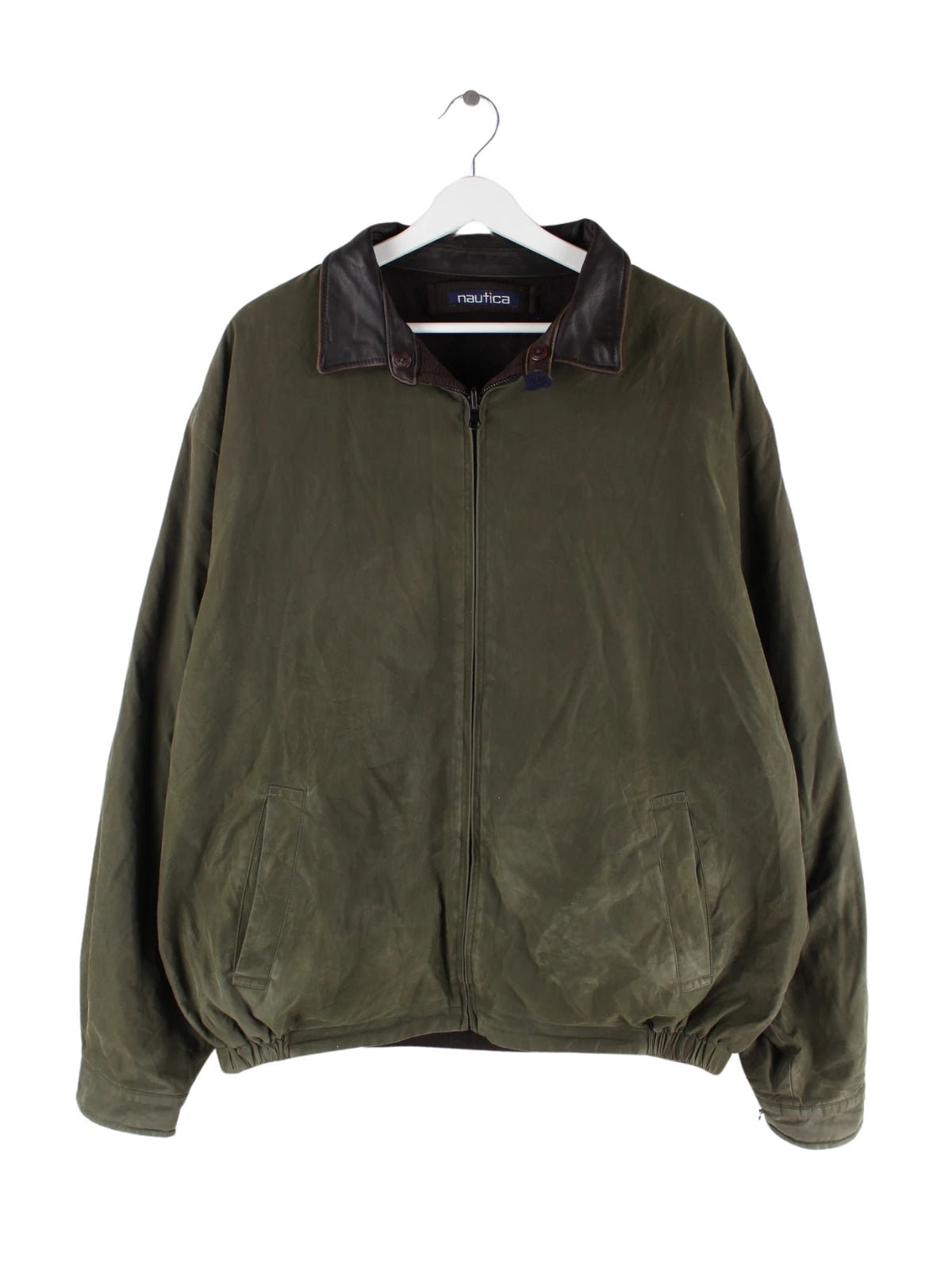 Leichte Jacke vom Label Nautica in Größe XXL aus den 90'ern. Sie ist aus Baumwolle angefertigt und in Grün lieferbar.
