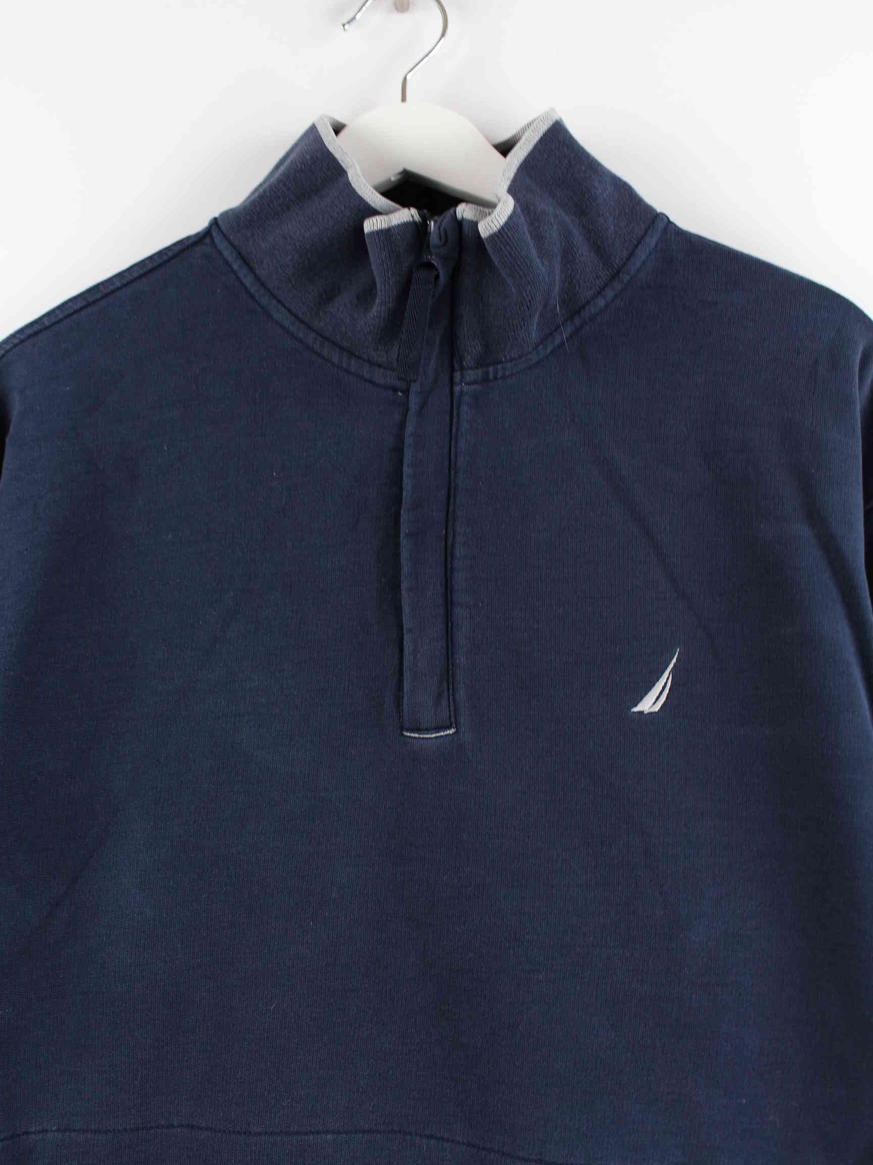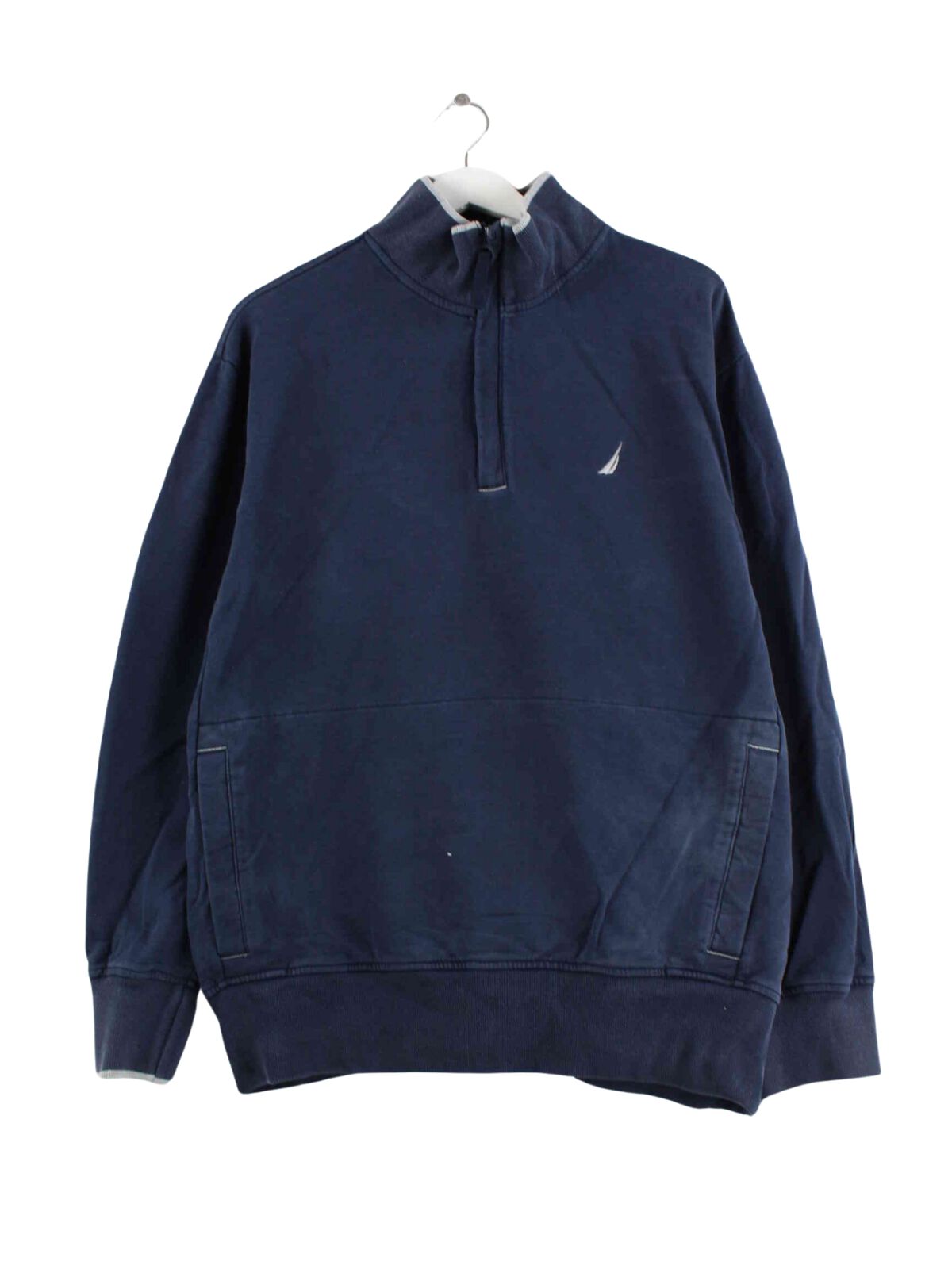 Blue sweater with a short zipper from Nautica in size M. It is made from a cotton blend and is in good condition on stock.