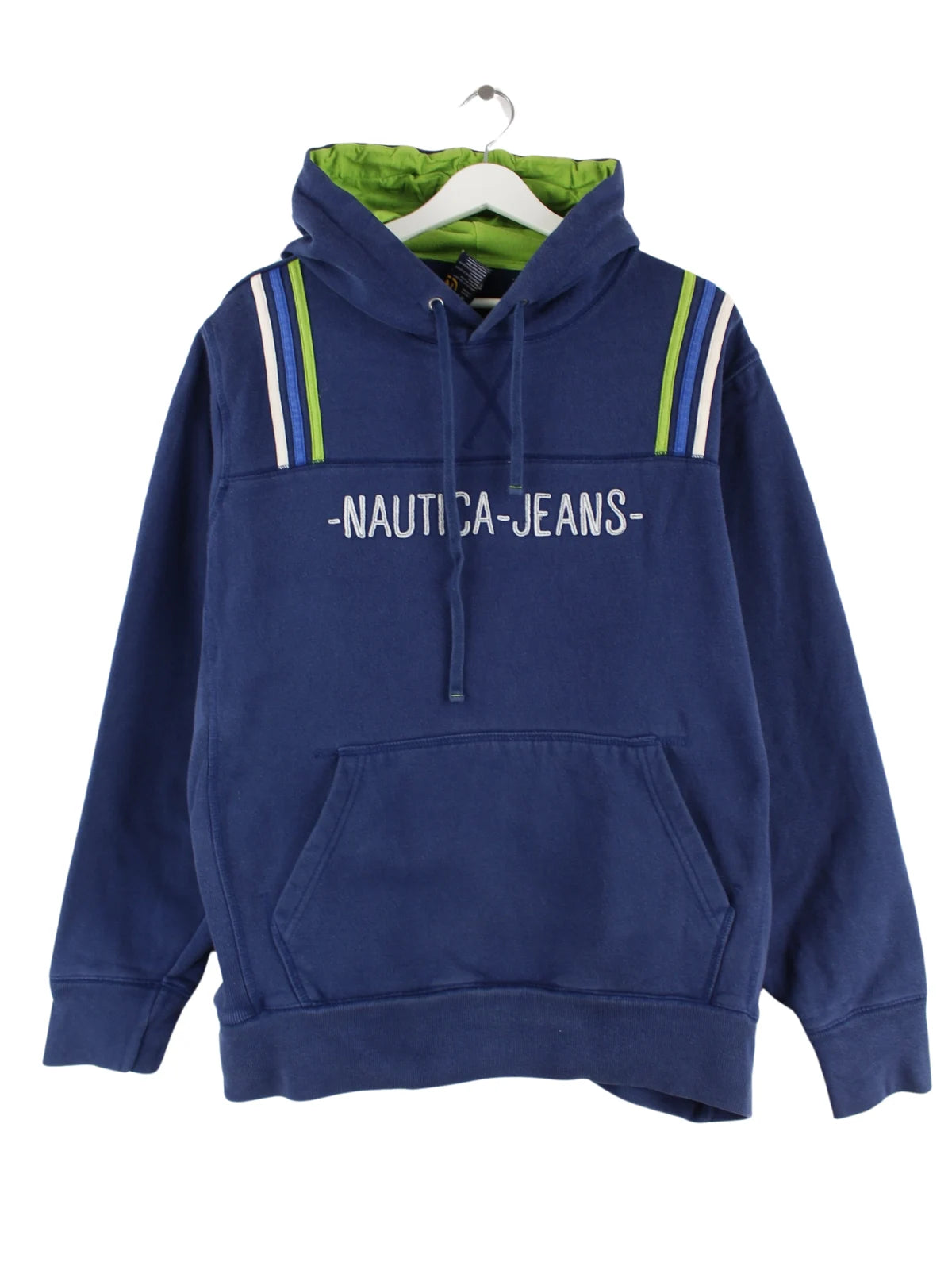 Hoodie vom Label Nautica mit Stickereien in Größe L. Er ist aus einer Baumwollmischung gefertigt und in Blau vorrätig.