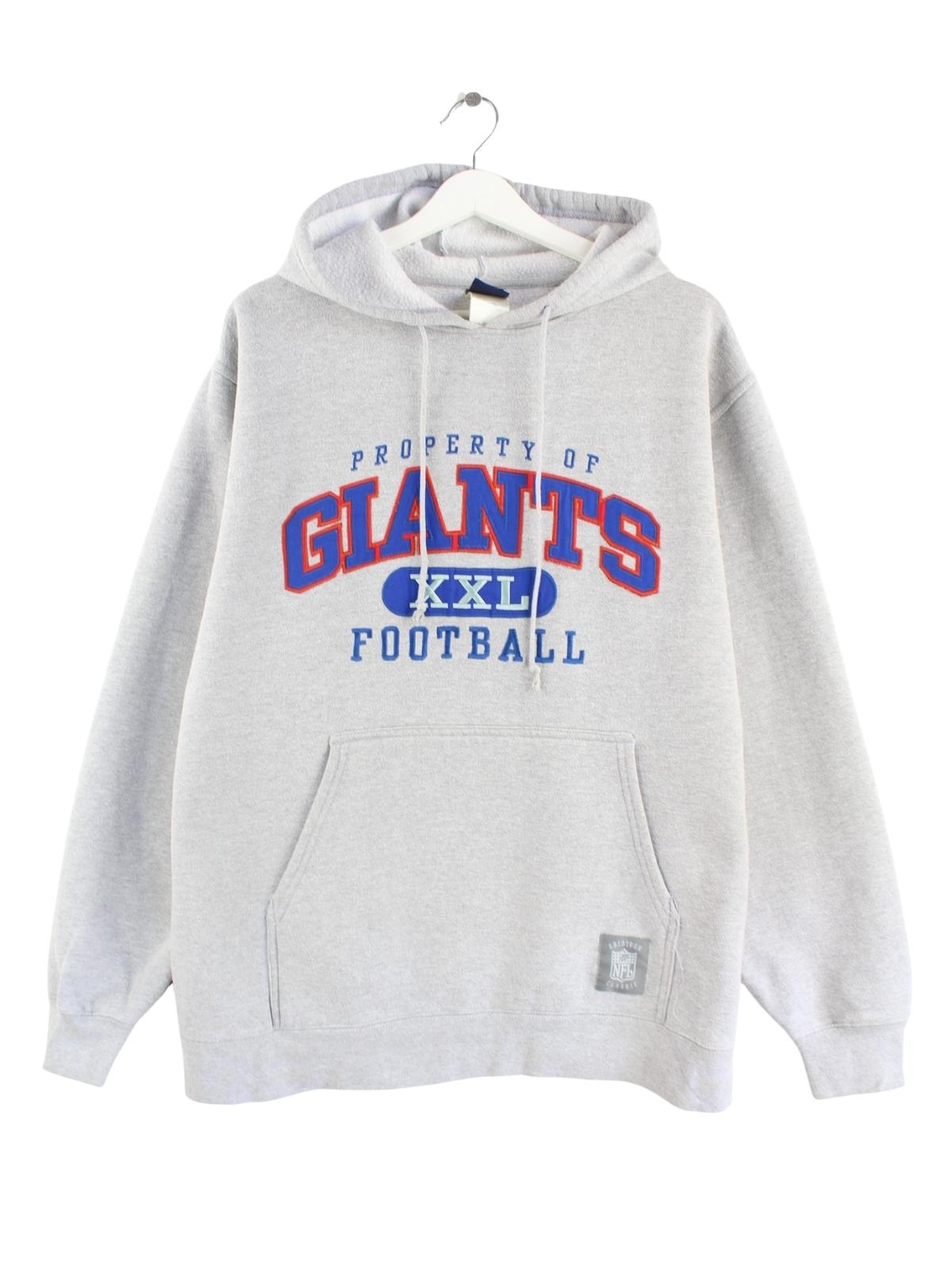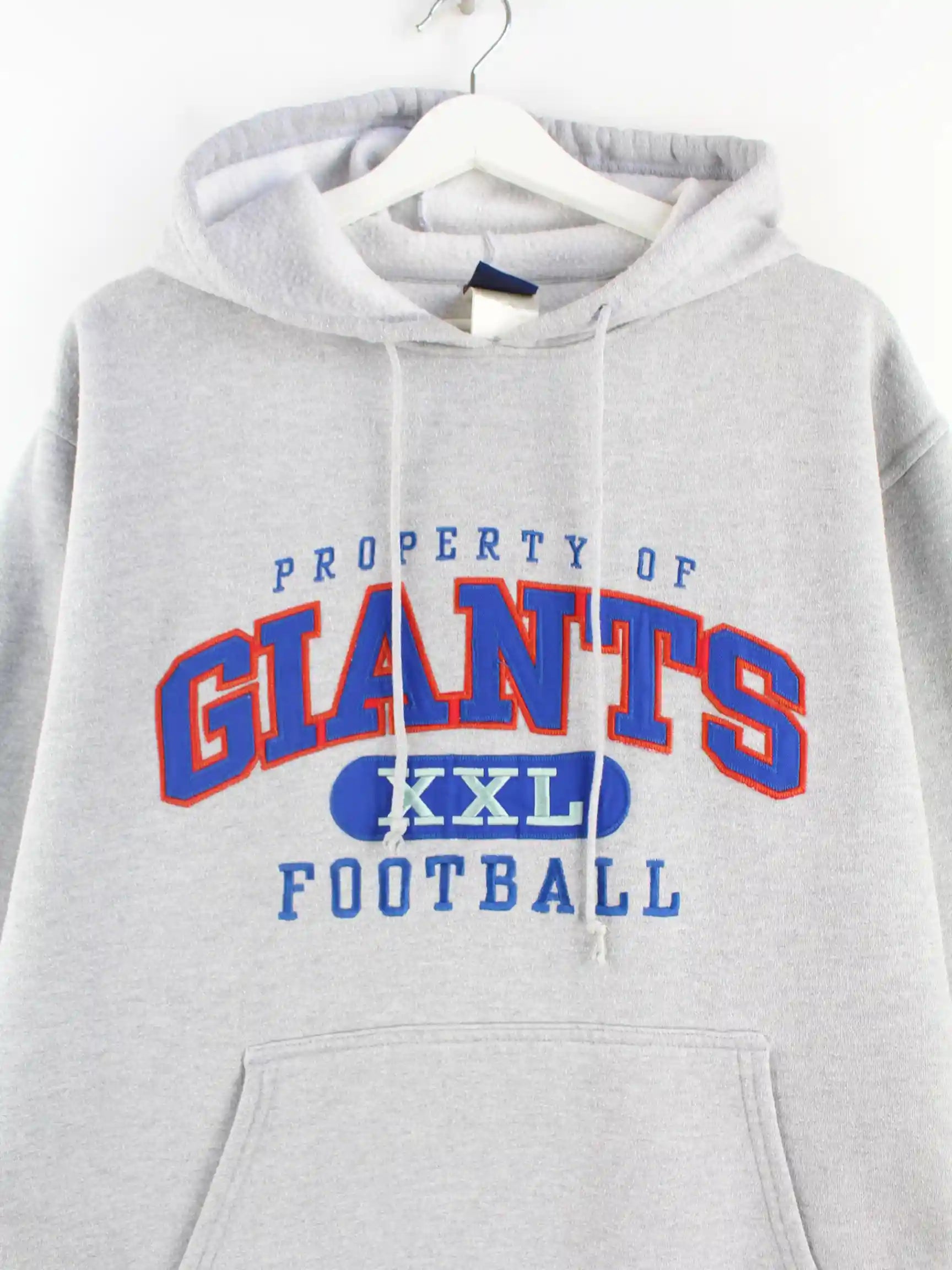 Grauer Hoodie mit gestickten Motiven der Marke NFL in Größe XL. Er ist aus einer Baumwollmischung gemacht und in sehr gutem Zustand bei uns zu bekommen.