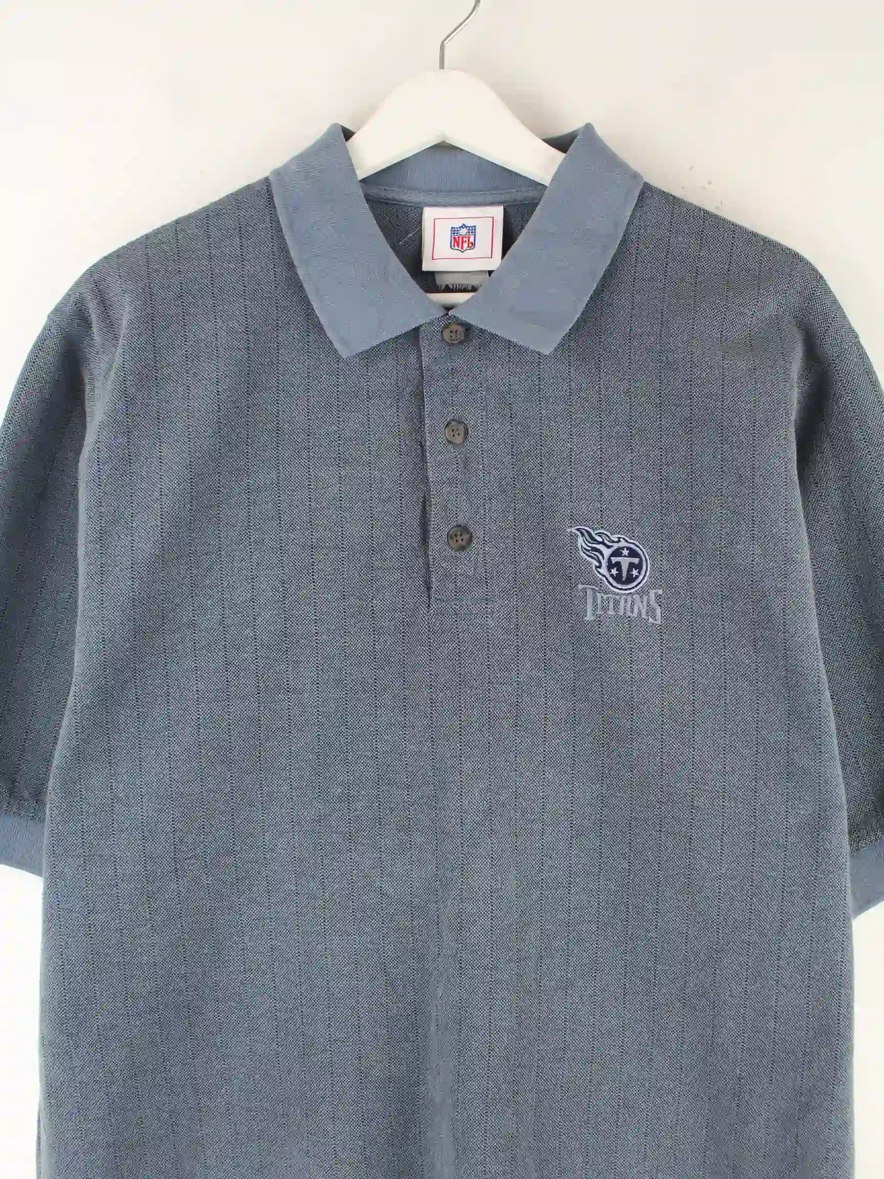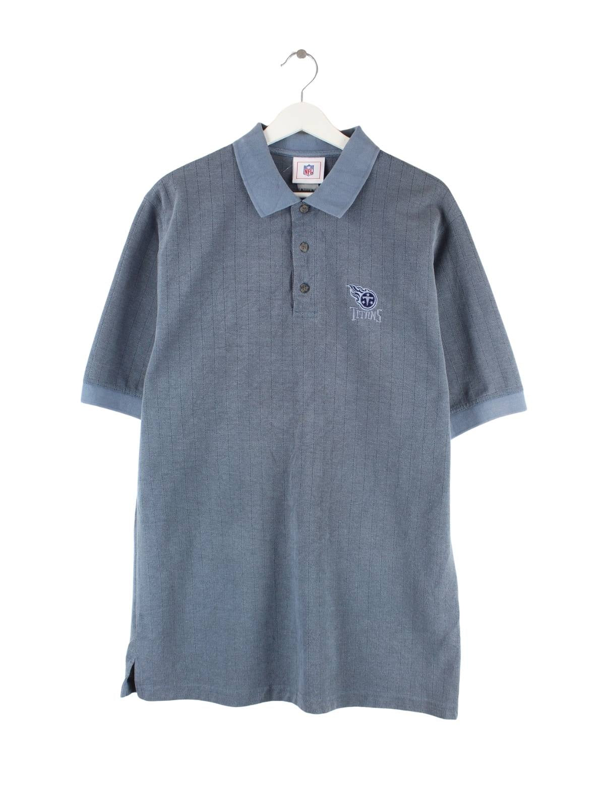 Blaues Poloshirt der Marke NFL in Größe L. Es ist aus Baumwolle gefertigt und in gutem Zustand bei uns zu bekommen.