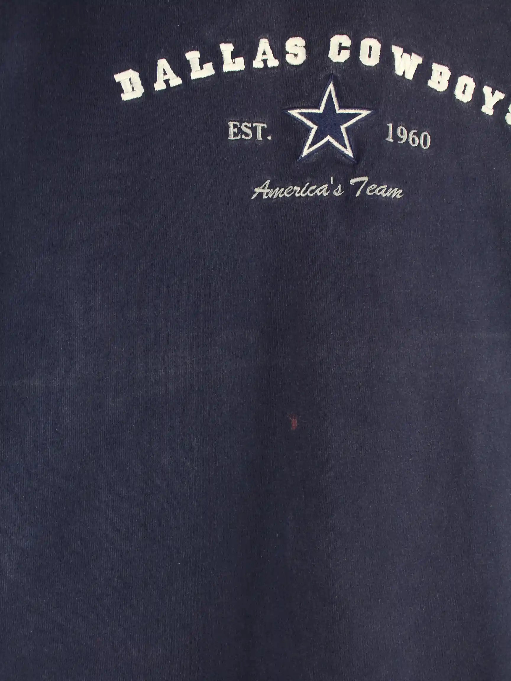 Sweater vom Brand NFL mit Stick in Größe L. Er ist aus einer Baumwollmischung gemacht und in Blau bei uns vorrätig.