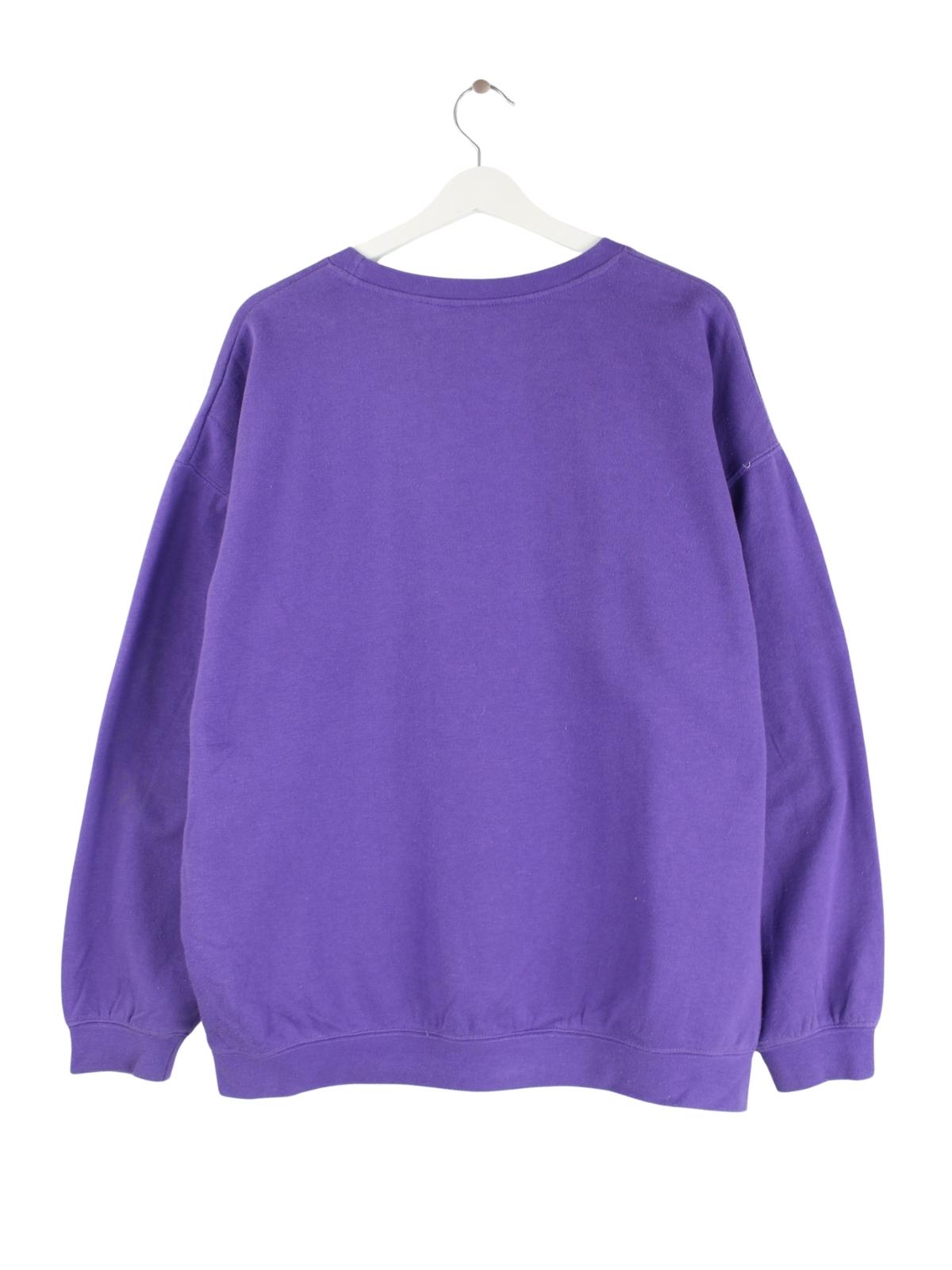 Lilafarbener Sweater vom Label NFL in Größe M. Er ist aus einer Baumwollmischung angefertigt. Den Zustand würden wir als 'In Ordnung' bezeichnen (vergl. Bilder).