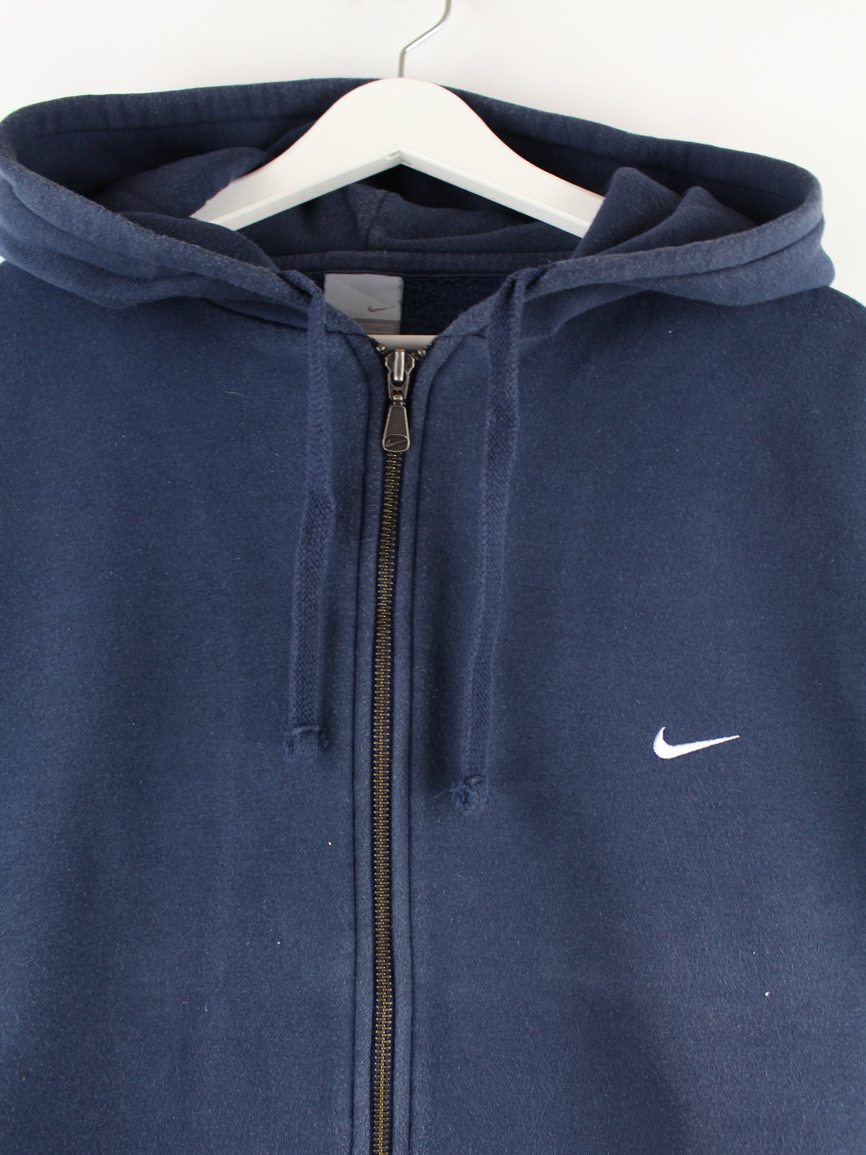 Blue zip-up hoodie from Nike in size XL. It is made from a cotton blend and is in good condition.