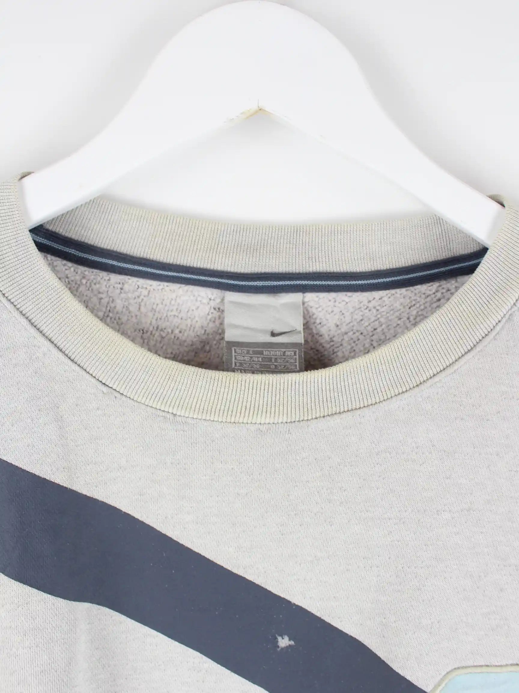 Grauer Sweater vom Brand Nike in Größe L. Er ist aus einer Baumwollmischung hergestellt. Den Zustand würden wir als 'In Ordnung' bezeichnen (vergl. Bilder).