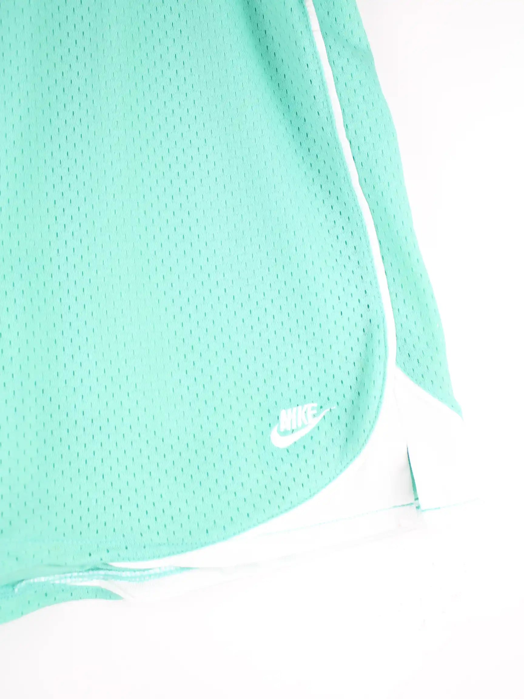 Shorts aus dem Hause Nike in Größe L. Sie sind aus Synthetik produziert und in Türkis bei uns zu bekommen.