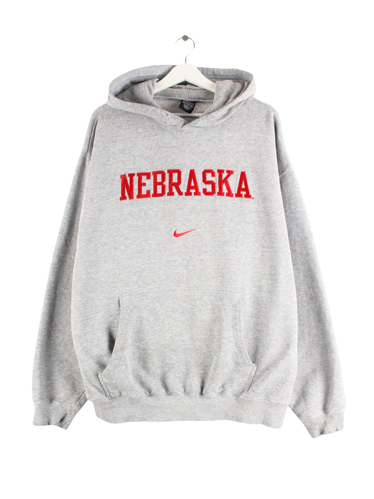 Nike 00s Nebraska Center Swoosh Embroidered Hoodie Grau XXL