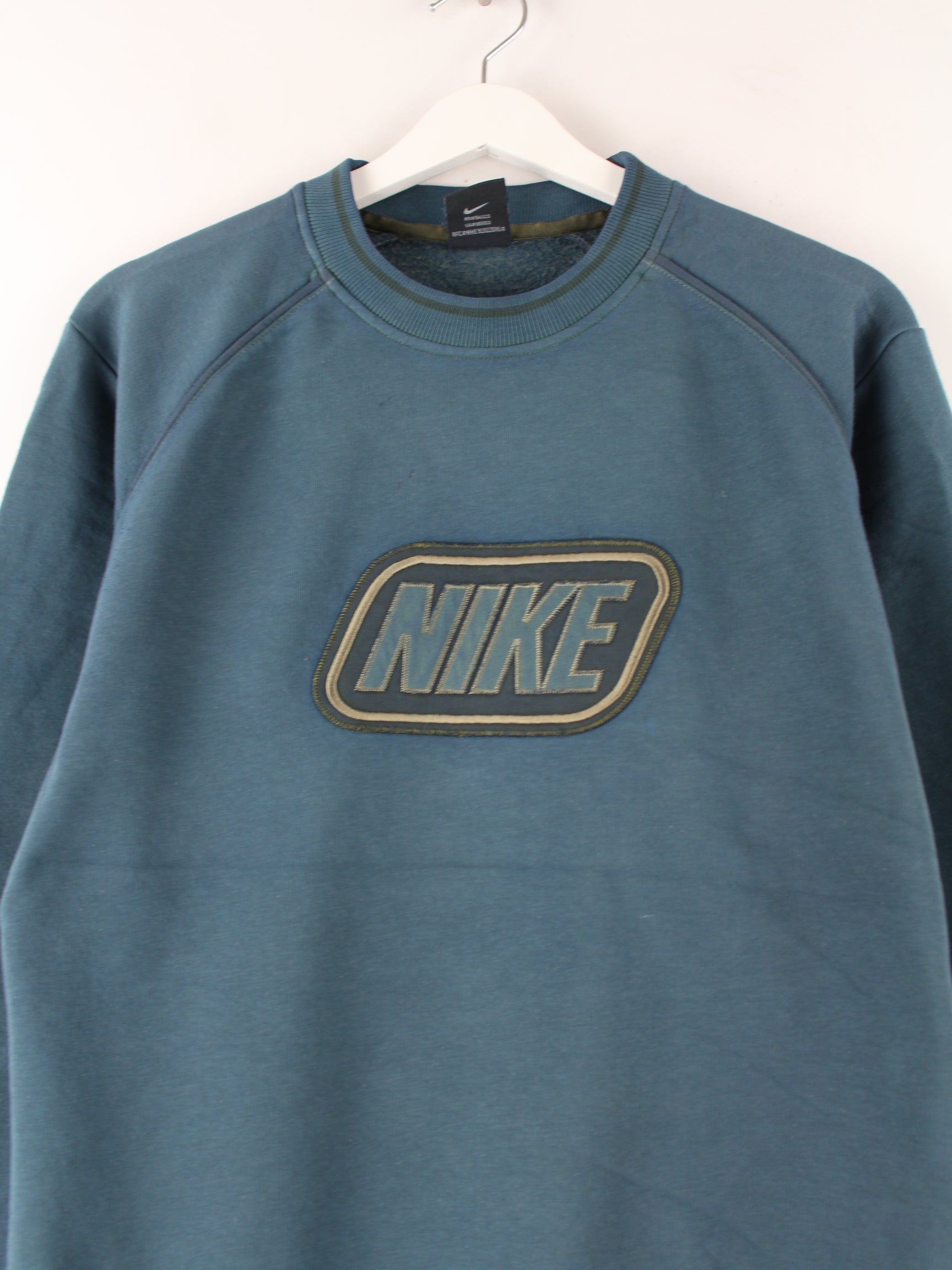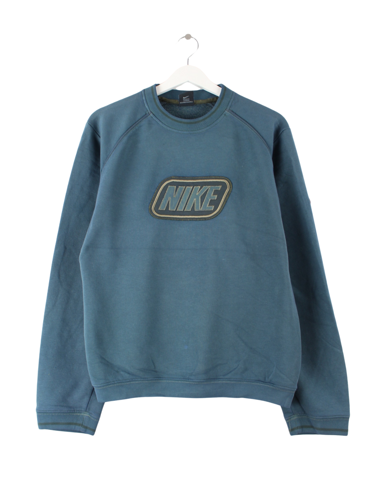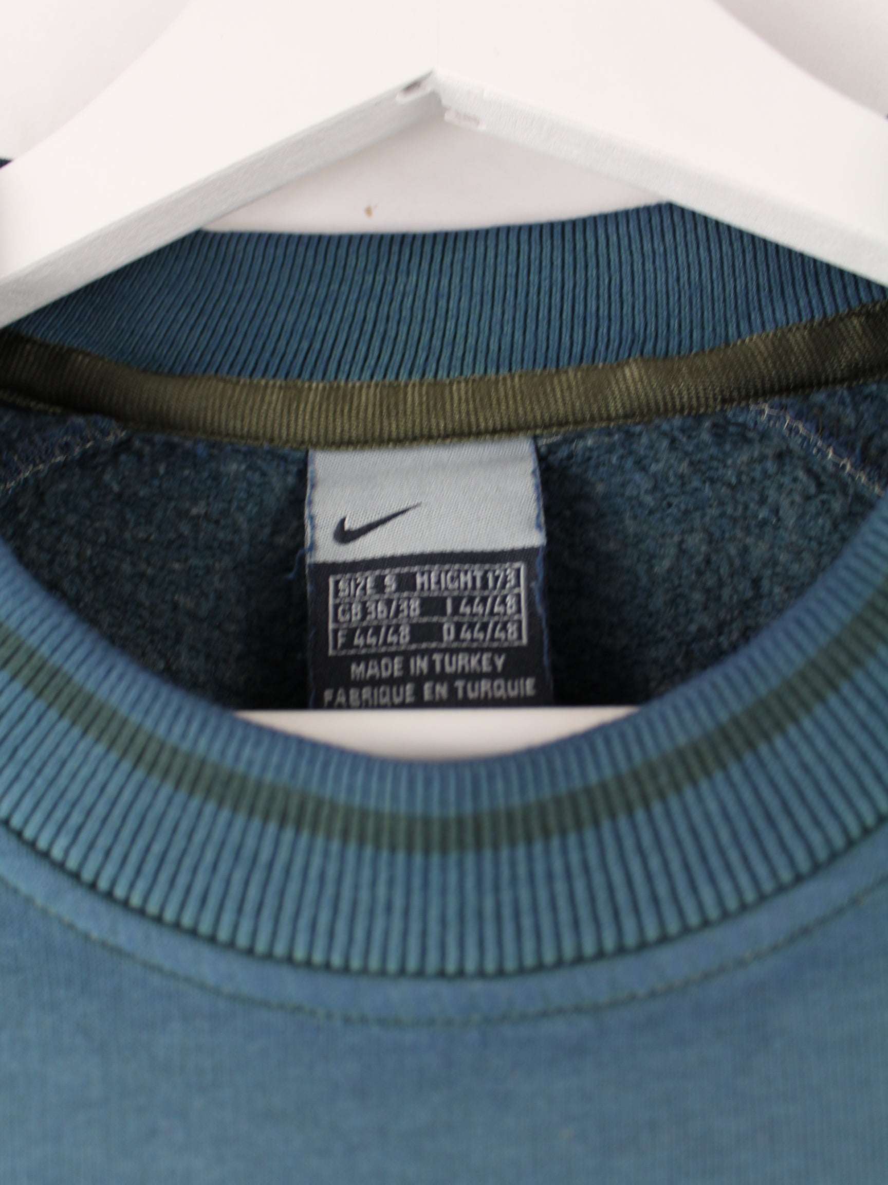 Blue sweater with embroidery from the label Nike in size S. It is made of a cotton blend and is in good condition.