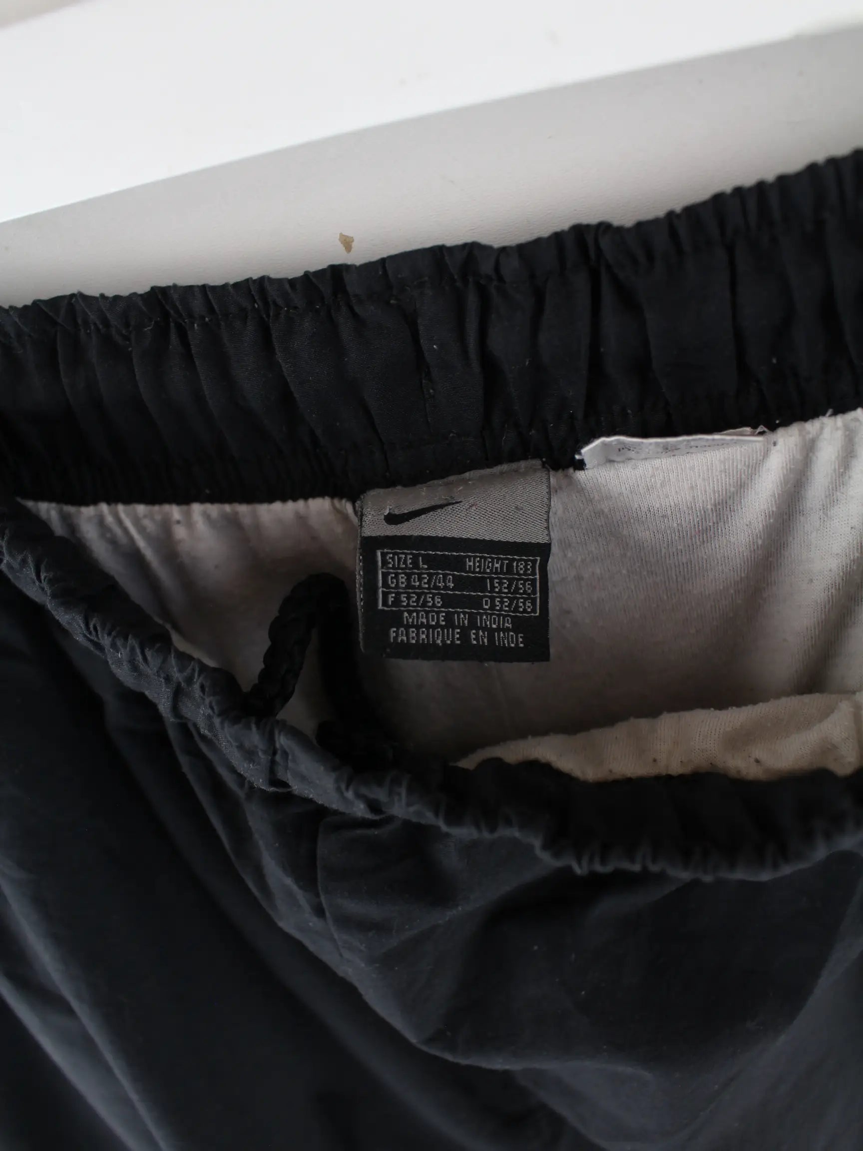 Schwarze Track Pants vom Brand Nike in Größe L. Sie sind aus Synthetik und in sehr gutem Zustand bei uns vorrätig.