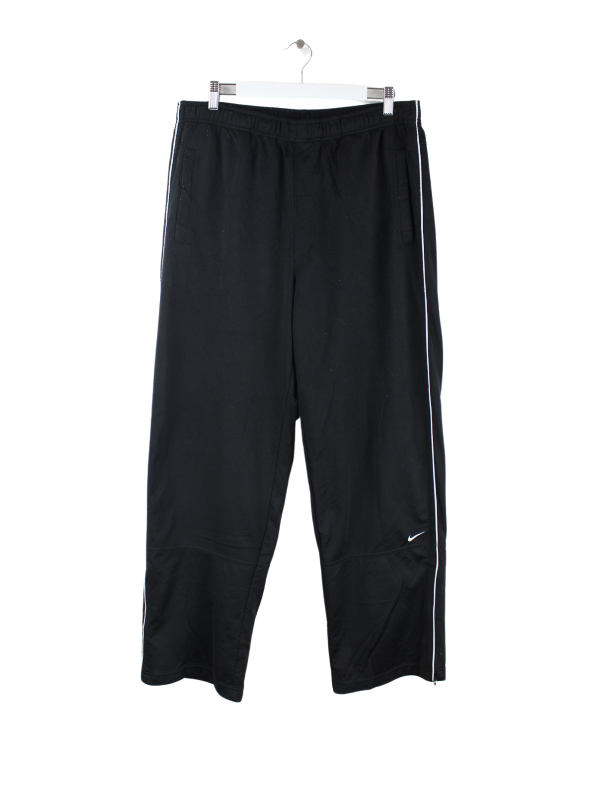 Schwarze Track Pants der Marke Nike in Größe XL. Sie sind aus Synthetik produziert und in gutem Zustand lieferbar.