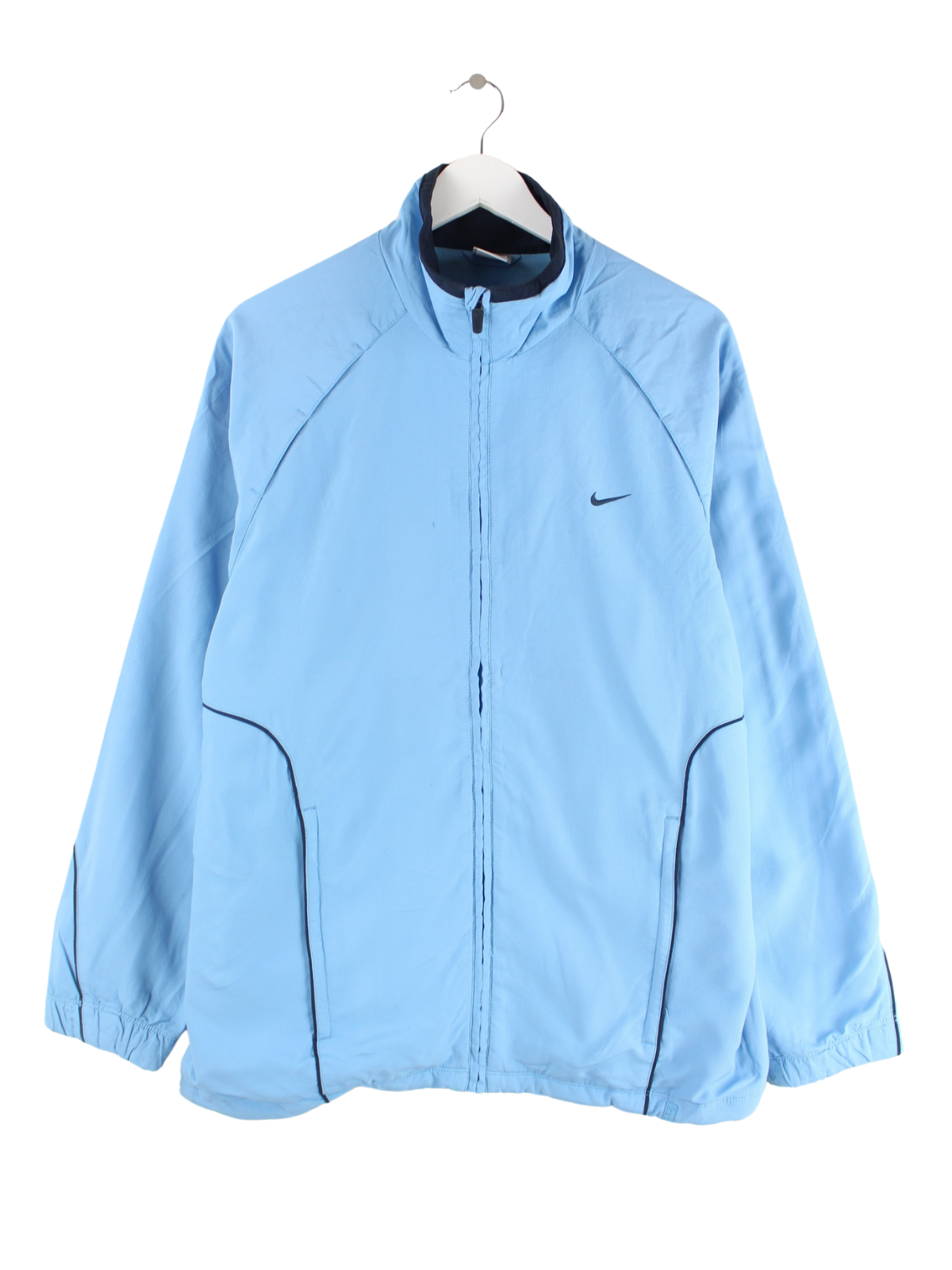 Trainingsjacke der Brand Nike in Größe L. Sie ist aus Synthetik gemacht und in Blau bei uns vorrätig.