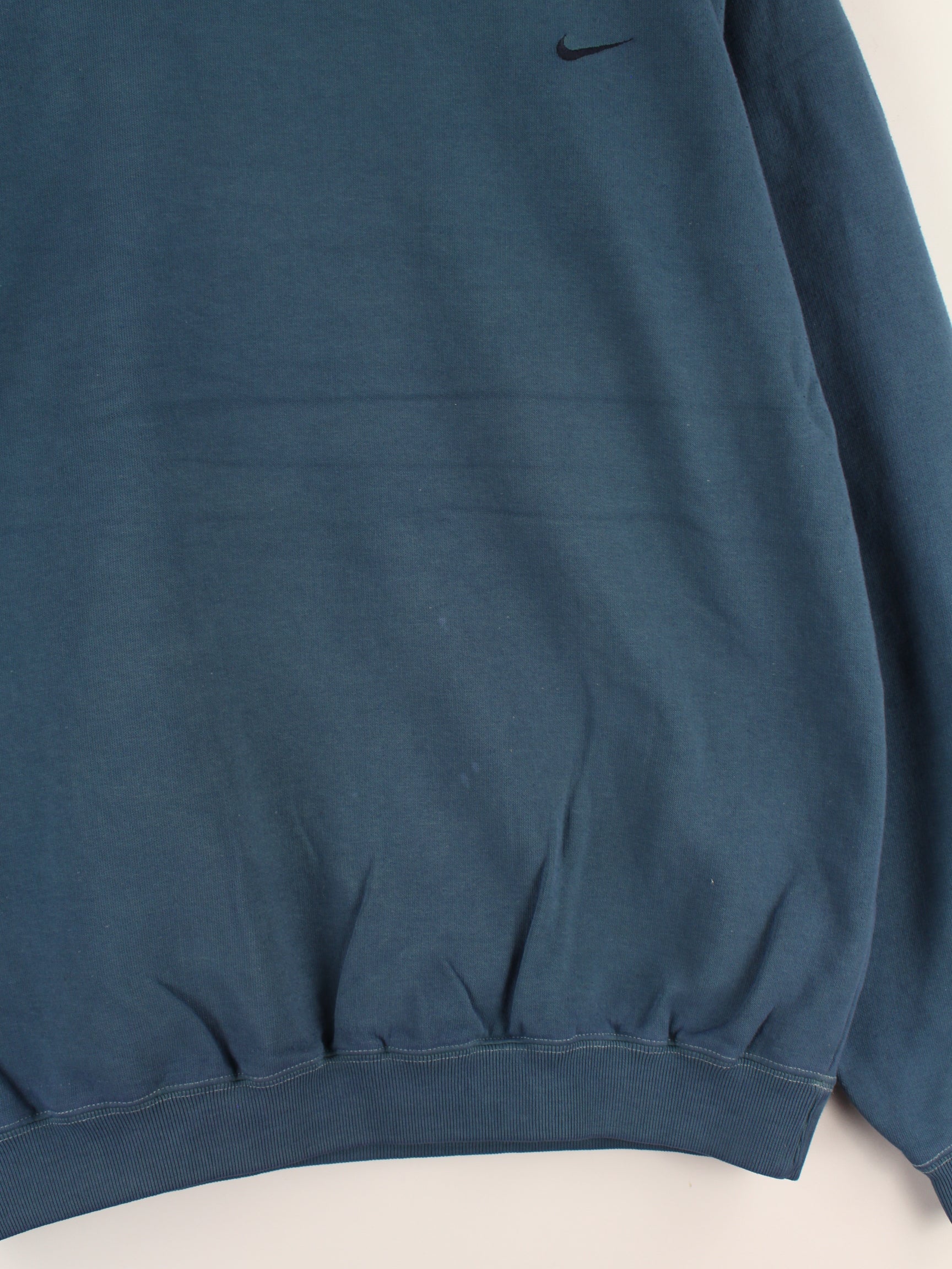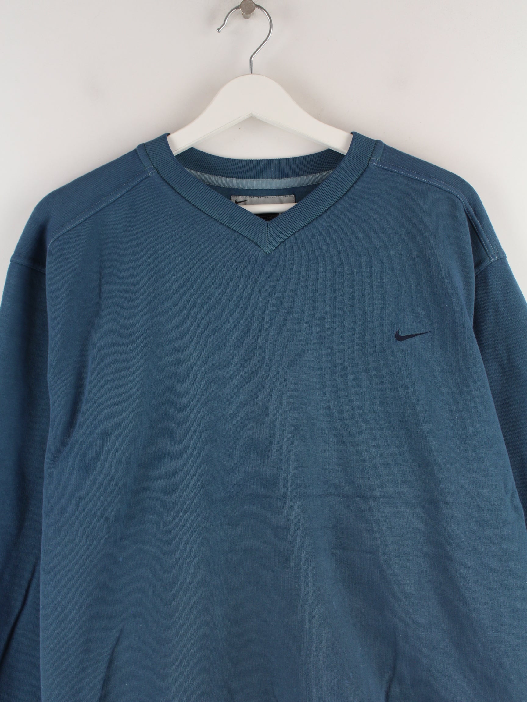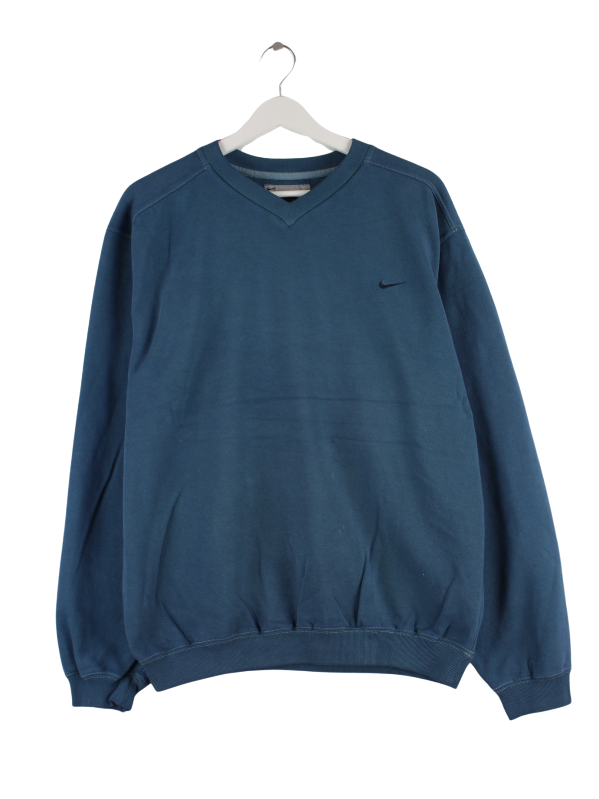 Blue sweater from the brand Nike in size M. It is made of a cotton blend and is in stock in good condition.