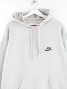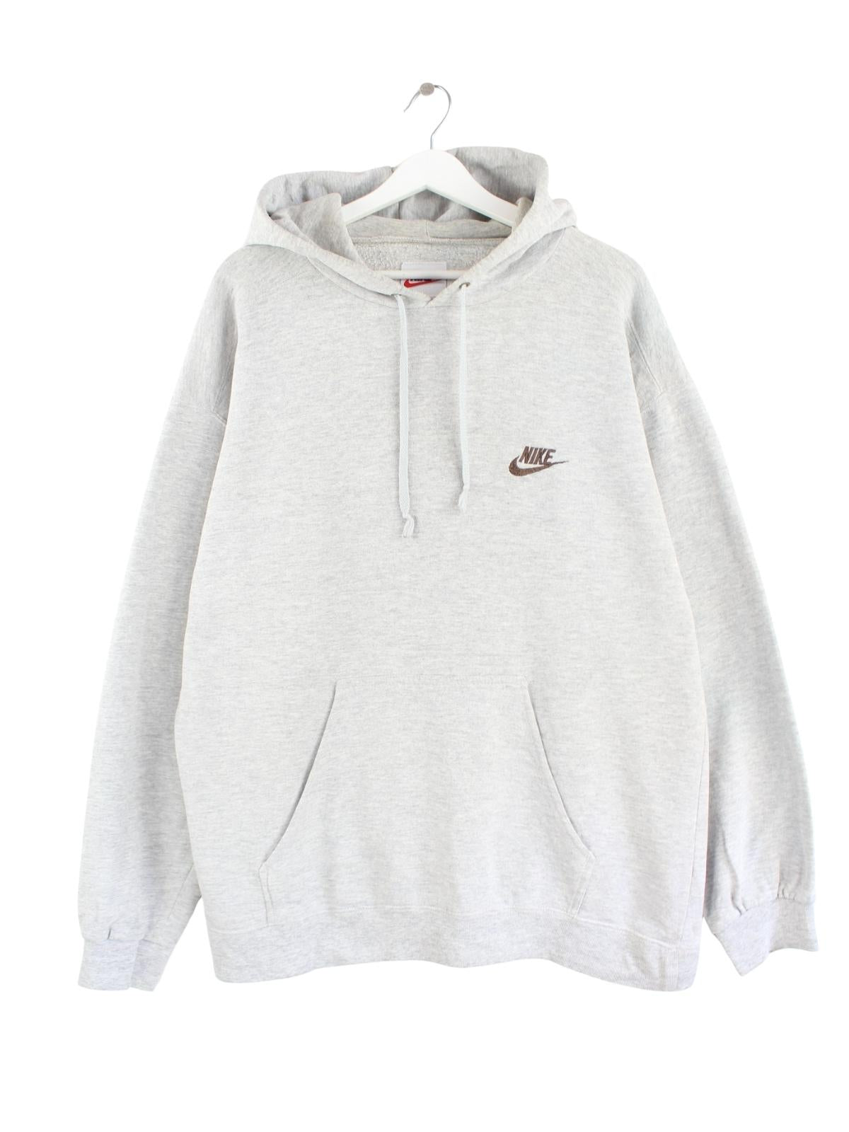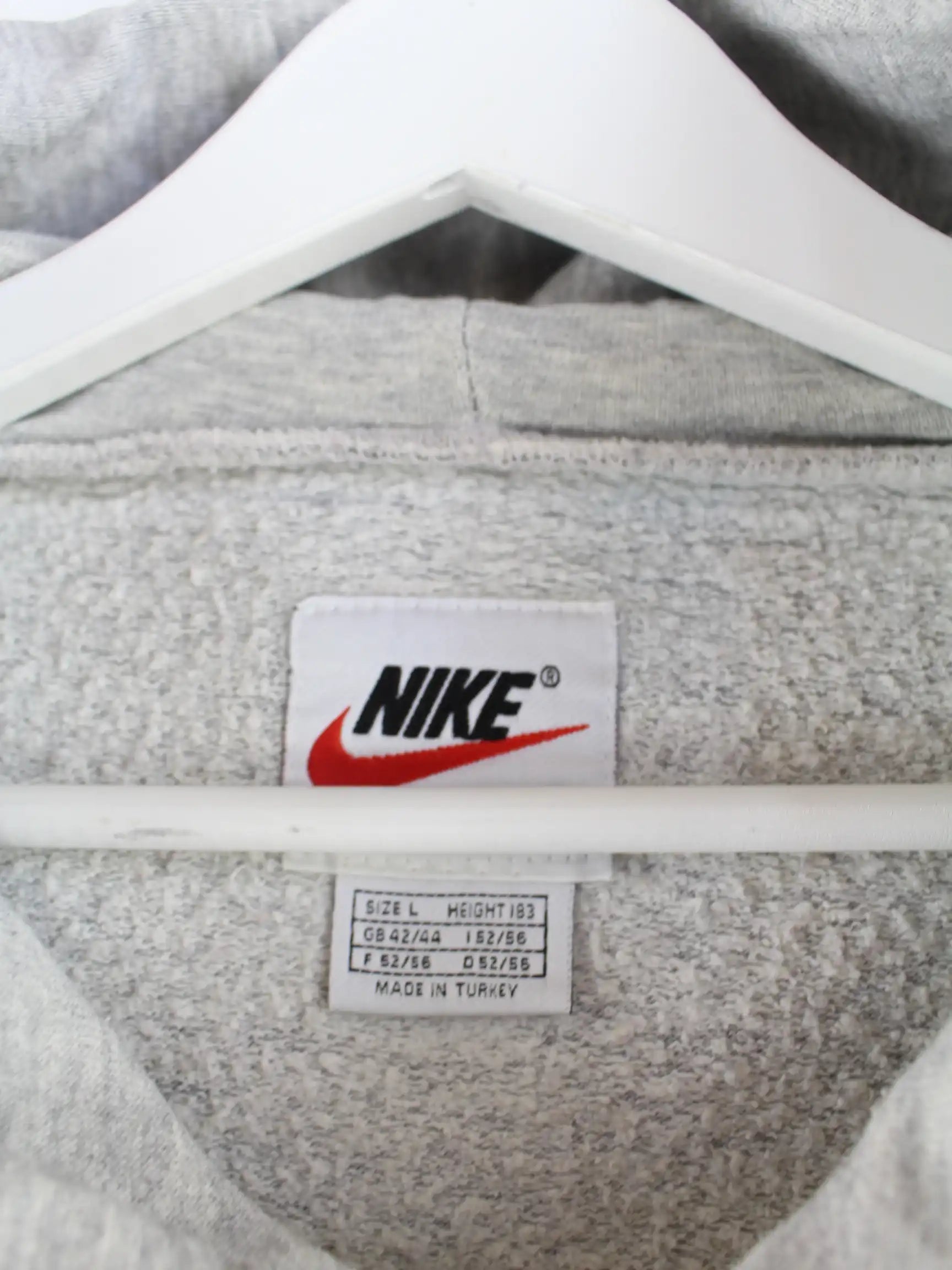 Grauer Hoodie vom Brand Nike aus den 90'ern in Größe L. Er ist aus einer Baumwollmischung angefertigt und in gutem Zustand bei uns vorrätig.