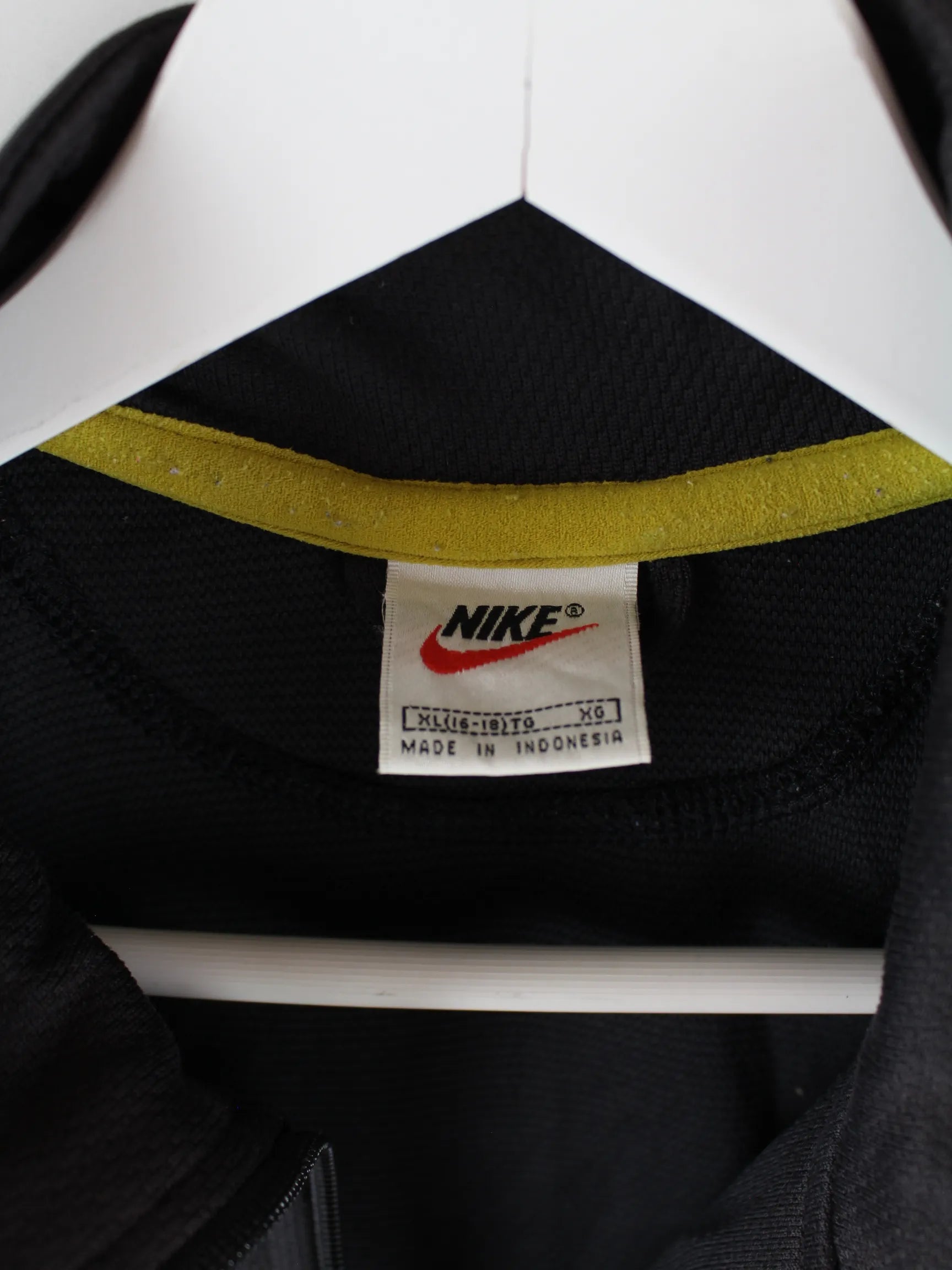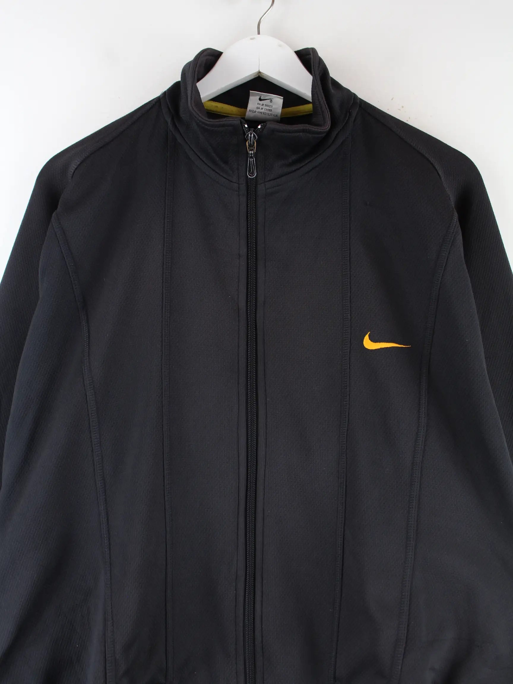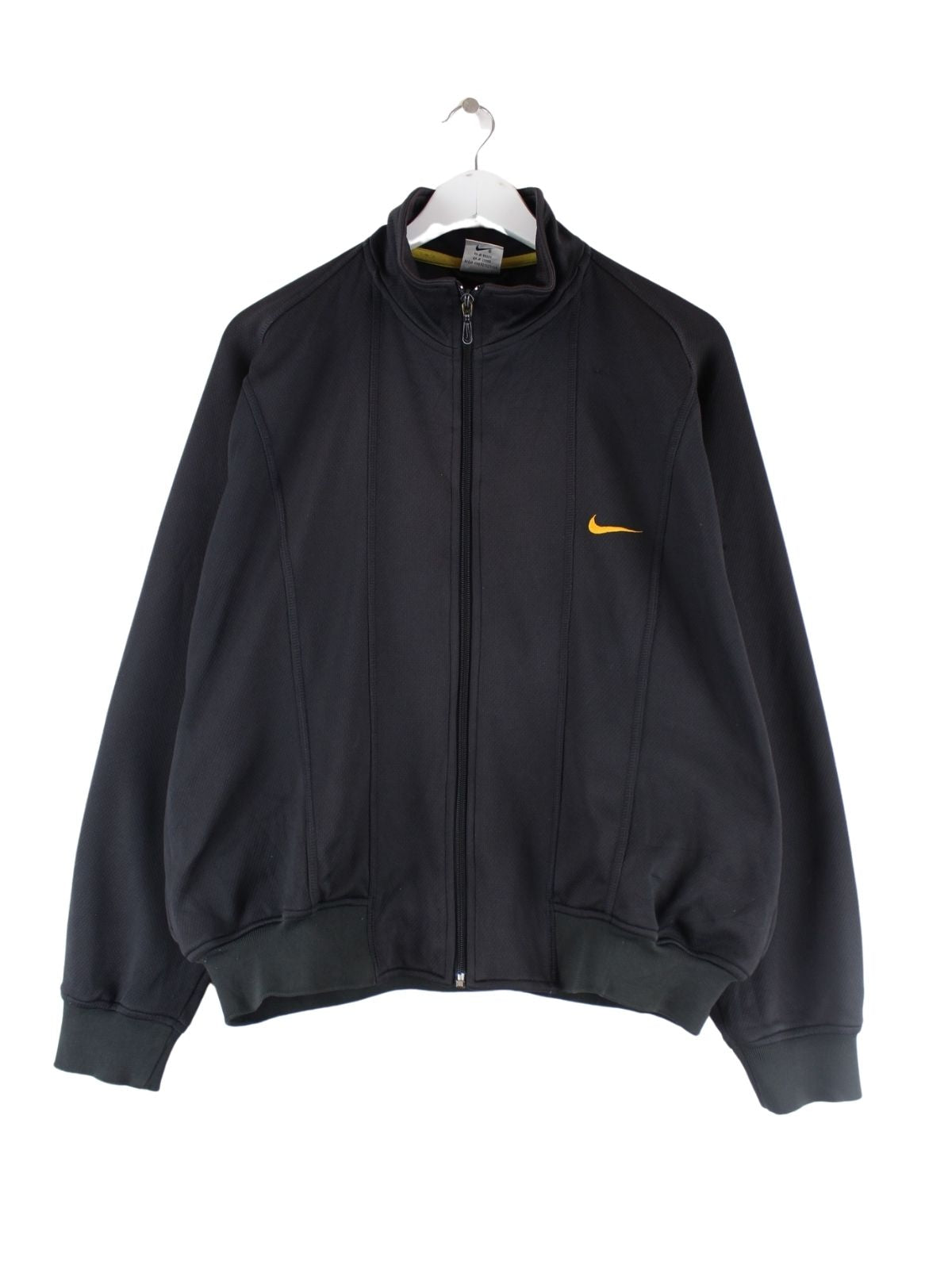 Schwarze Trainingsjacke mit Stickereien vom Label Nike aus den 90'ern in Größe L. Sie ist aus Synthetik angefertigt und in gutem Zustand im Angebot.