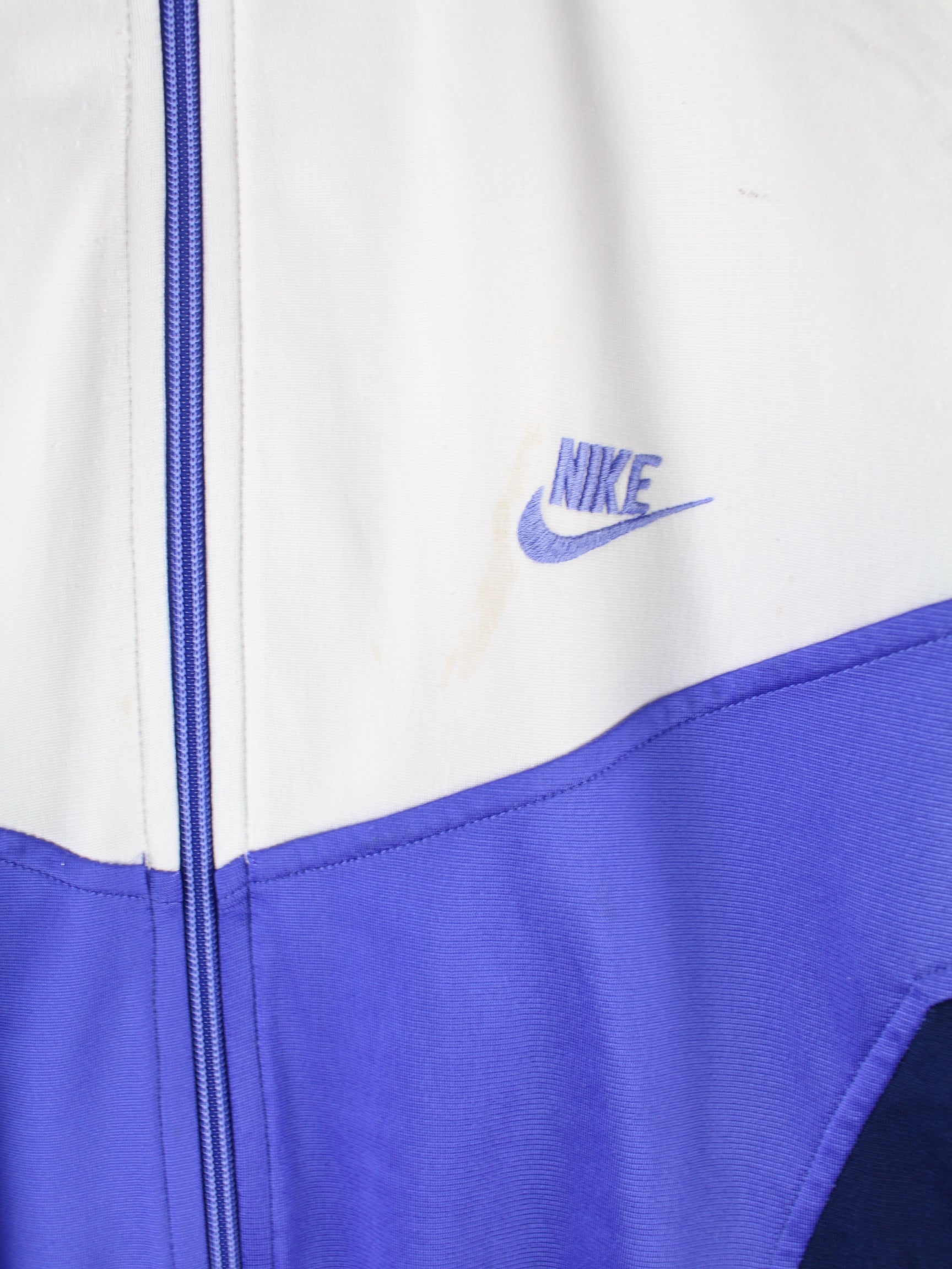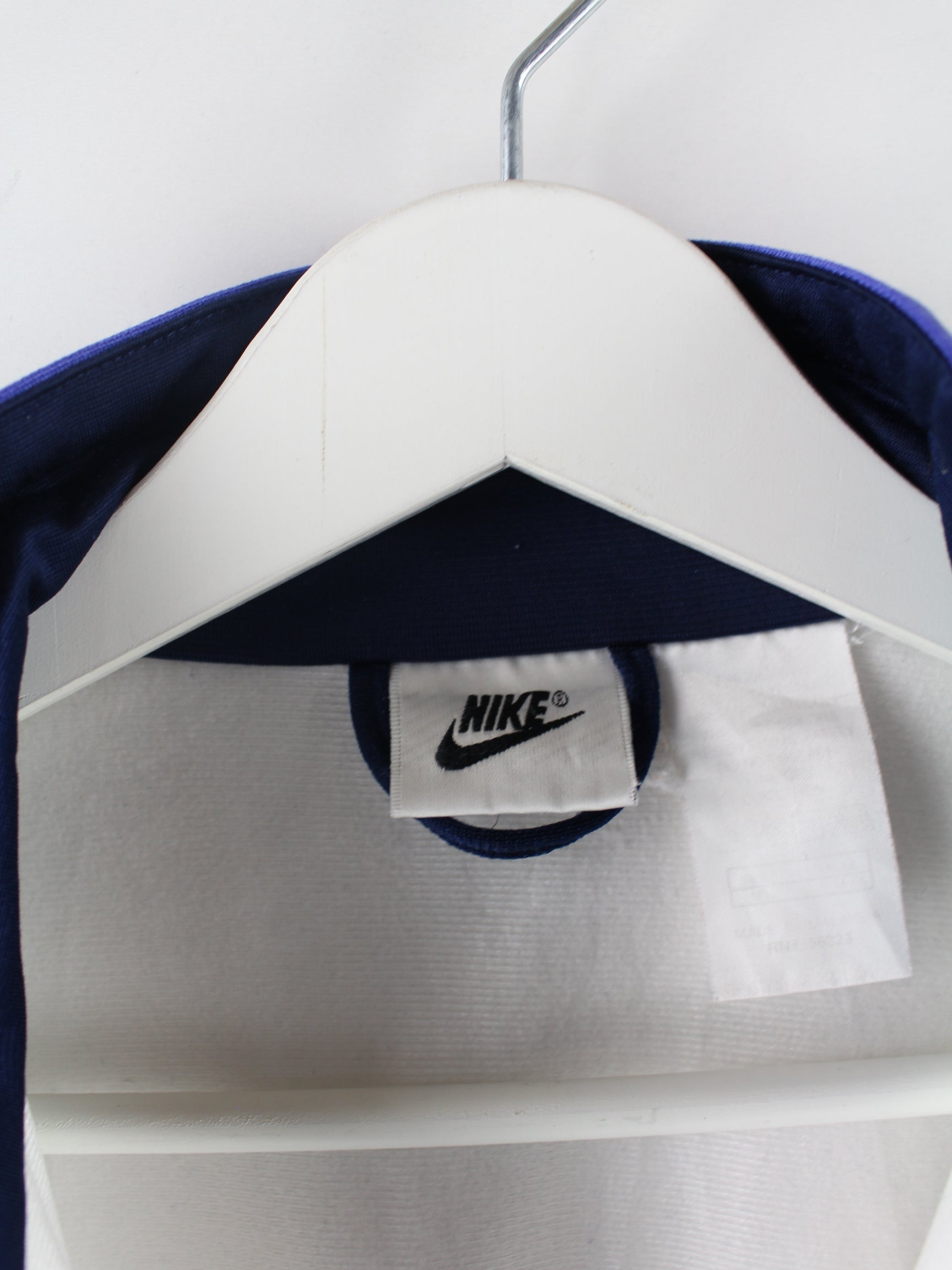 Trainingsjacke vom Brand Nike in Größe L aus den 90'ern. Sie ist aus Synthetik und in Blau bei uns zu bekommen.