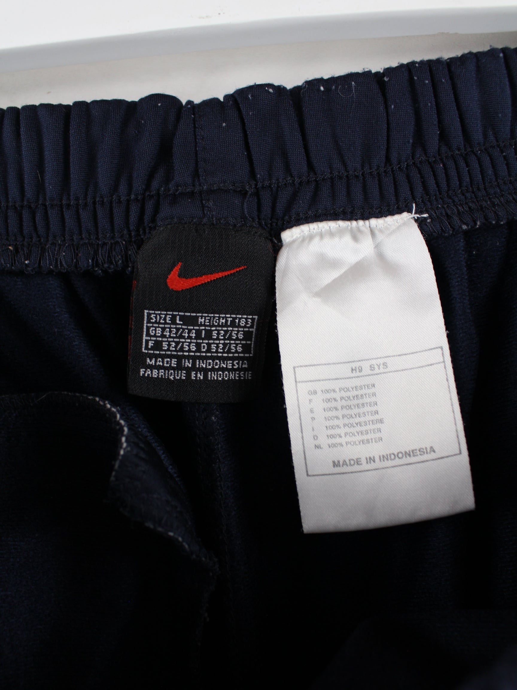 Track Pants aus dem Hause Nike in Größe L aus den 90'ern. Sie sind aus Synthetik hergestellt und in Blau in Stock.