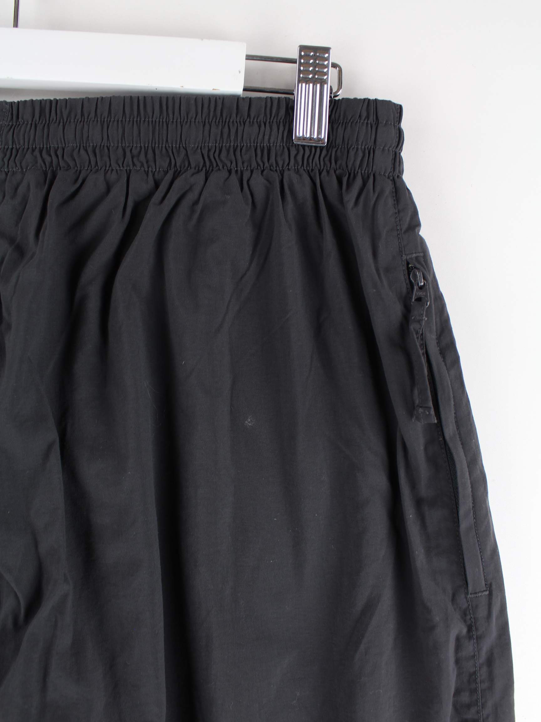 Graue Track Pants vom Label Nike aus den 90'ern in Größe L. Sie sind aus Synthetik hergestellt und in gutem Zustand zu bekommen.
