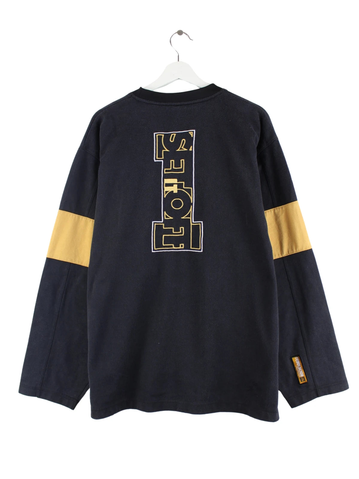 Schwarzer Sweater mit gesticktem Logo des Labels Nike in Größe XL. Er ist aus einer Baumwollmischung hergestellt und in gutem Zustand bei uns vorrätig.