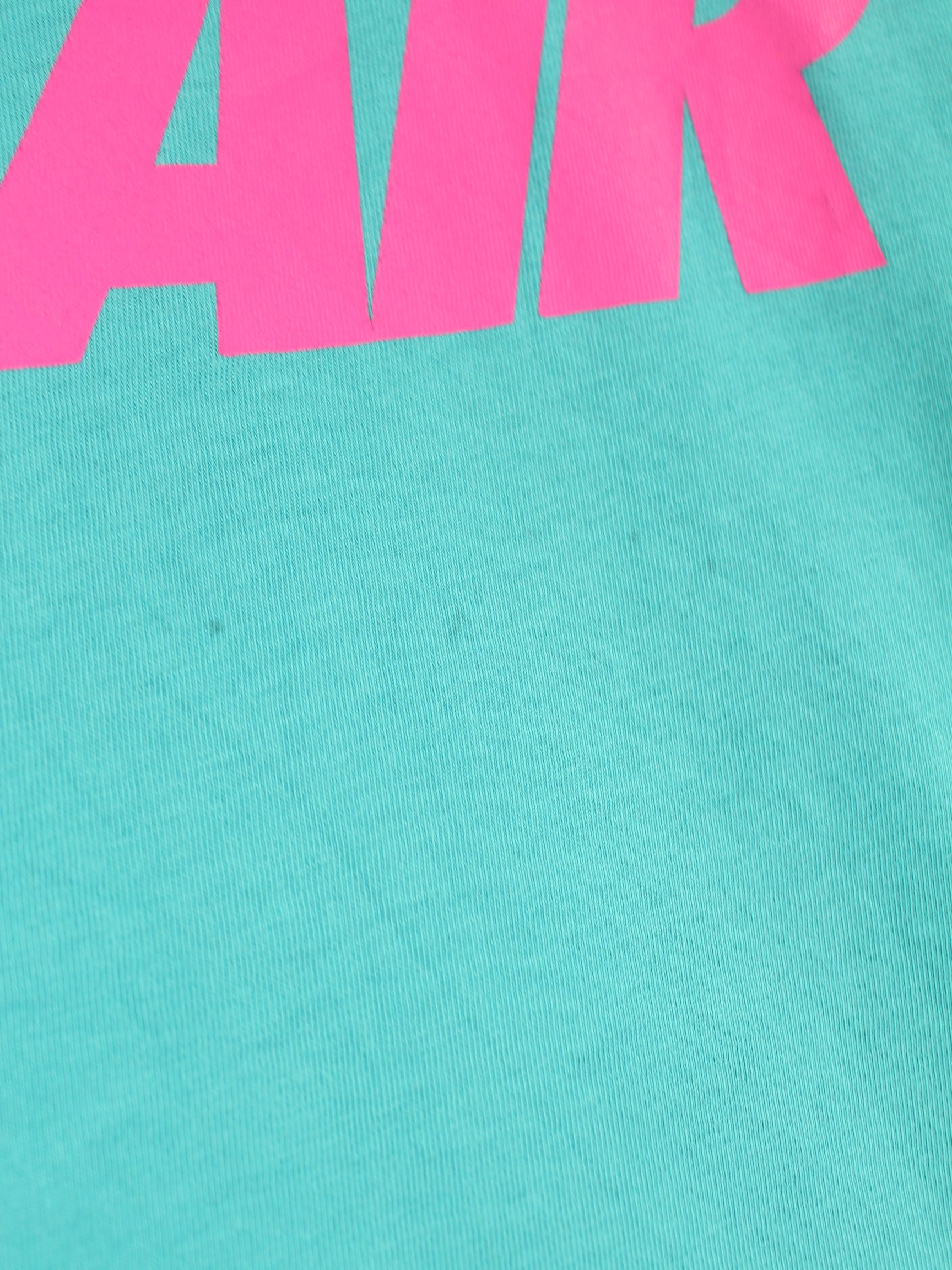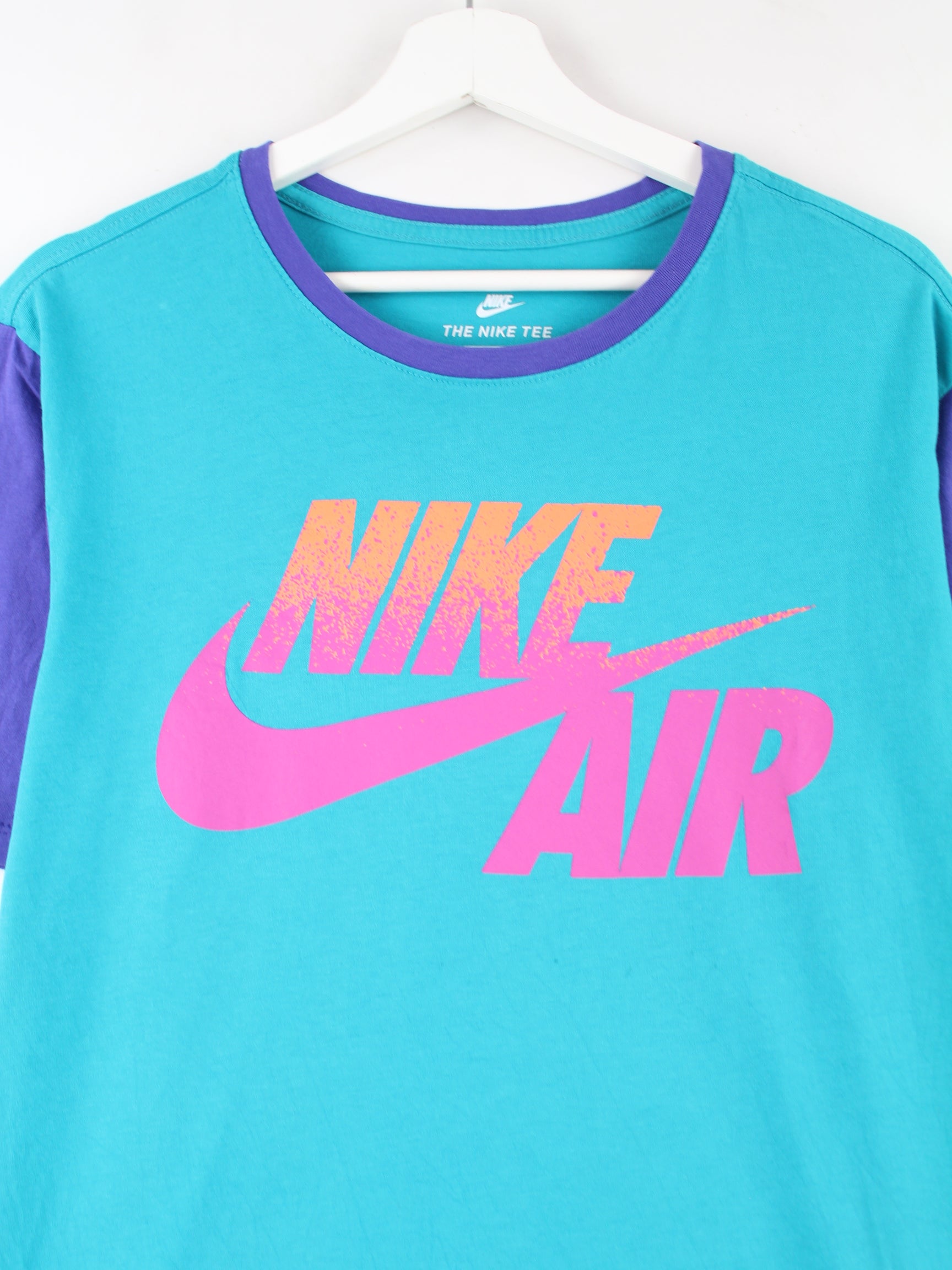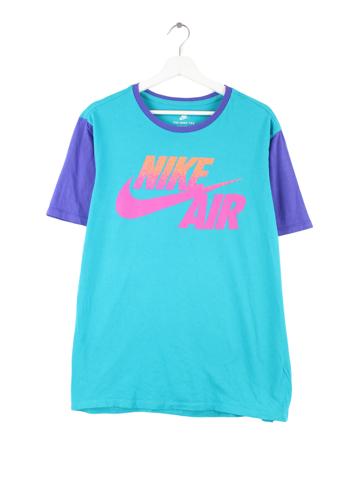 T-shirt from the Nike label in size L. It is made of cotton and is available in turquoise. With a beautiful Air print.