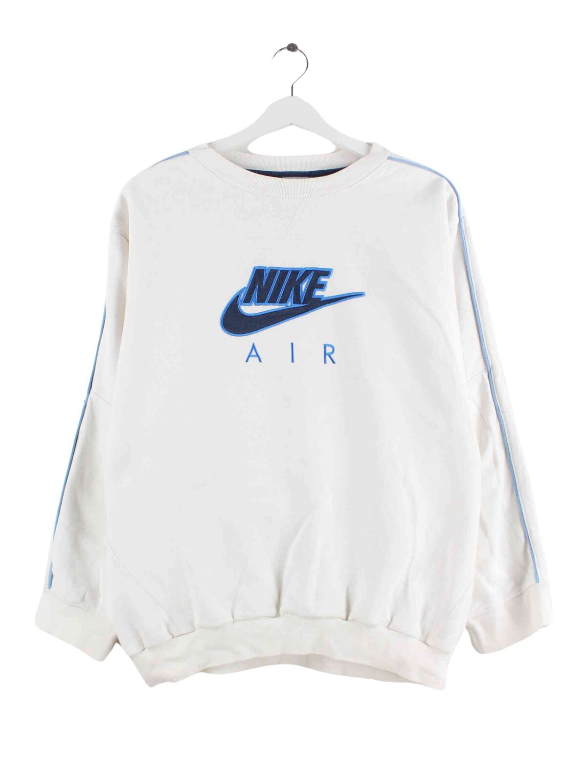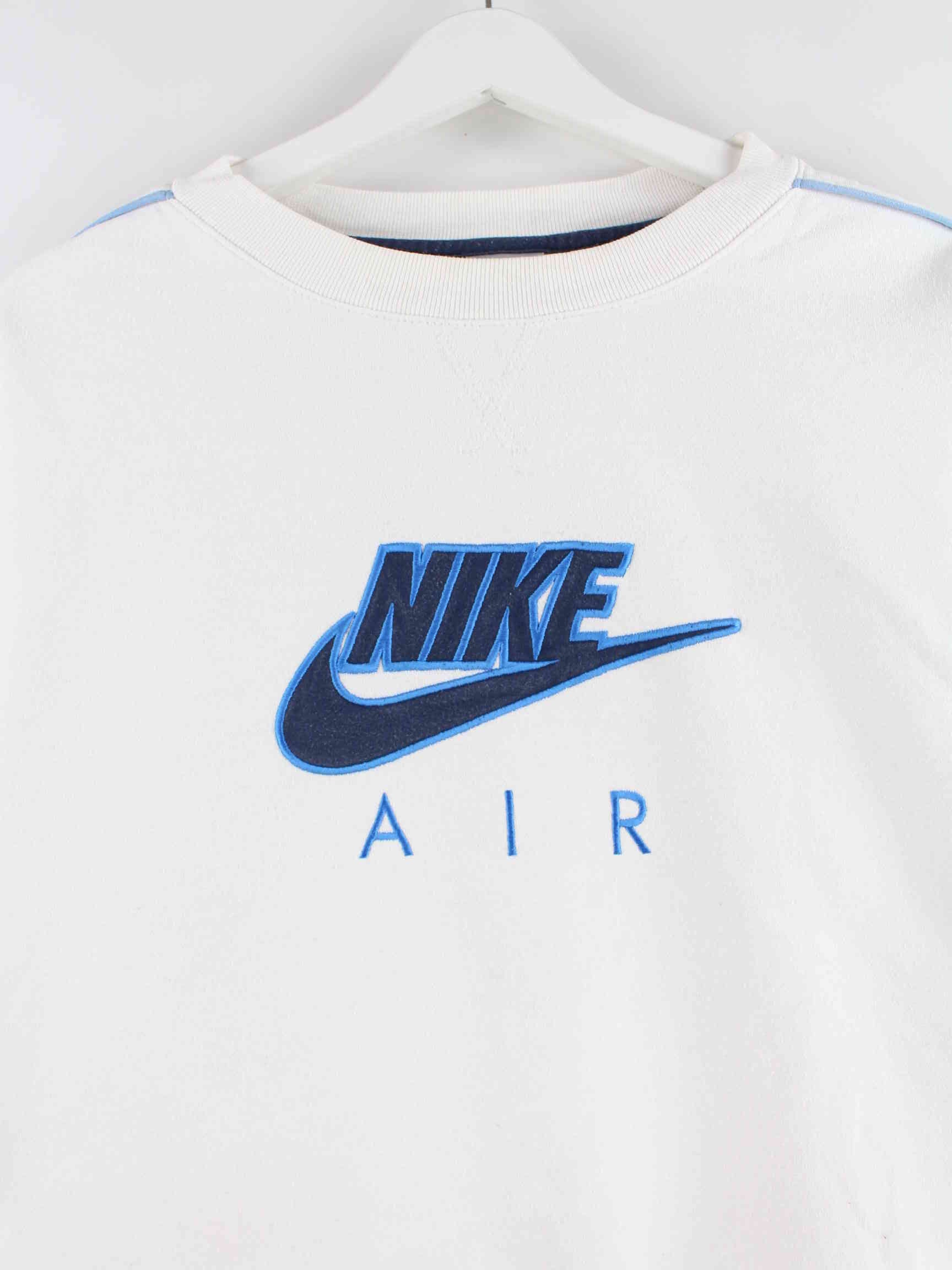 White sweater with Nike embroidery from the early 2000s in size S. It is made from a cotton blend and is available from us in good condition.