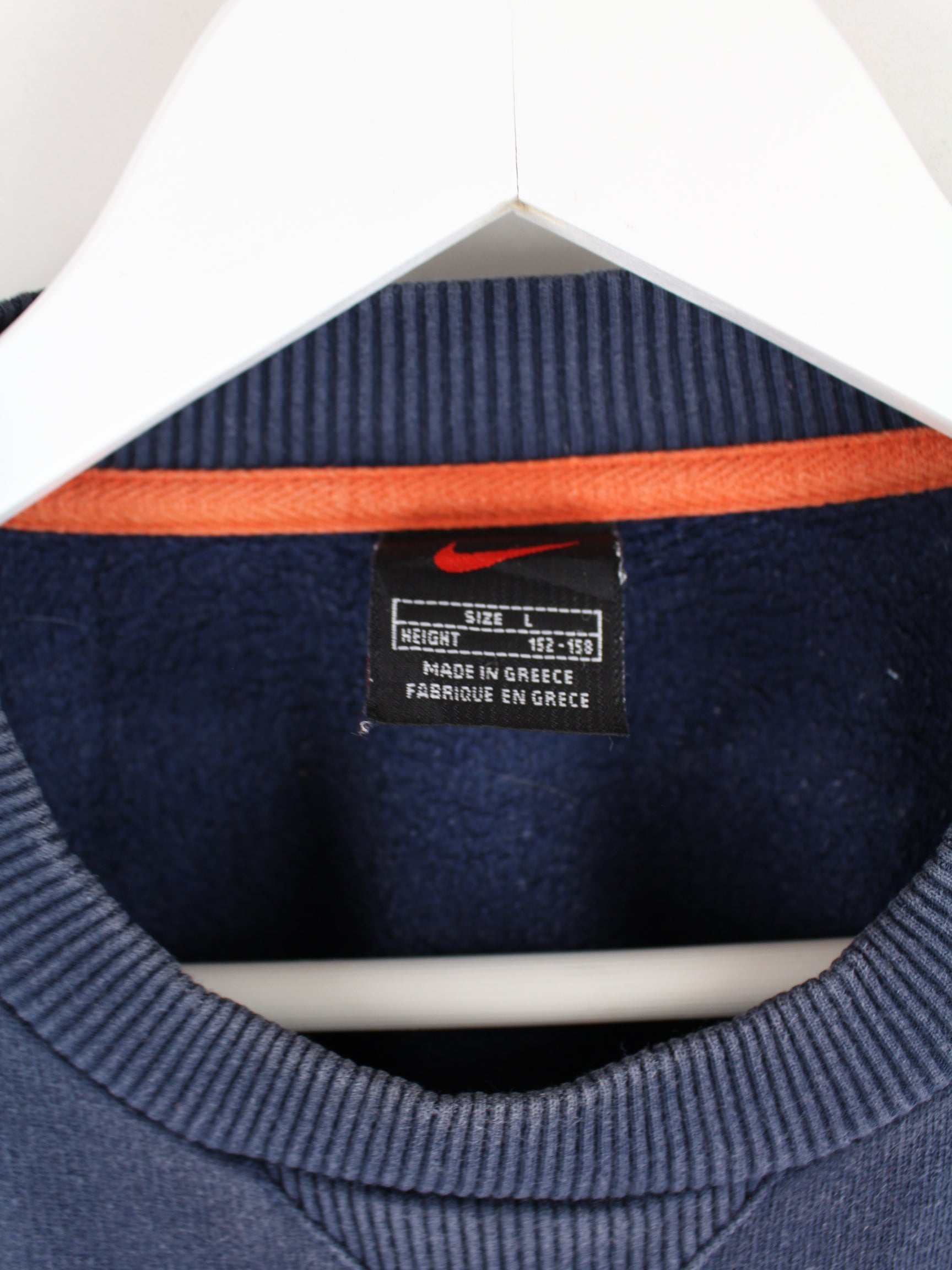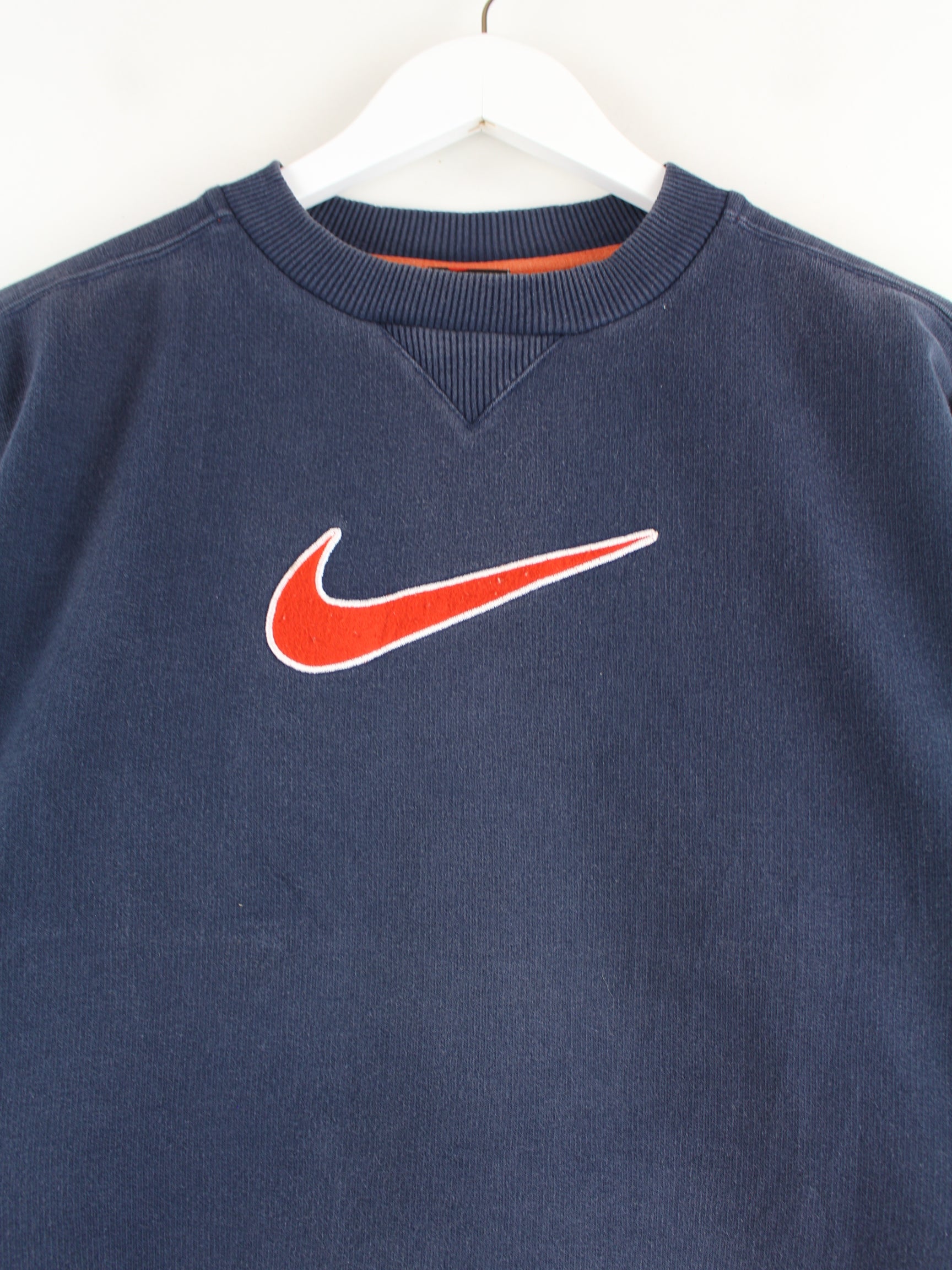 Sweater from the brand Nike with embroidered motifs in size XS from the 90's. It is made of a cotton blend and is in stock in blue.
