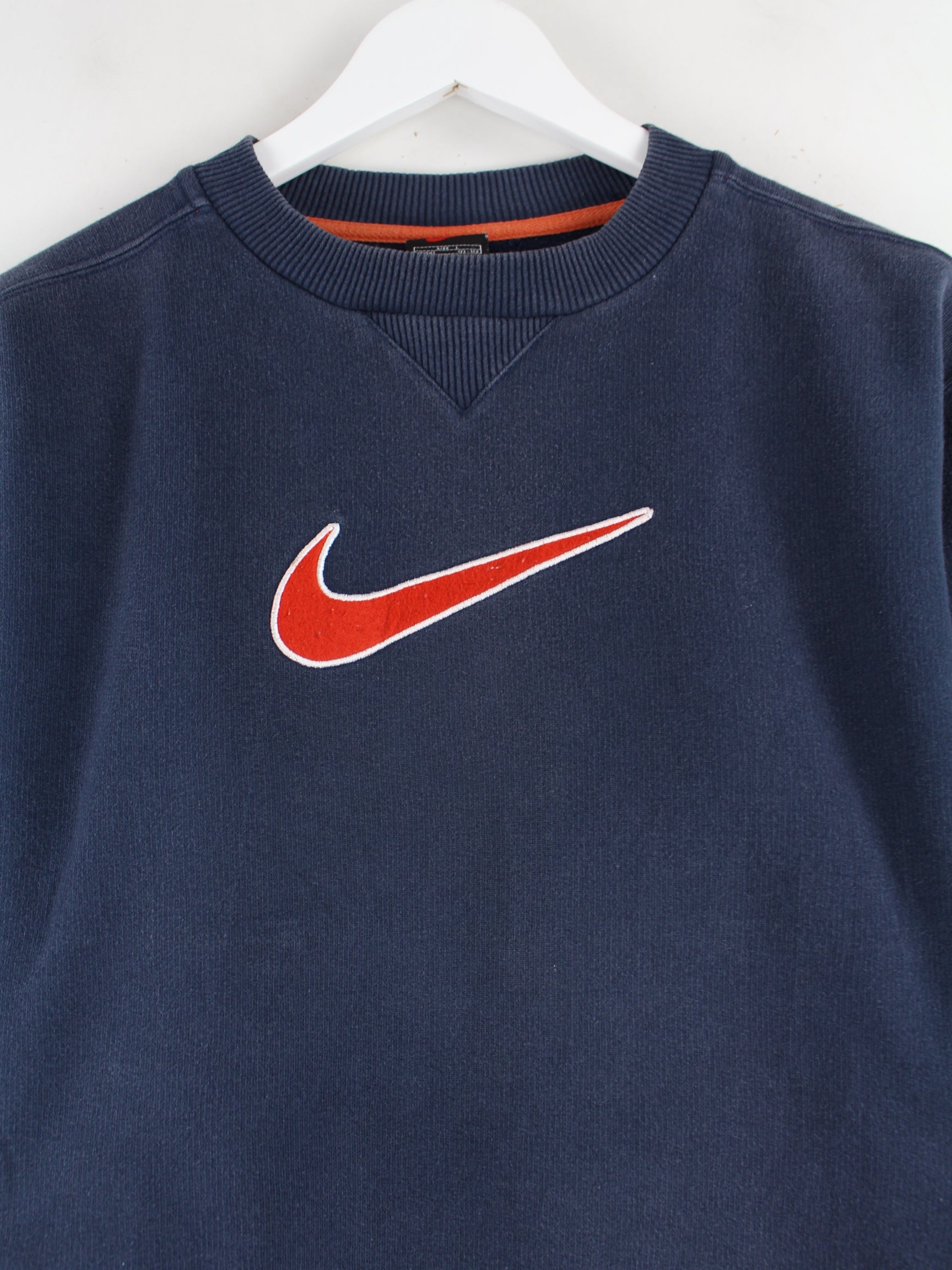 Nike Women's 90s Vintage Big Swoosh Embroidered Sweater Blue XS
