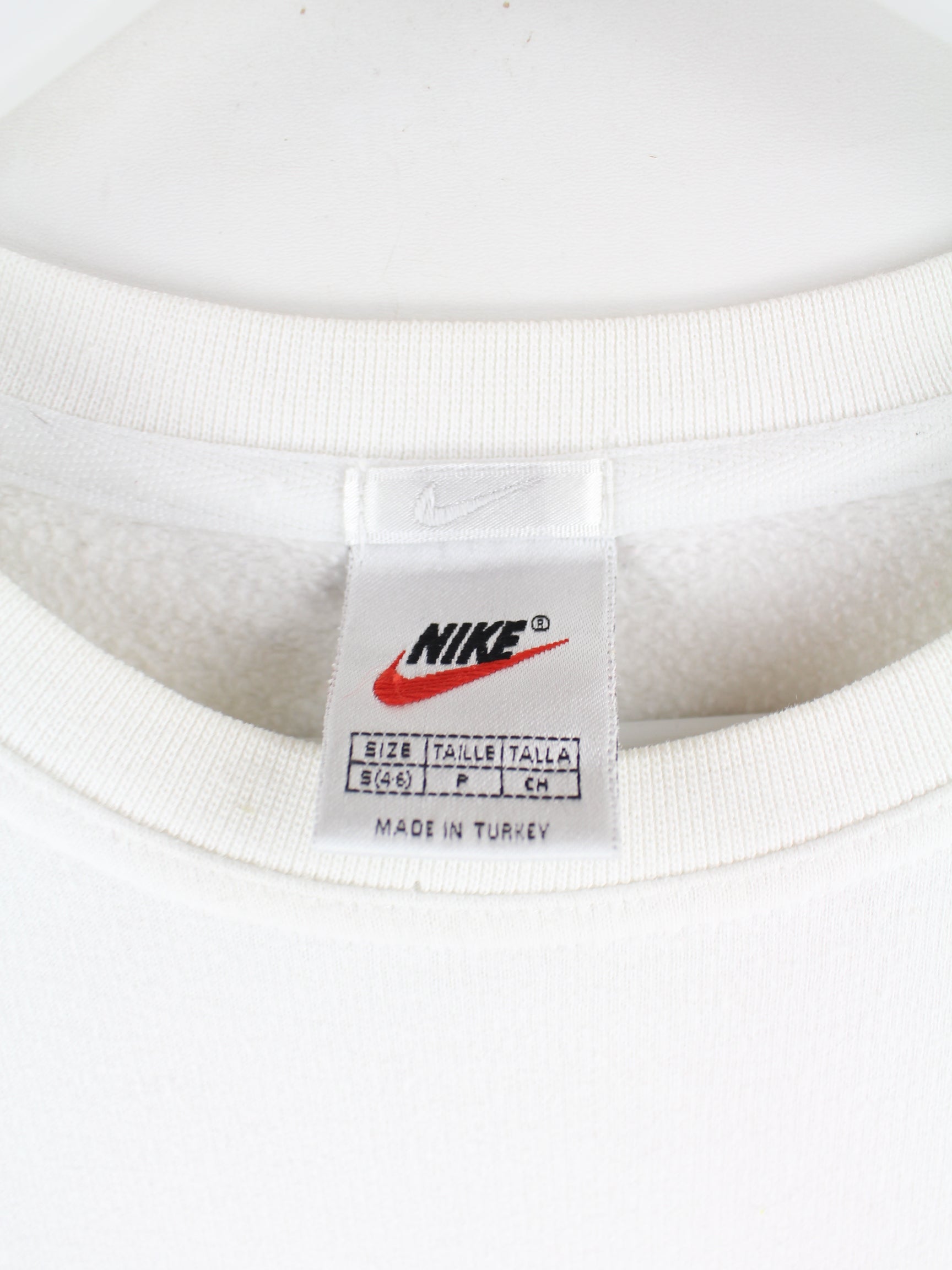 Nike brand sweater with embroidery in size XS from the 90's. It is made from a cotton blend and is available in white.