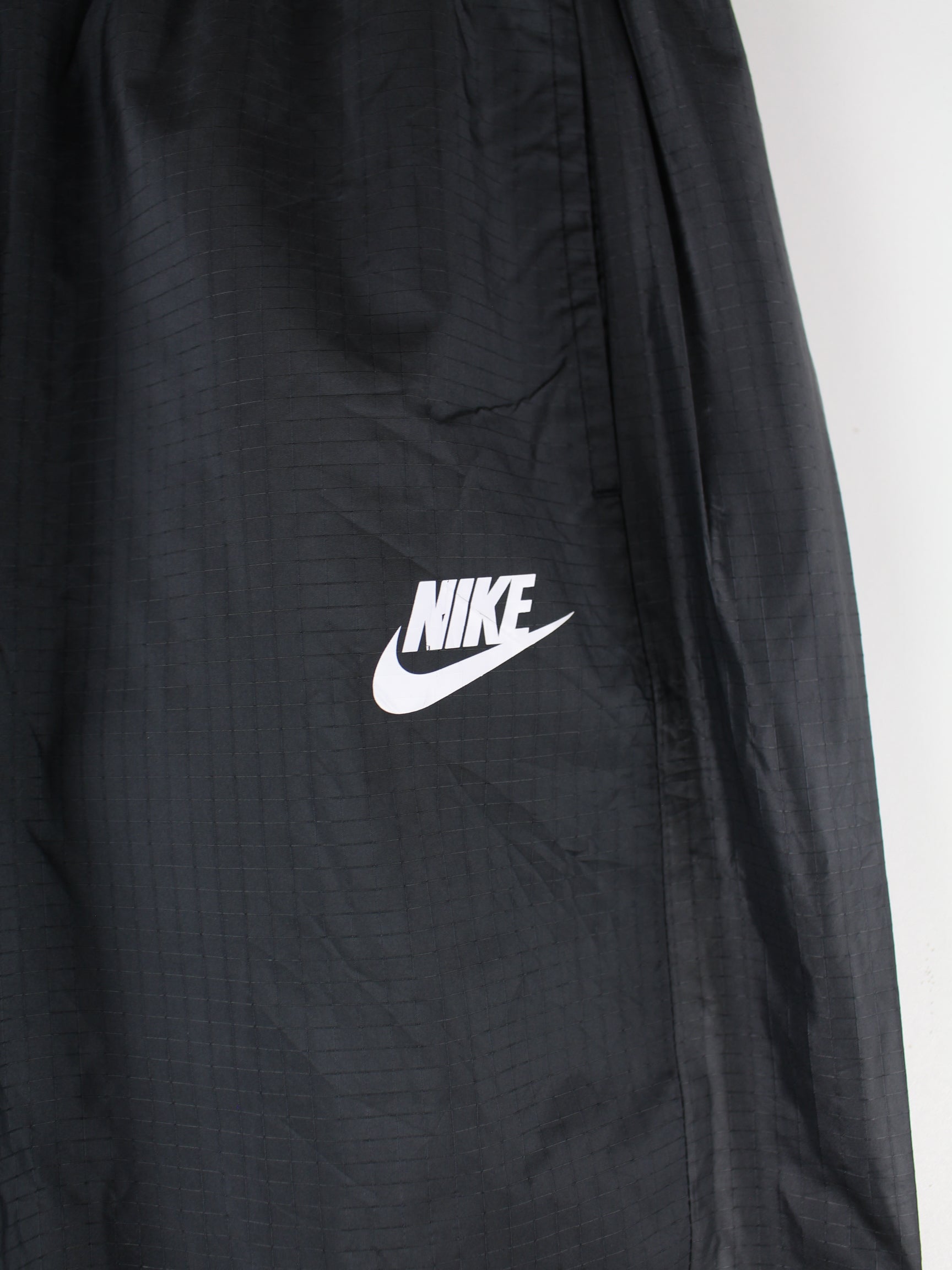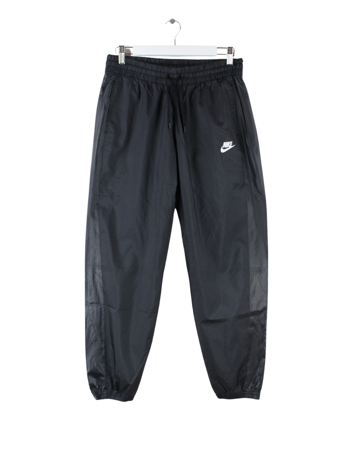 Schwarze Track Pants vom Label Nike in Größe M. Sie sind aus Synthetik angefertigt und in sehr gutem Zustand in Stock.