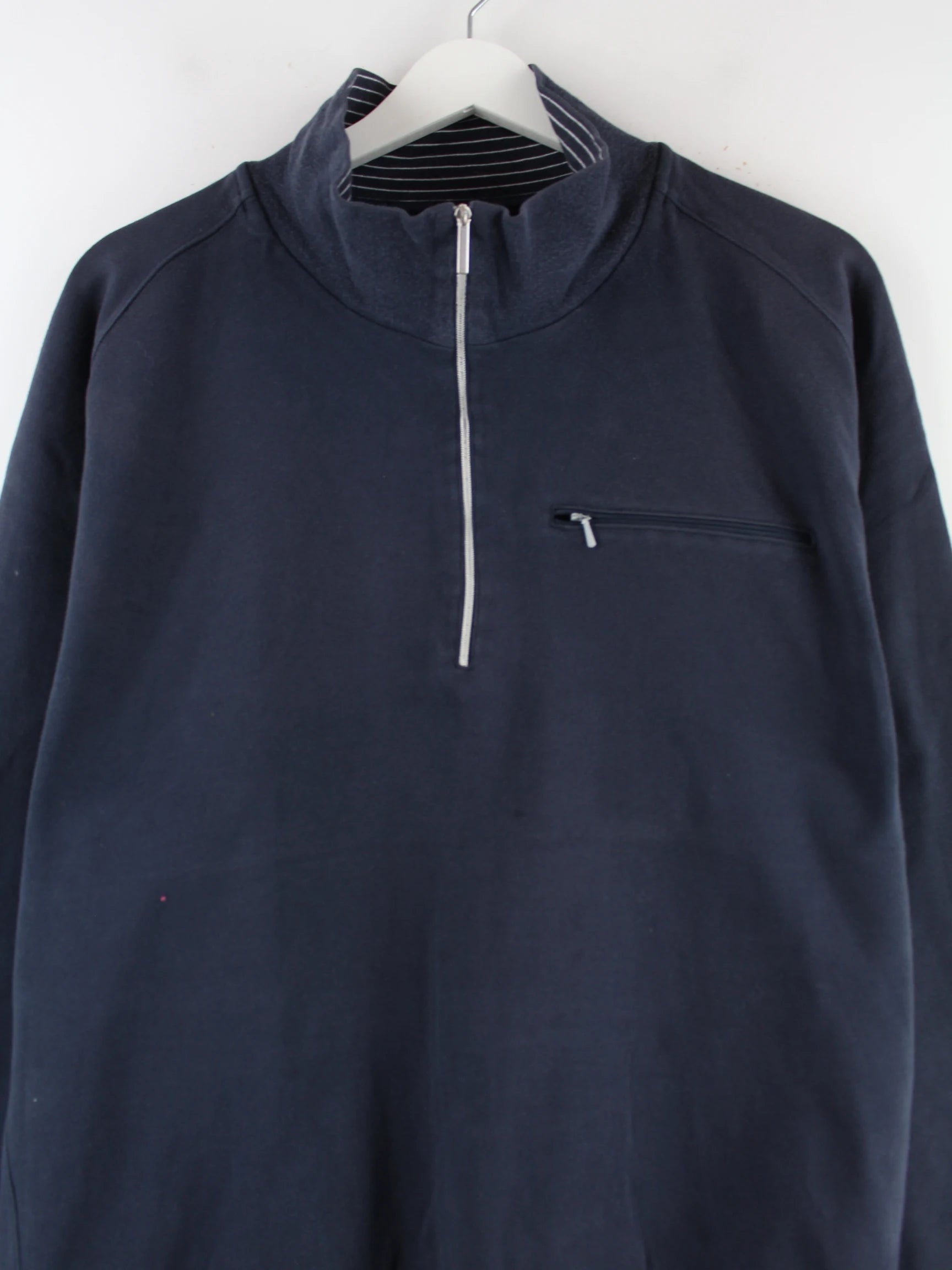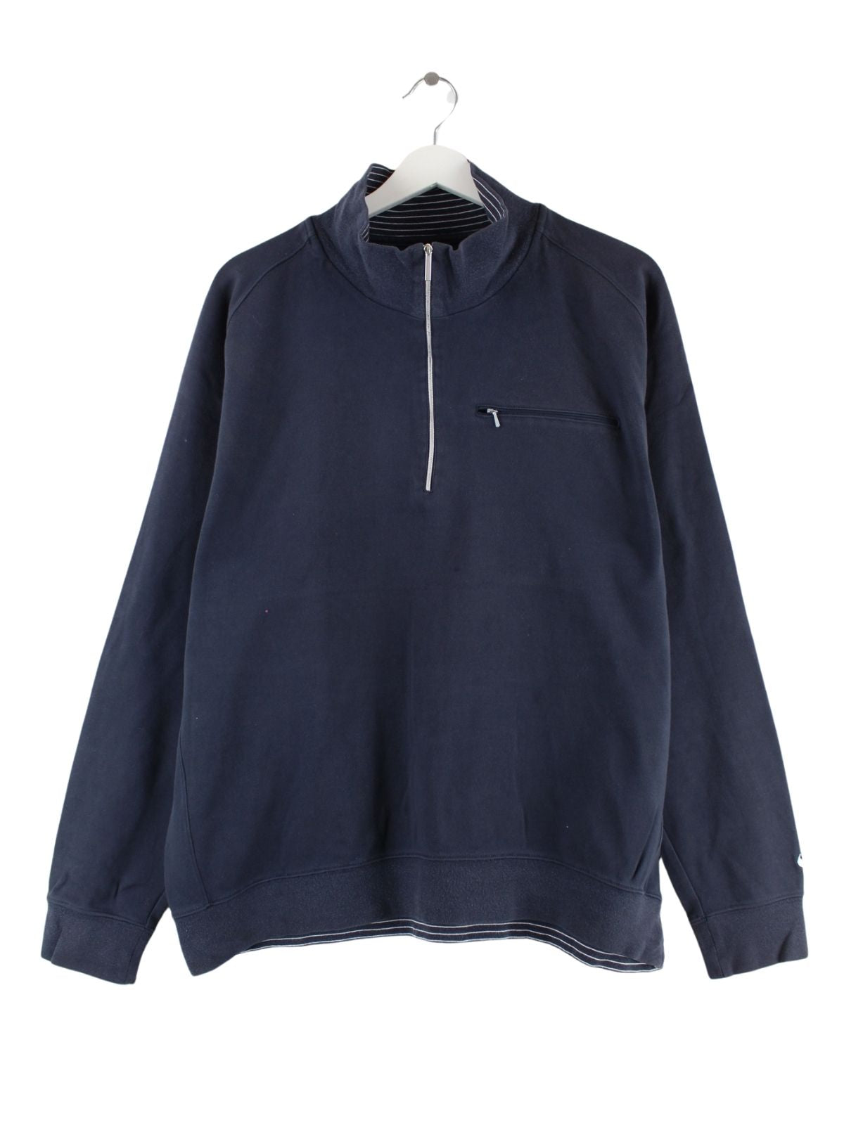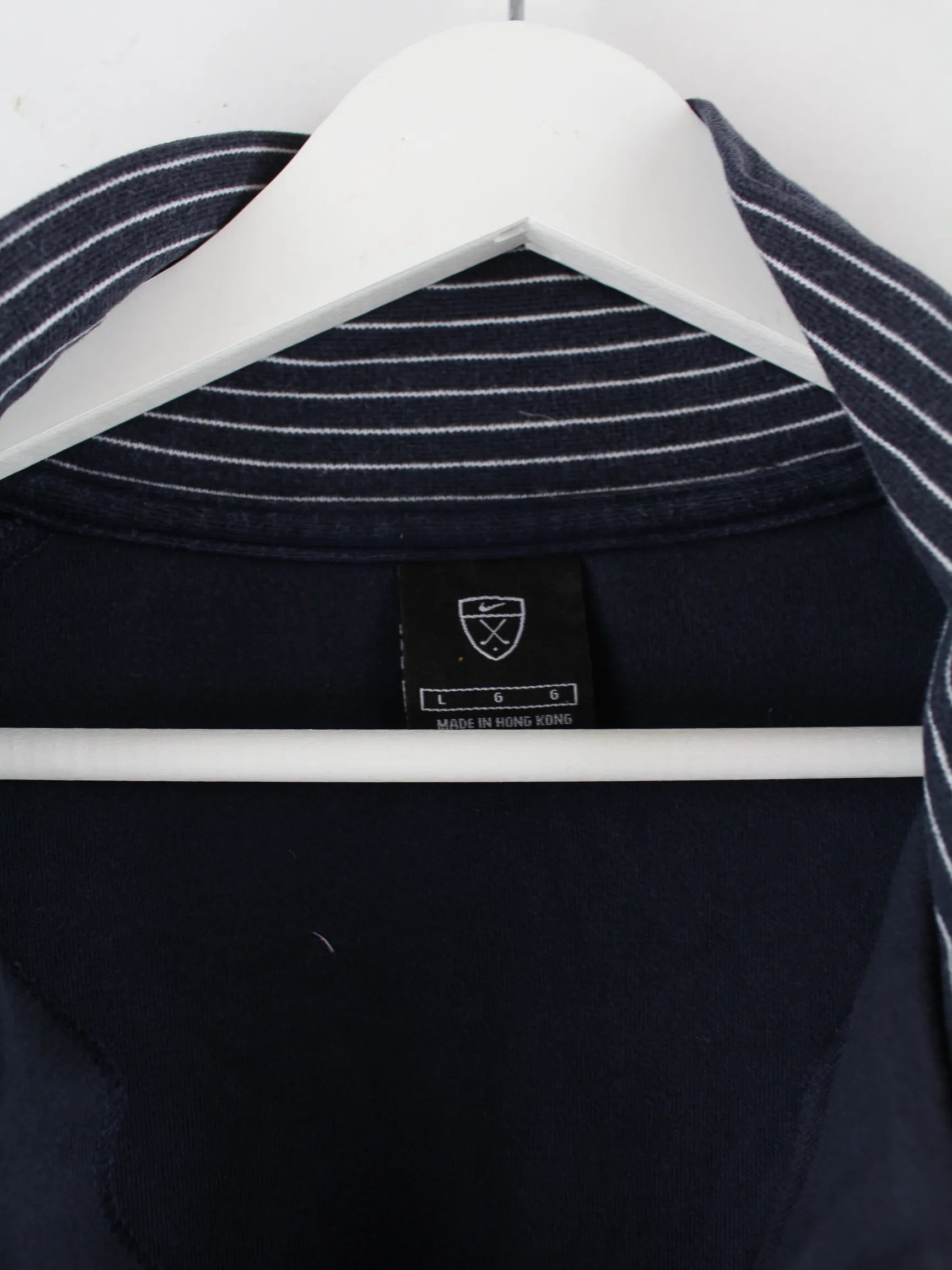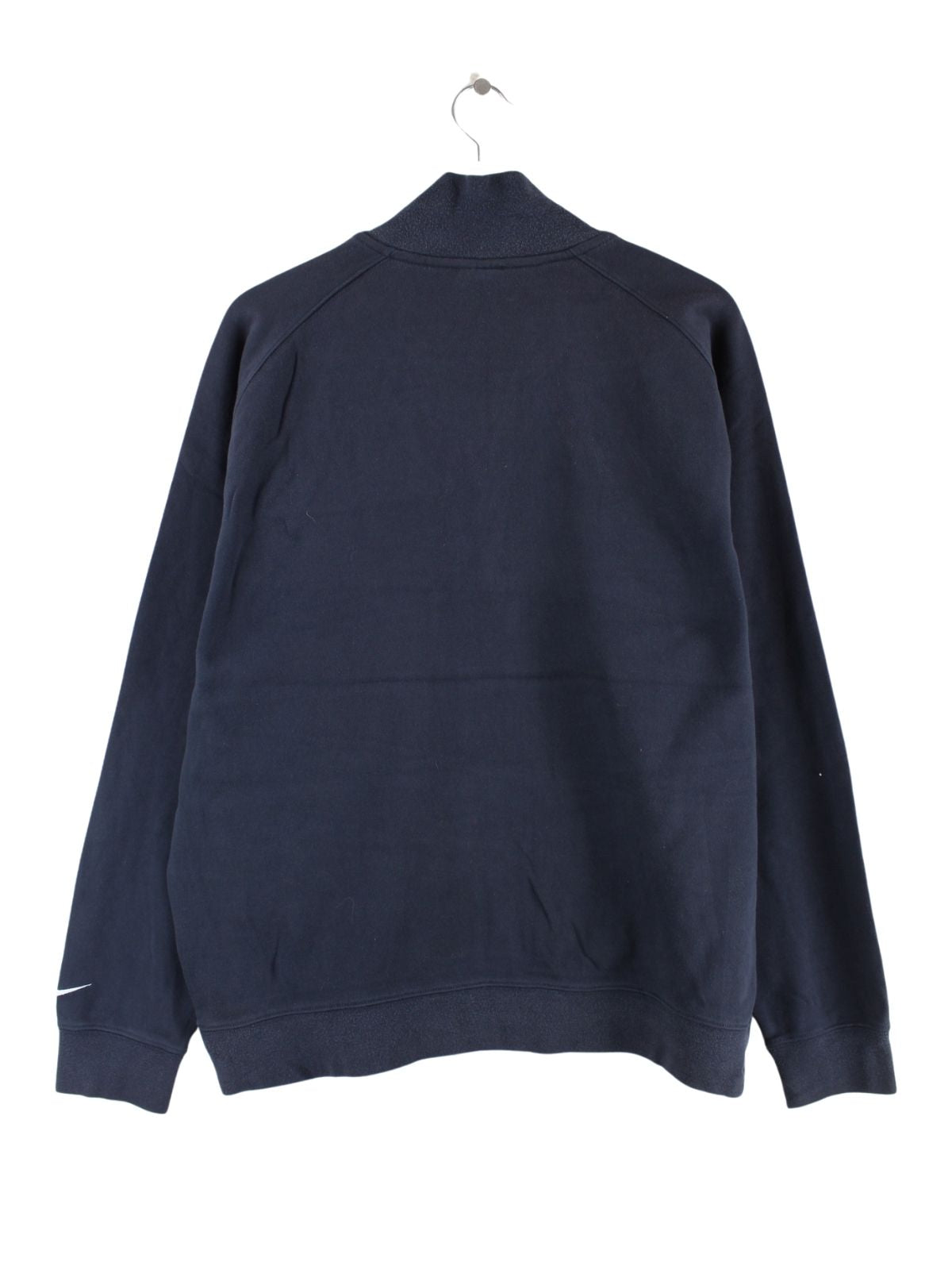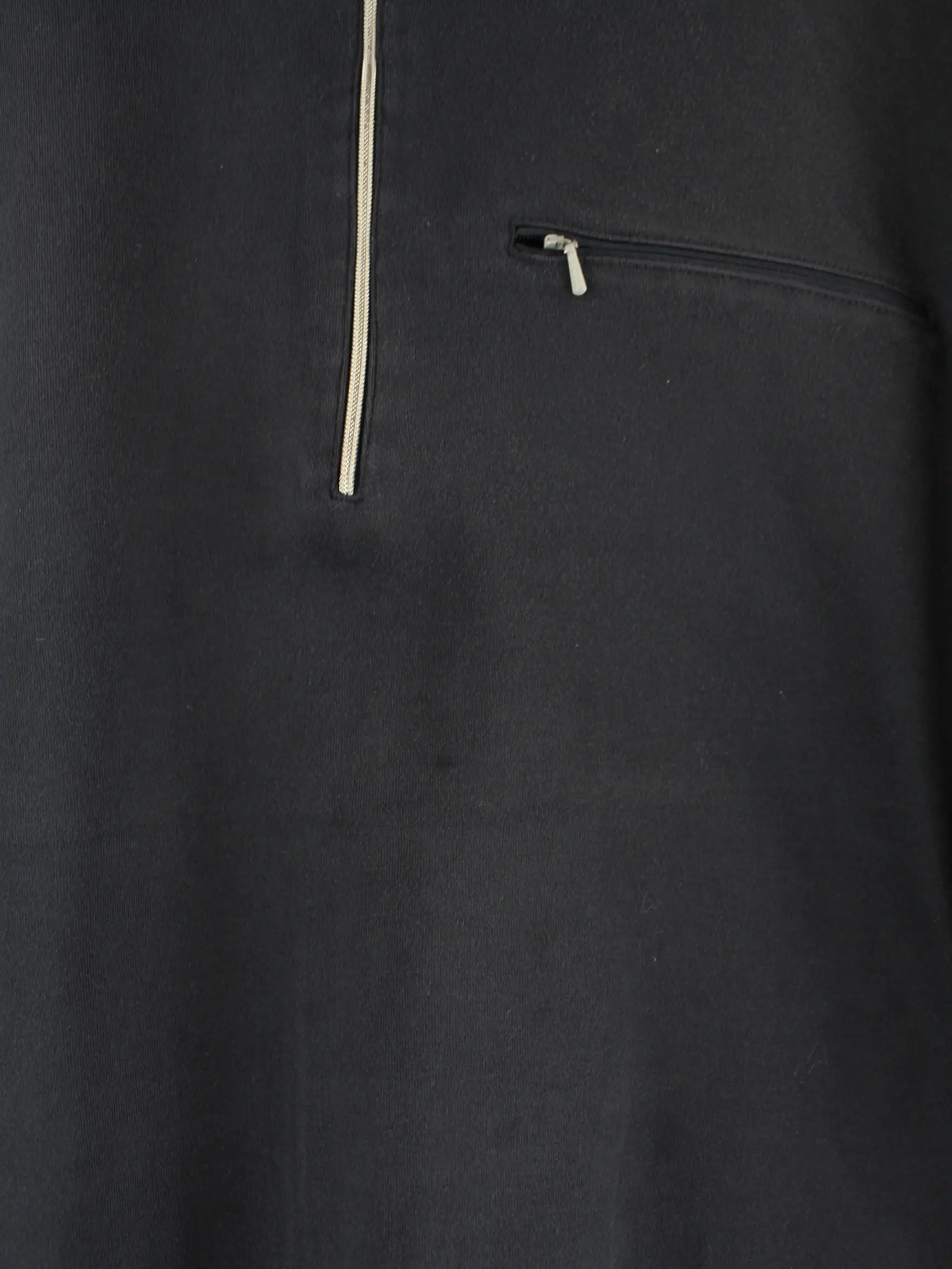 Schwarzer Sweater mit kurzem Reißverschluß aus dem Hause Nike in Größe L. Er ist aus einer Baumwollmischung produziert und in gutem Zustand bei uns vorrätig.