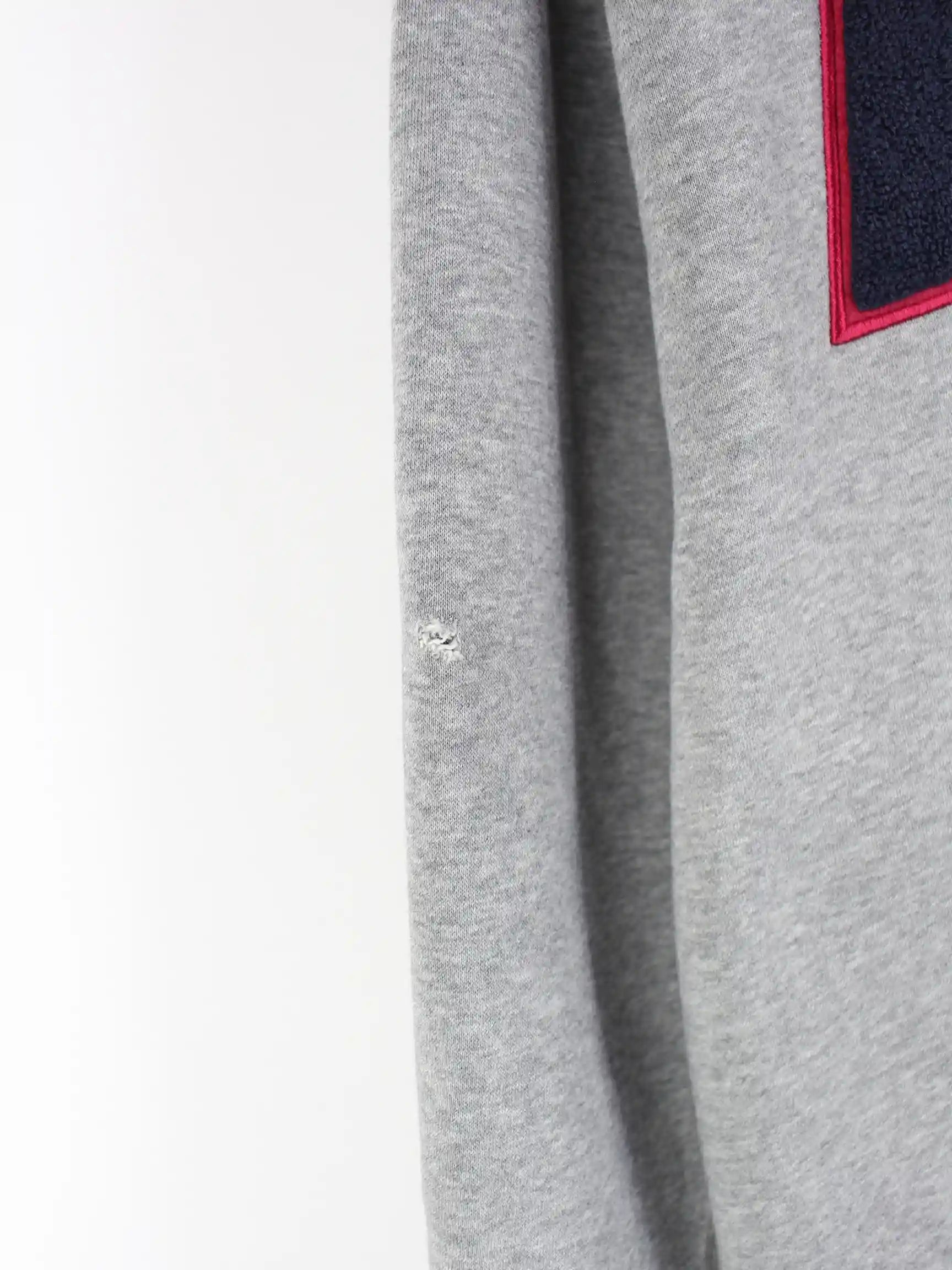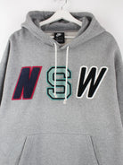Grauer Hoodie aus dem Hause Nike in Größe L. Er ist aus einer Baumwollmischung produziert und in gutem Zustand zu haben.