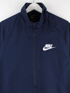 Trainingsjacke vom Label Nike in Größe M. Sie ist aus Synthetik gefertigt und in Blau im Angebot. Mit seltenem Print.
