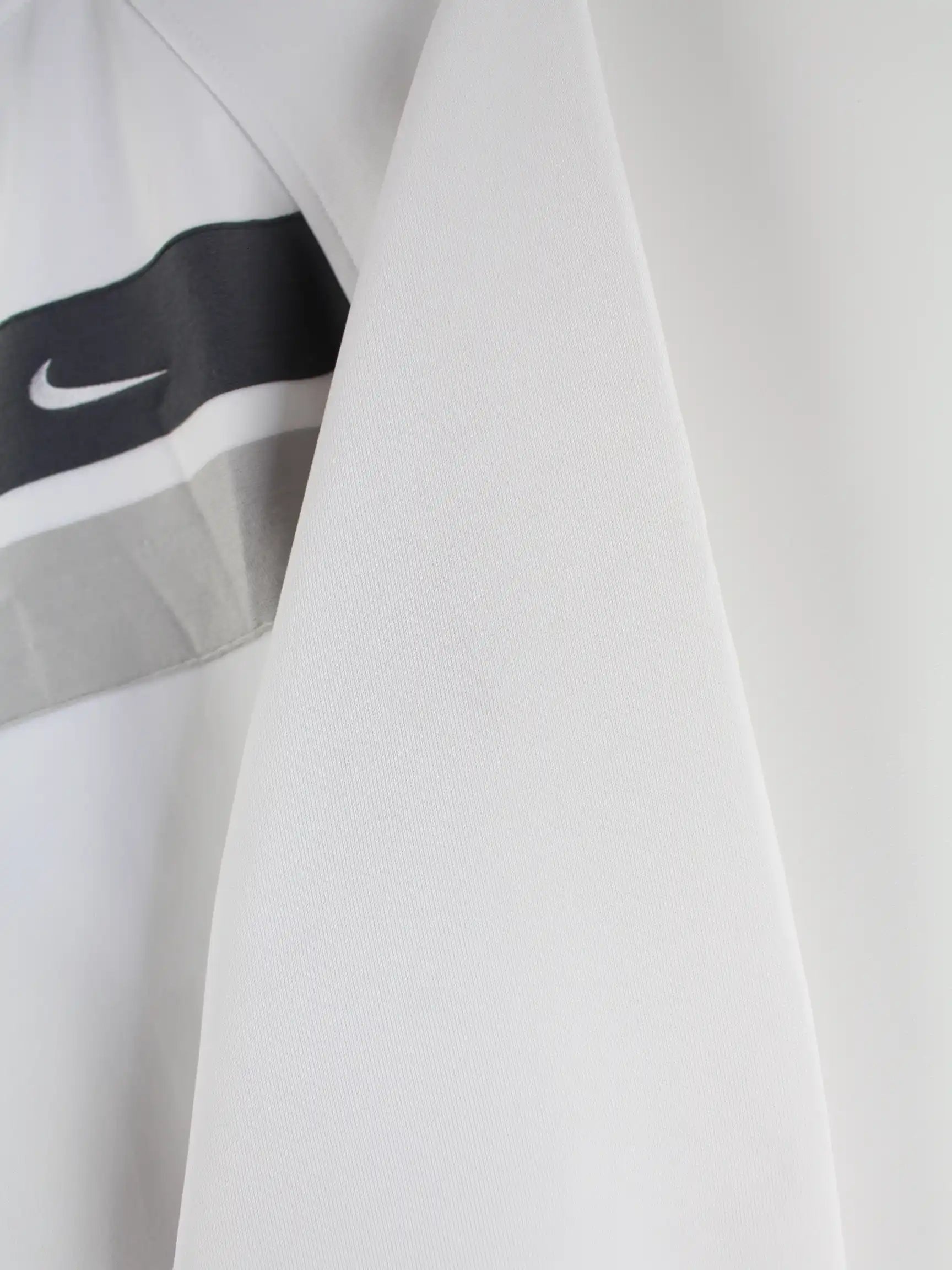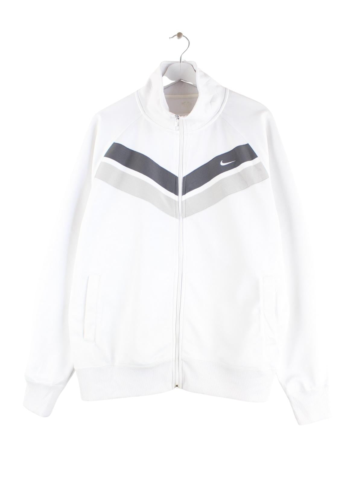 Weiße Trainingsjacke vom Brand Nike in Größe XL. Sie ist aus Synthetik gemacht und in gutem Zustand zu haben.