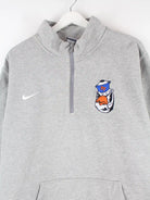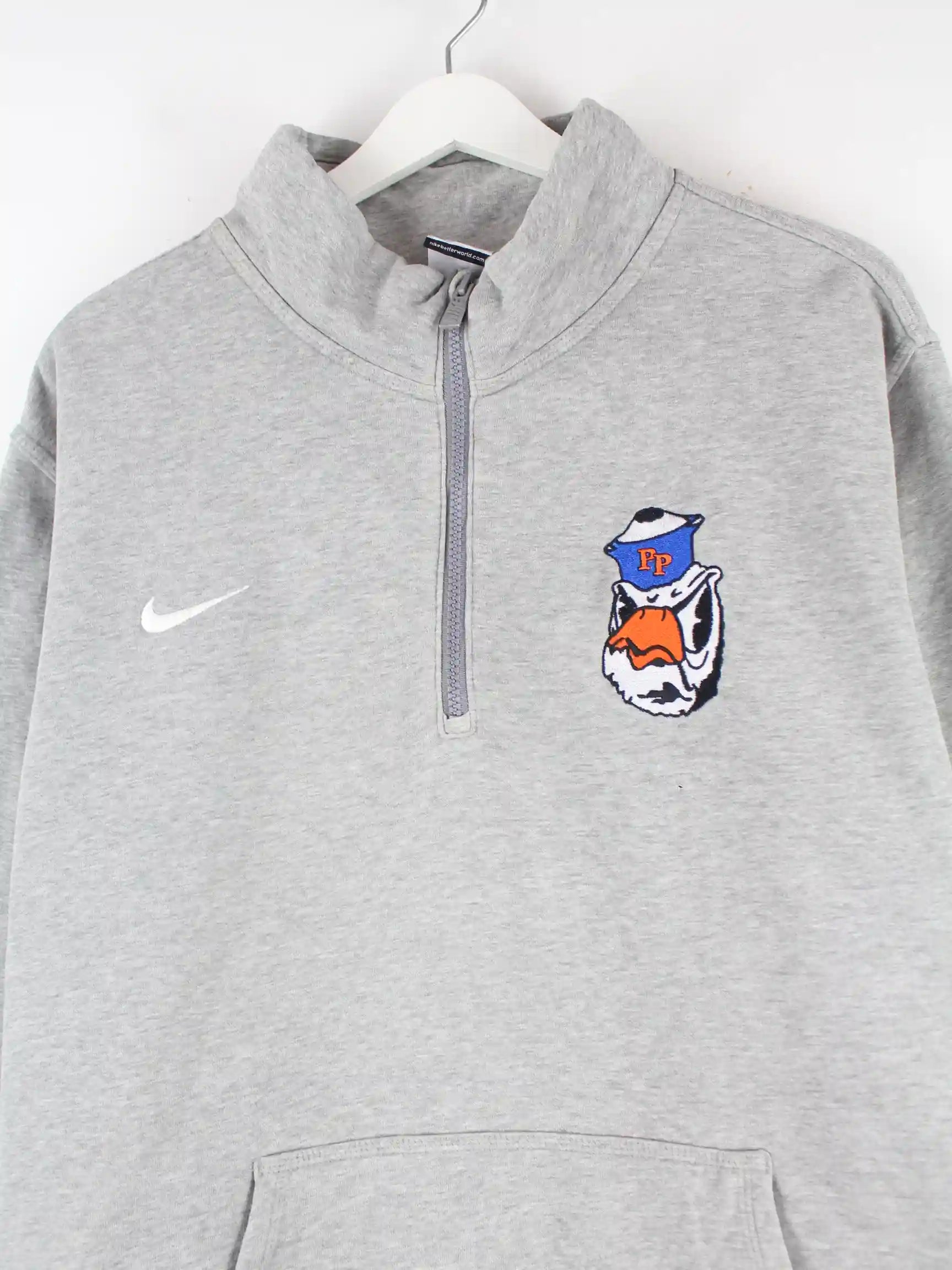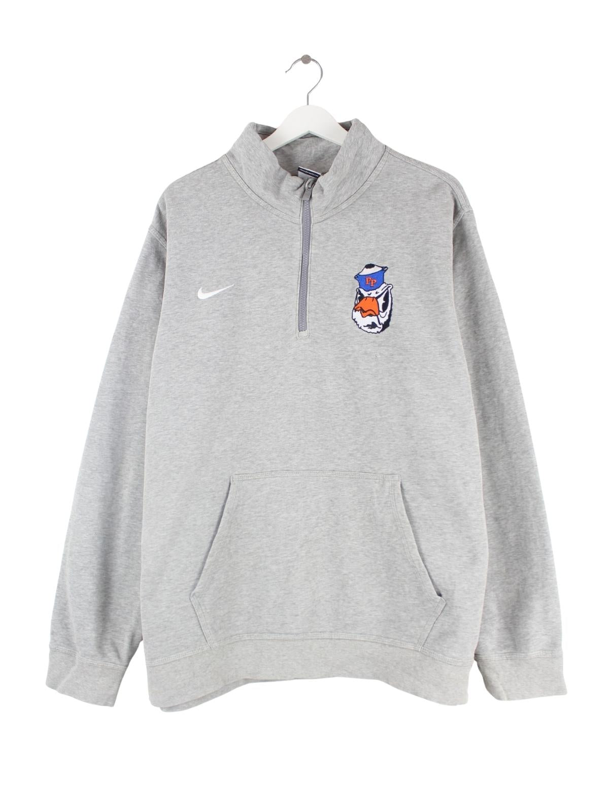 Grauer Sweater mit half Zip der Brand Nike in Größe XL. Er ist aus einer Baumwollmischung hergestellt und in gutem Zustand auf Lager.