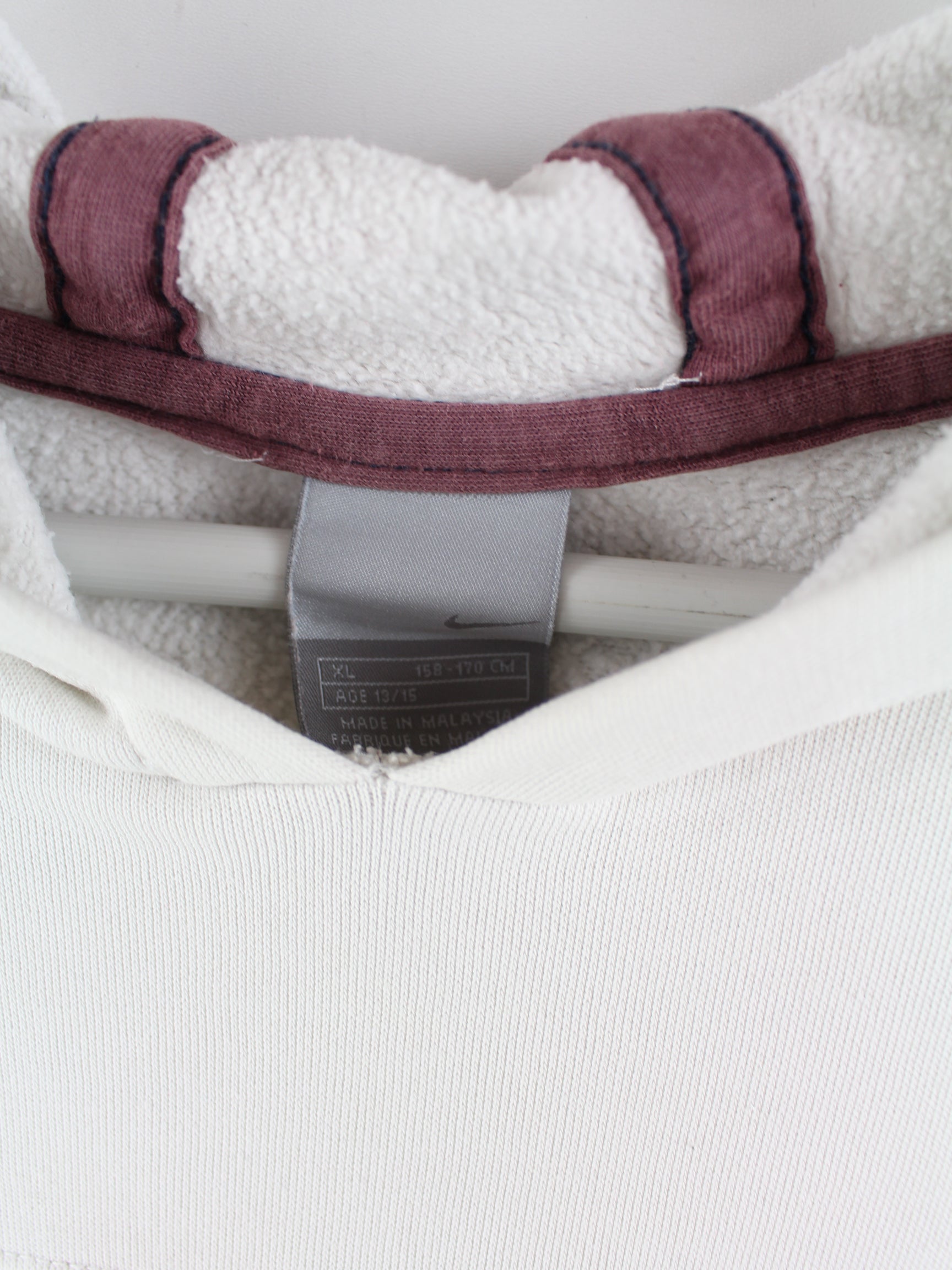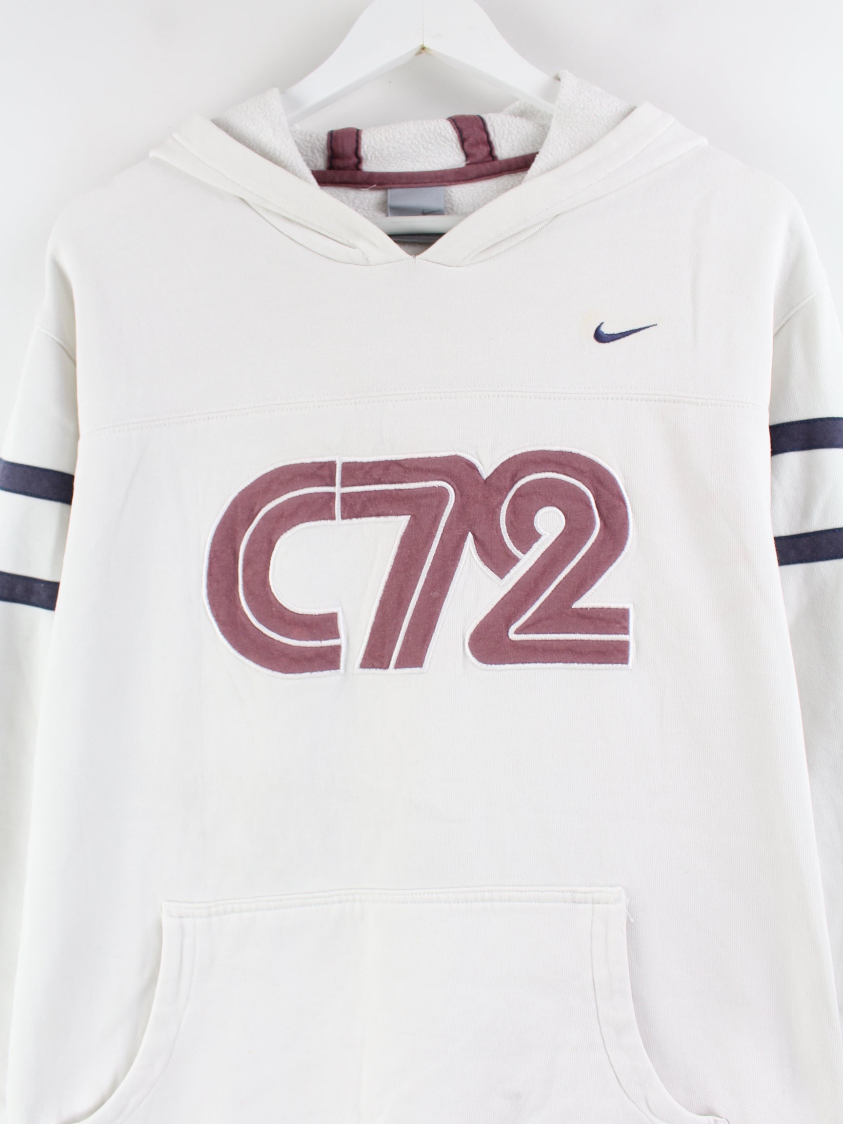 Hoodie from the Nike label with embroidered logo in size L from the early 2000s. It's made from a cotton blend and is stocked in white.