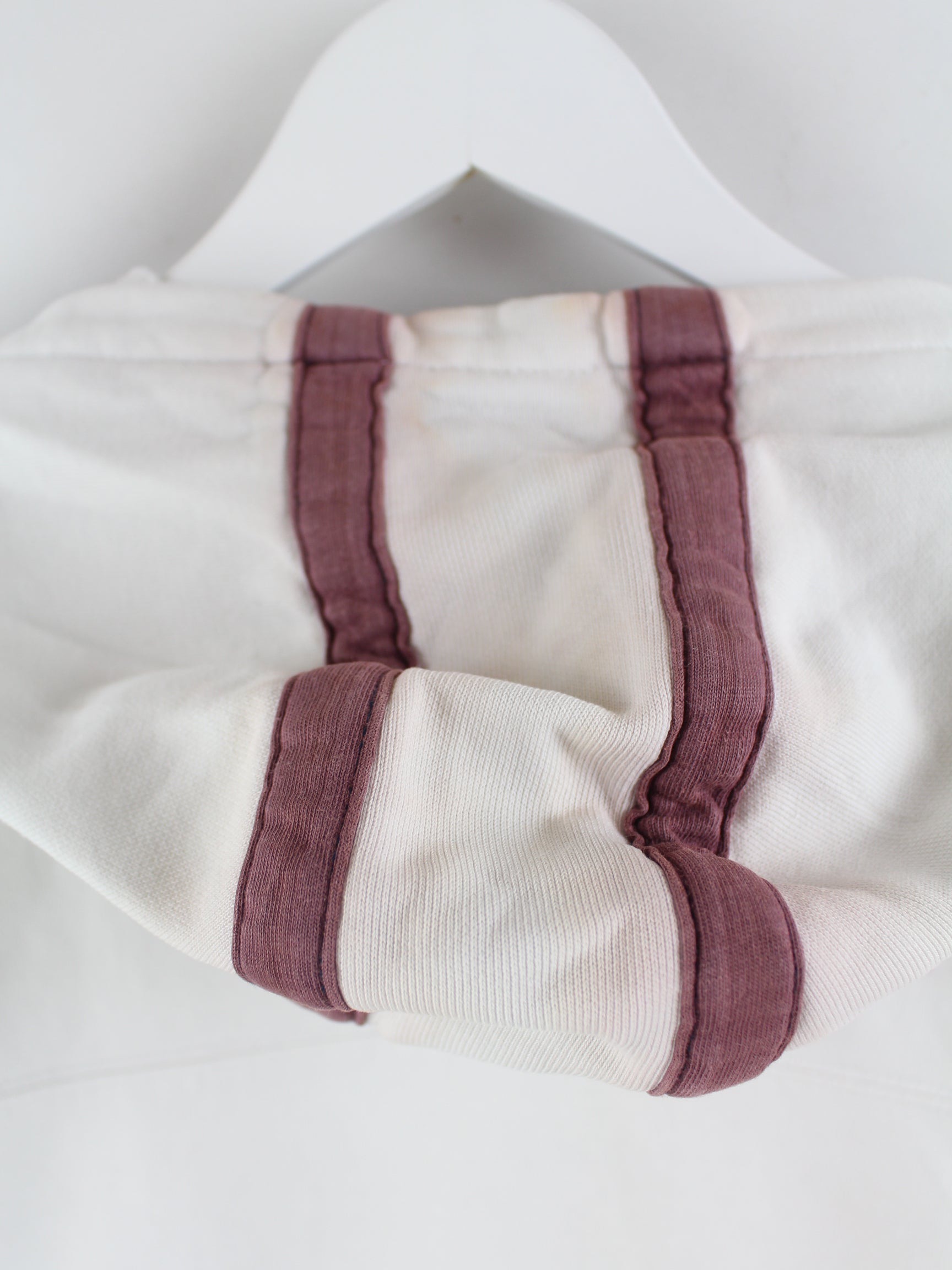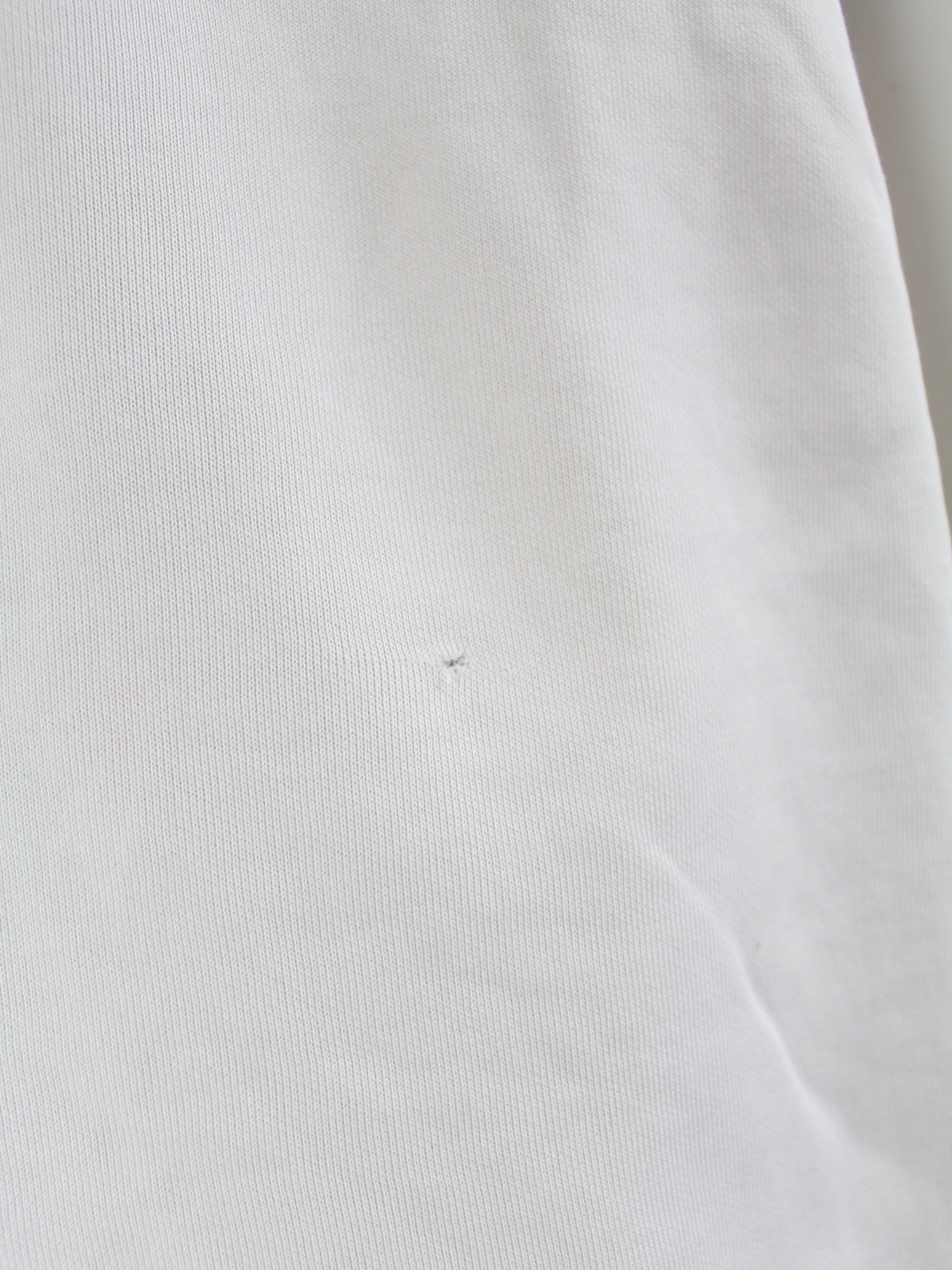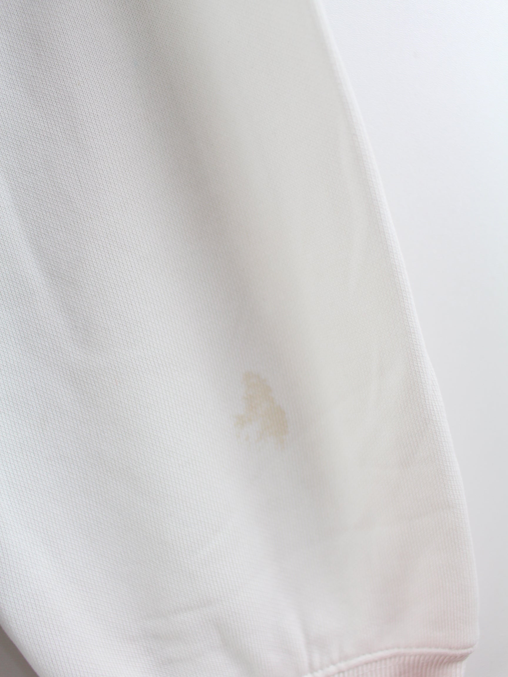 Defects: Some stains, discoloration, wear on cuffs and a small hole (see pictures)