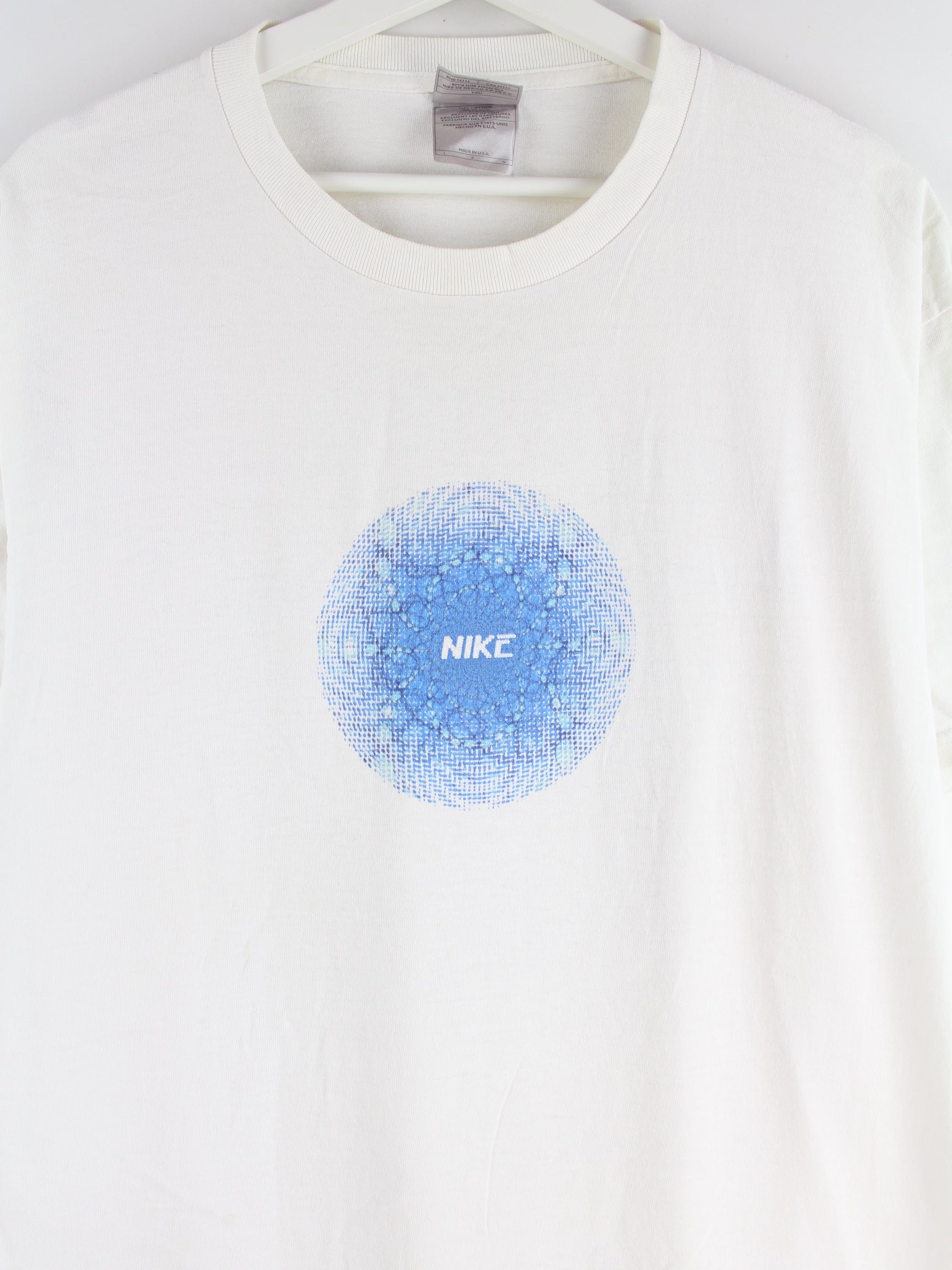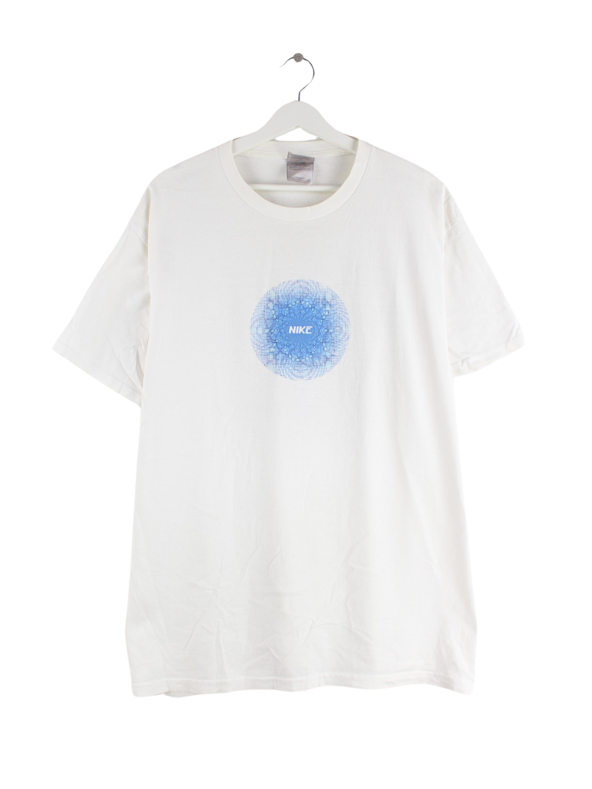 White T-shirt from the Nike label from the early 2000s in size XL. It is made from a cotton blend and is offered in good condition. With a chic y2k print.