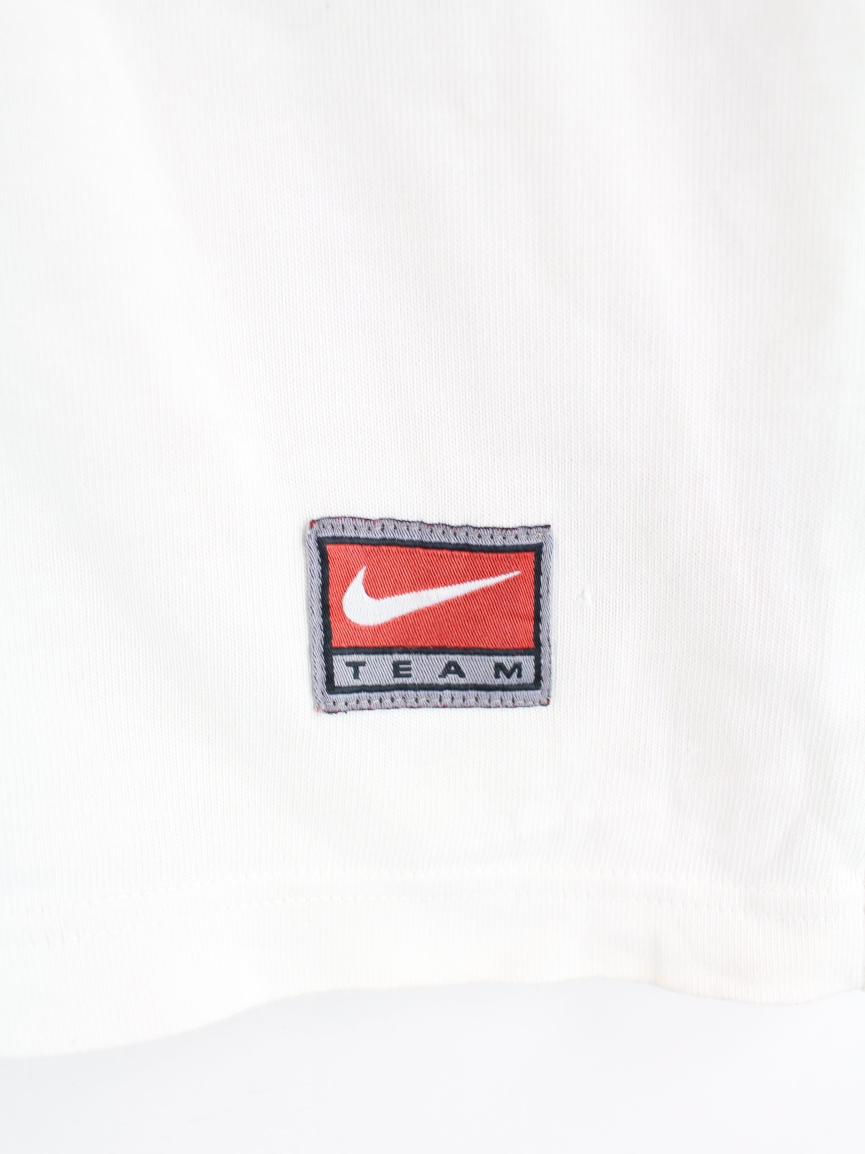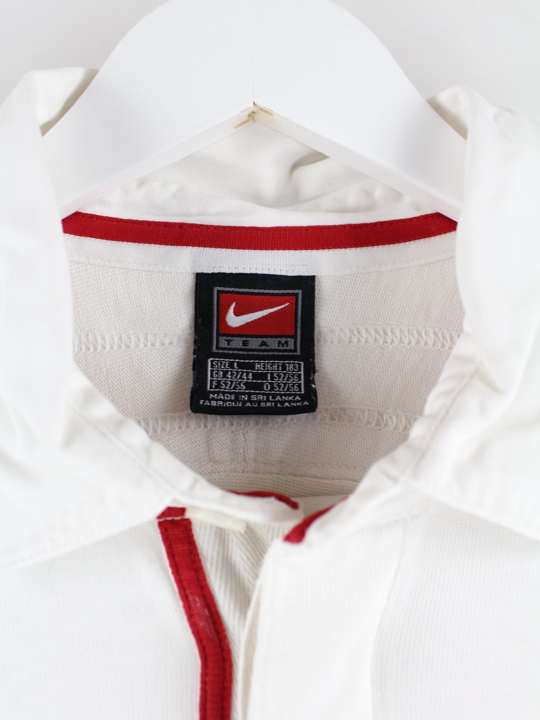 Polo shirt from Nike with embroidered logo in size L from the early 2000s. It is made of cotton and is available from us in white.