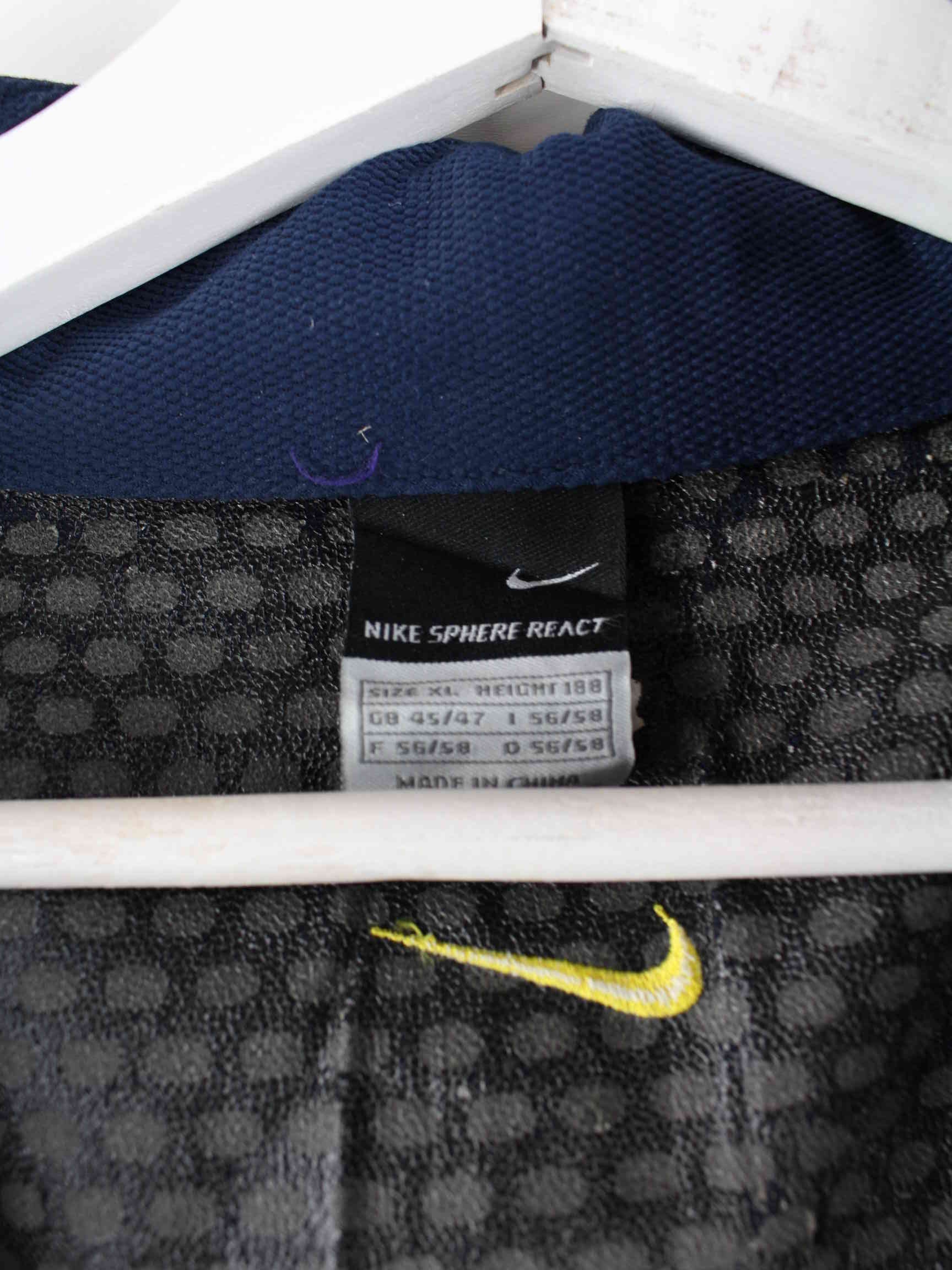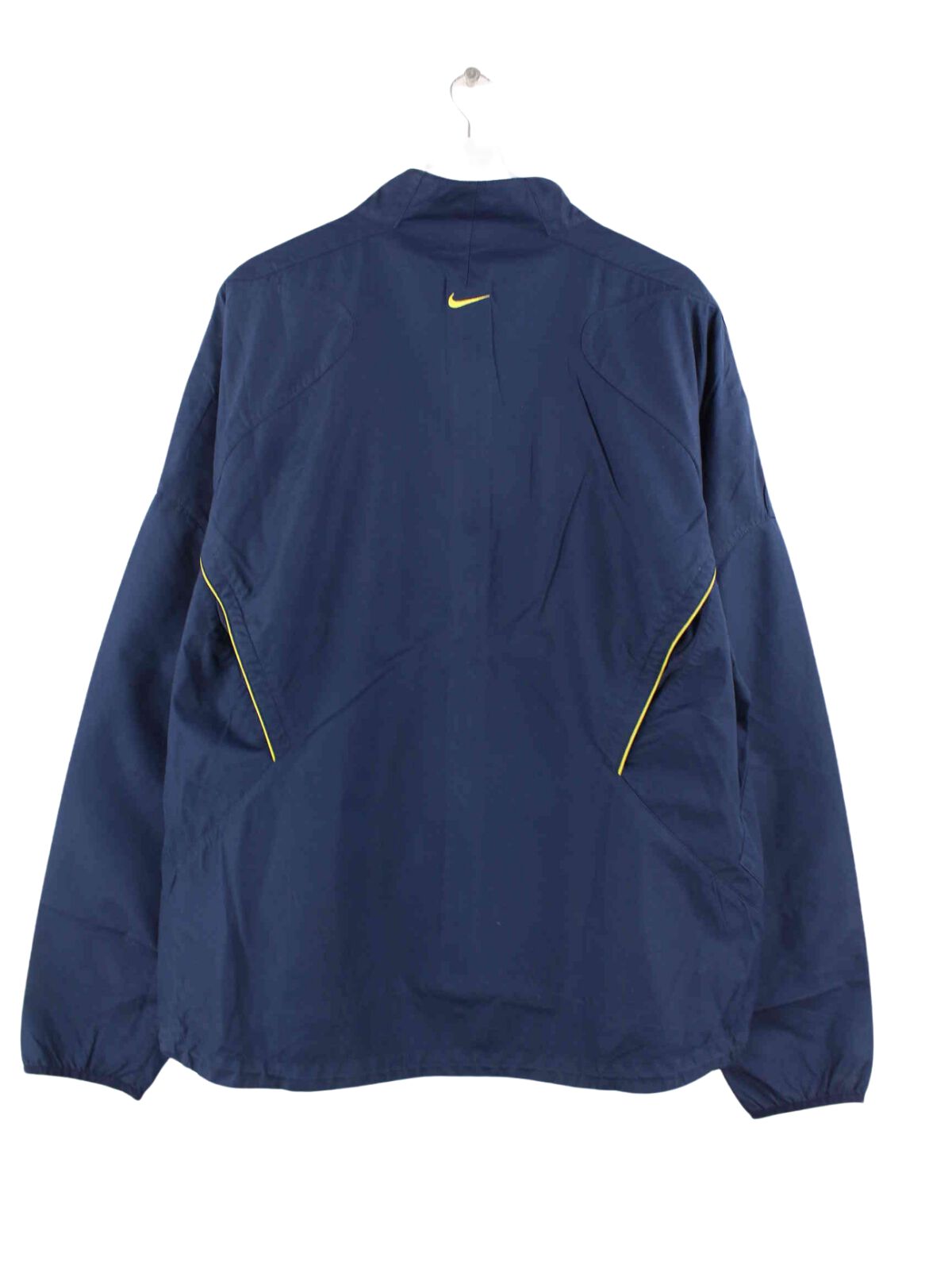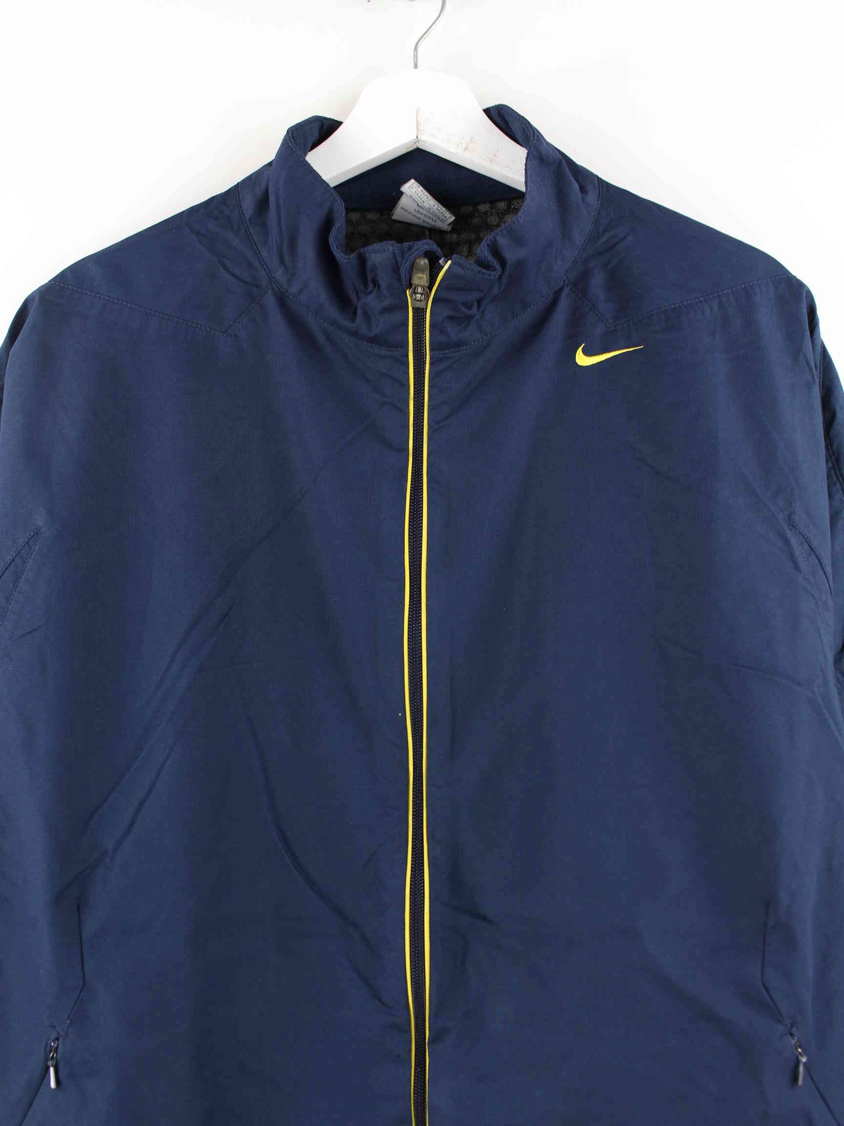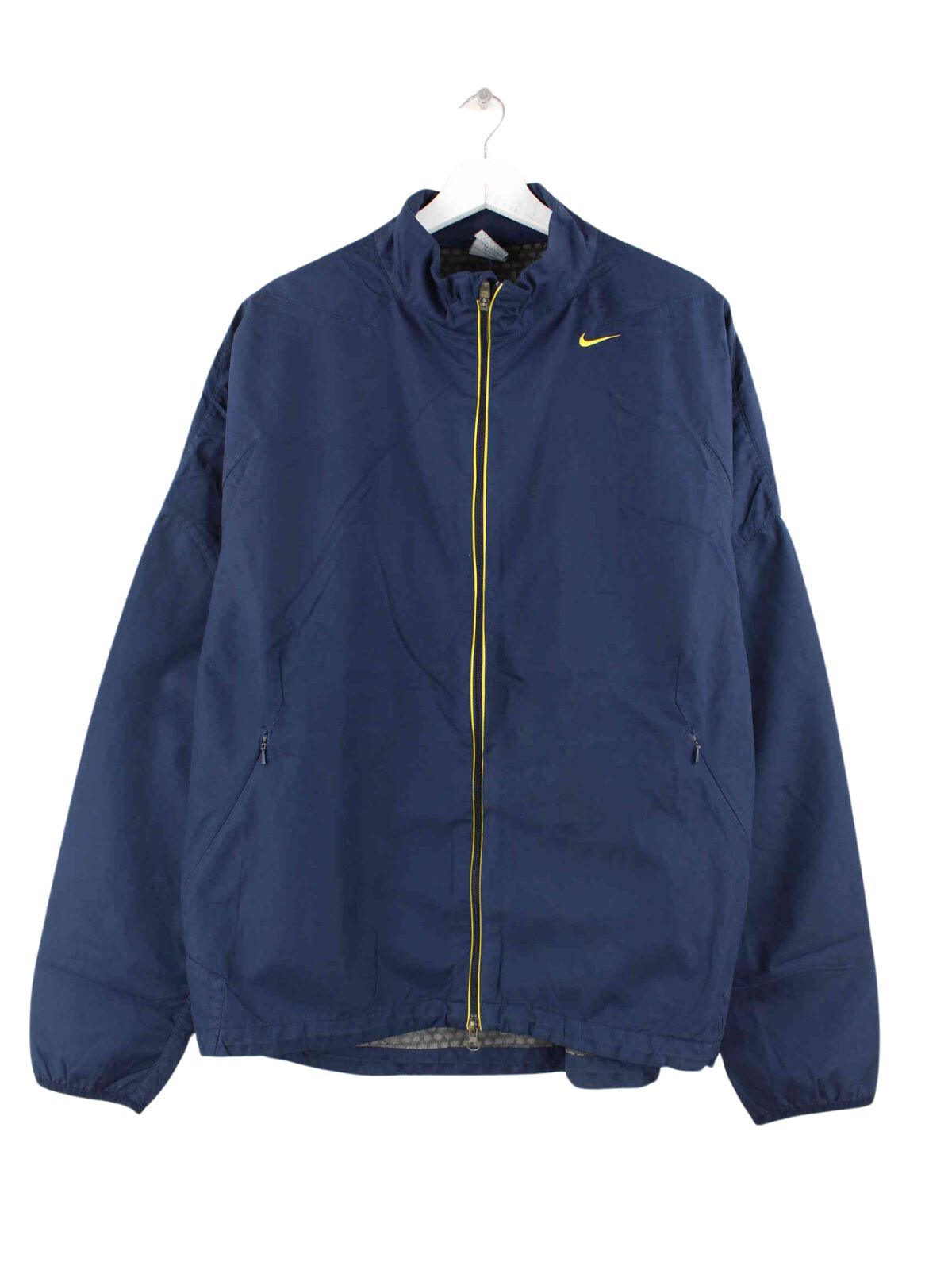 Nike brand training jacket in size XL from the early 2000s. It is made of synthetic and comes in blue.