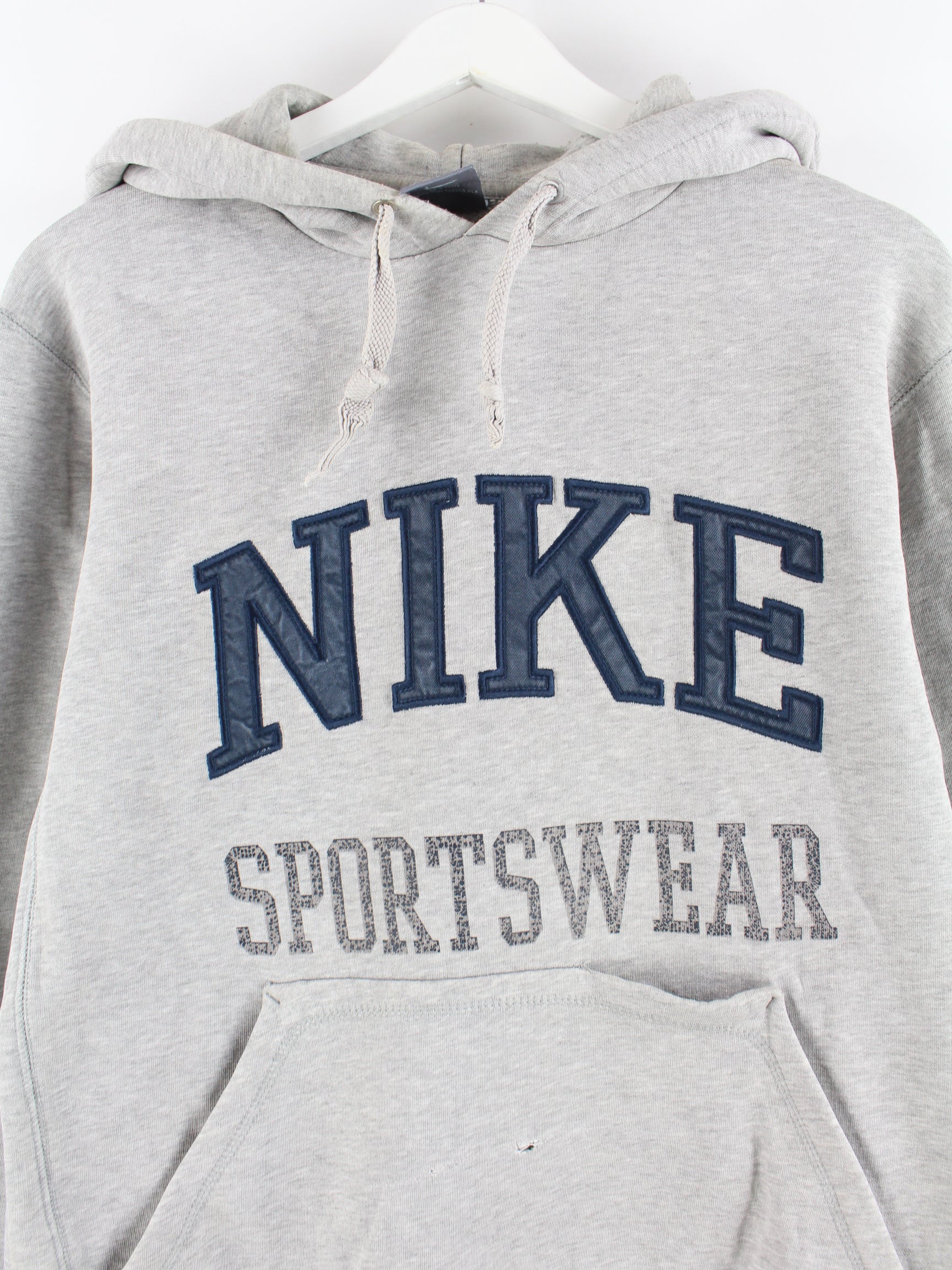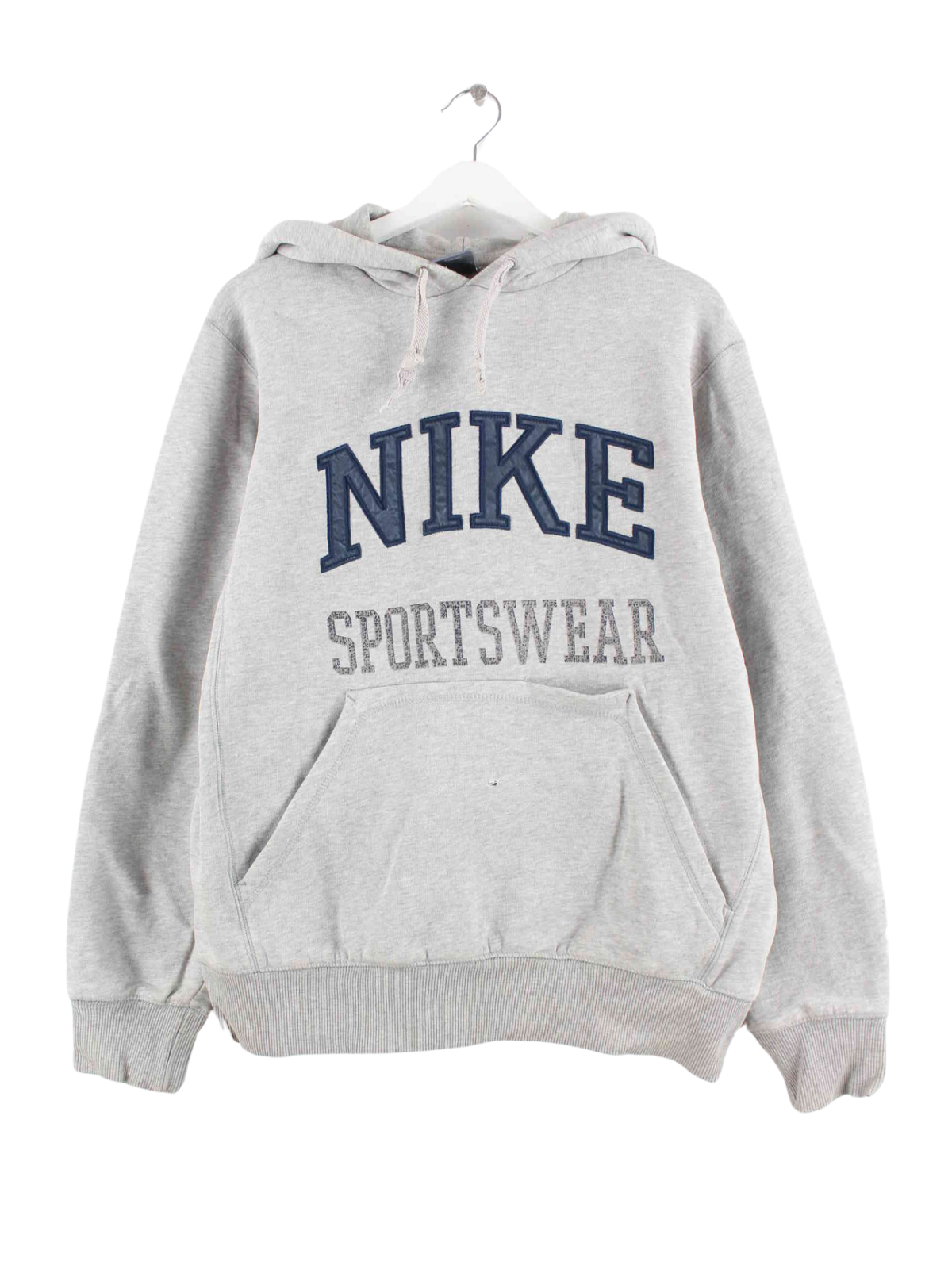 Hoodie from Nike with embroidered patterns in size M from the early 2000s. It is made from a cotton blend and is available in gray.