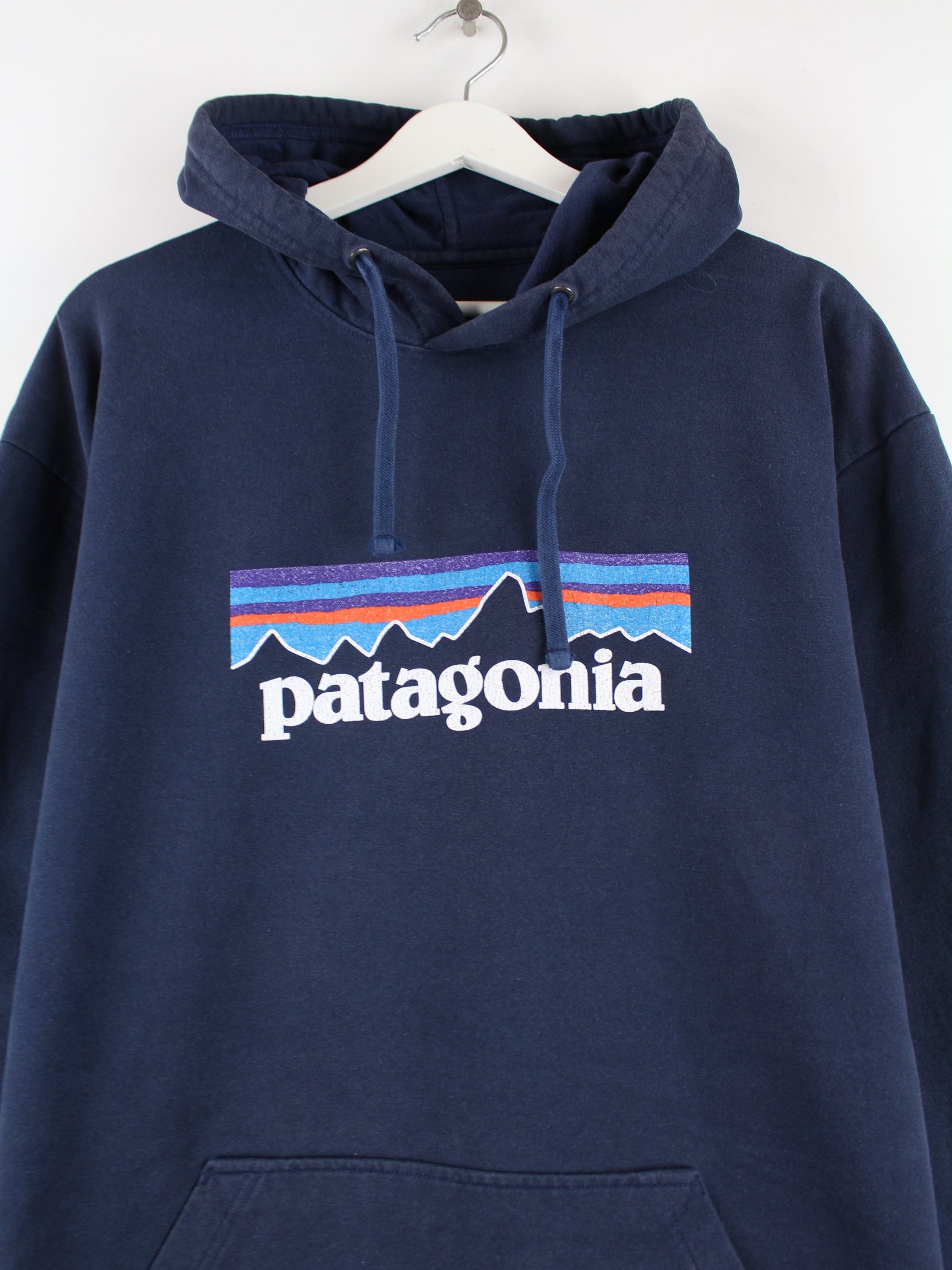 Blue hoodie from Patagonia in size XL. It is made from a cotton blend and is in good condition. With a nice print.