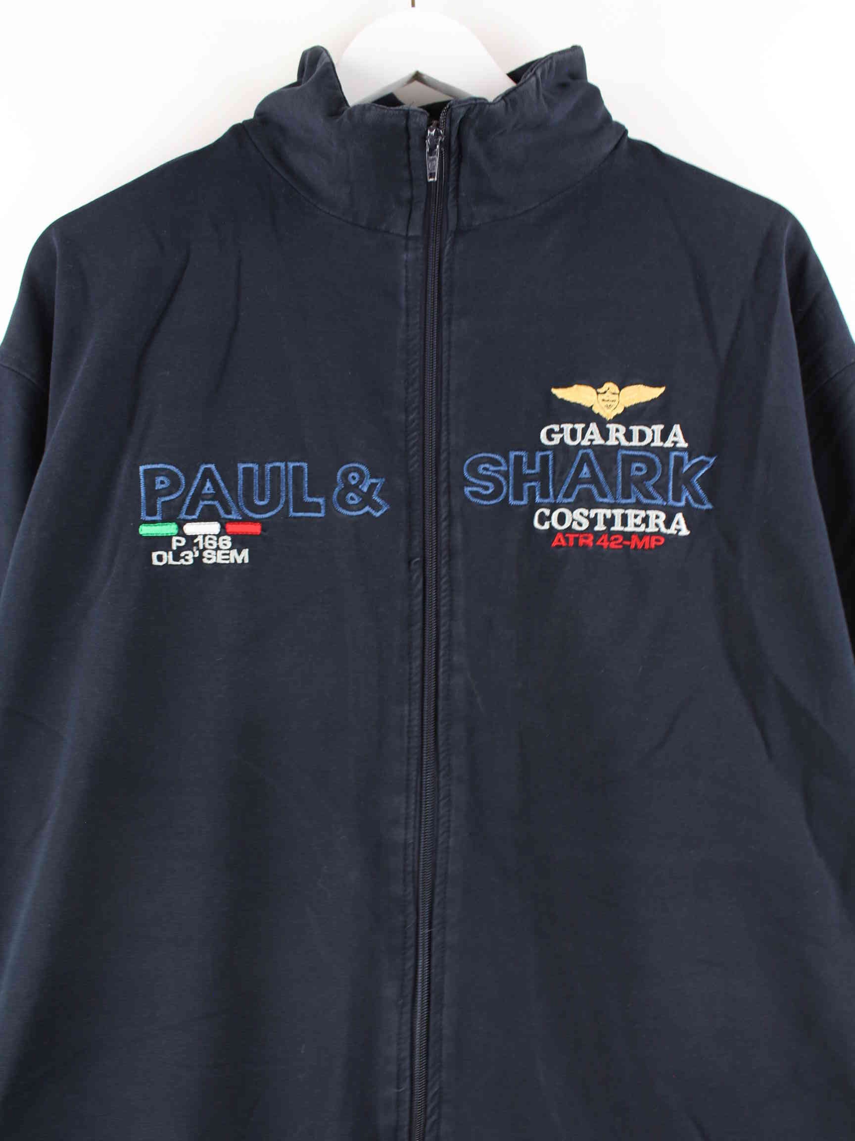 Black sweat jacket with embroidered logo from the brand Paul & Shark in size 3XL. It is made from a cotton blend and is in very good condition.