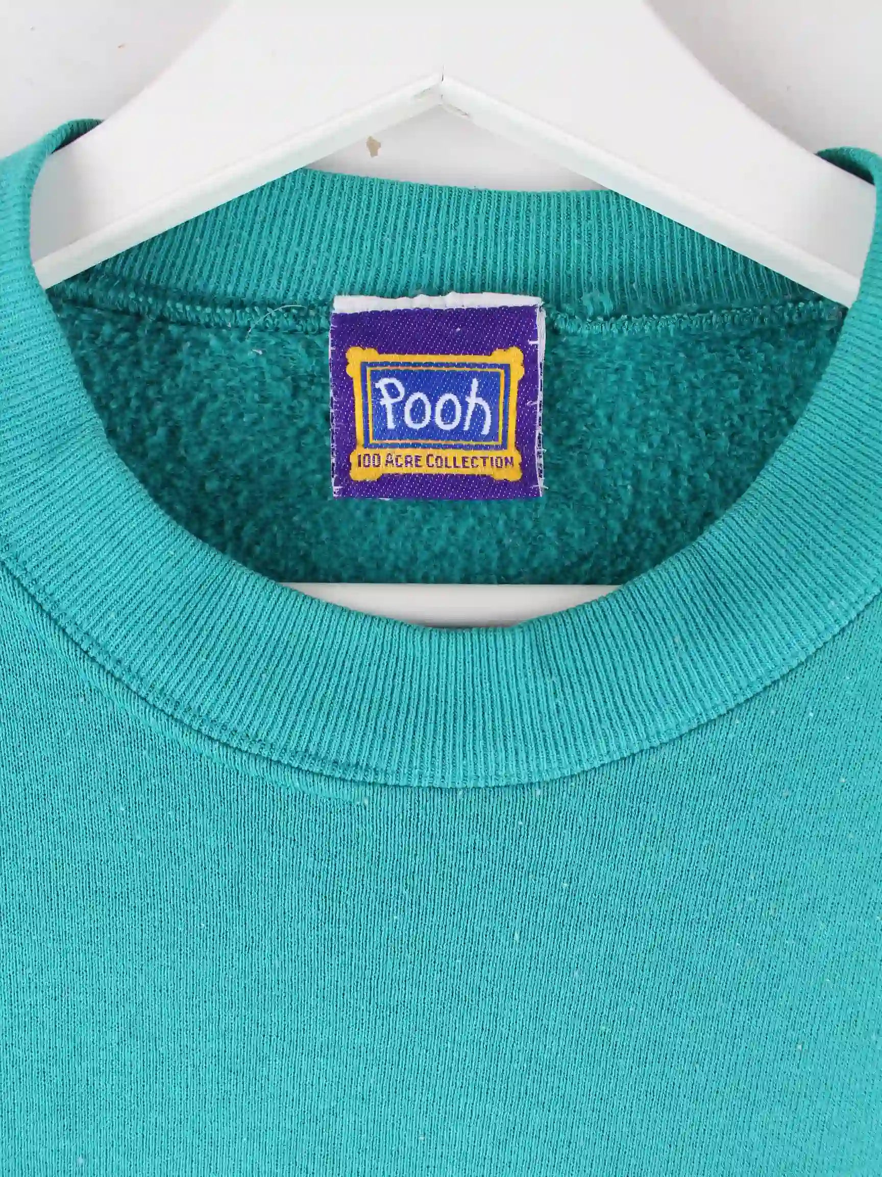 Grüner Sweater mit Stick der Marke Pooh aus den 90'ern in Größe M. Er ist aus einer Baumwollmischung . Den Zustand würden wir als 'In Ordnung' bezeichnen (vergl. Bilder).