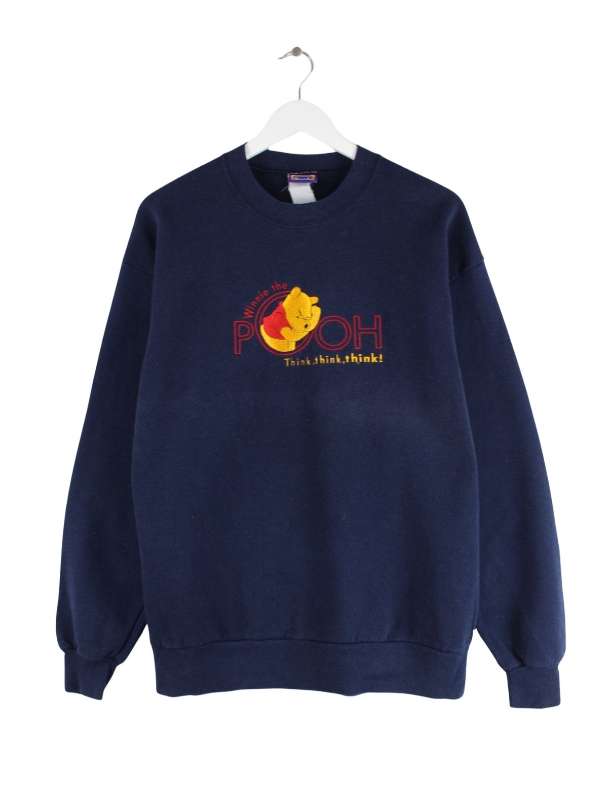 Sweater vom Label Pooh in Größe L aus den 90'ern. Er ist aus einer Baumwollmischung produziert und in Blau zu haben.