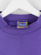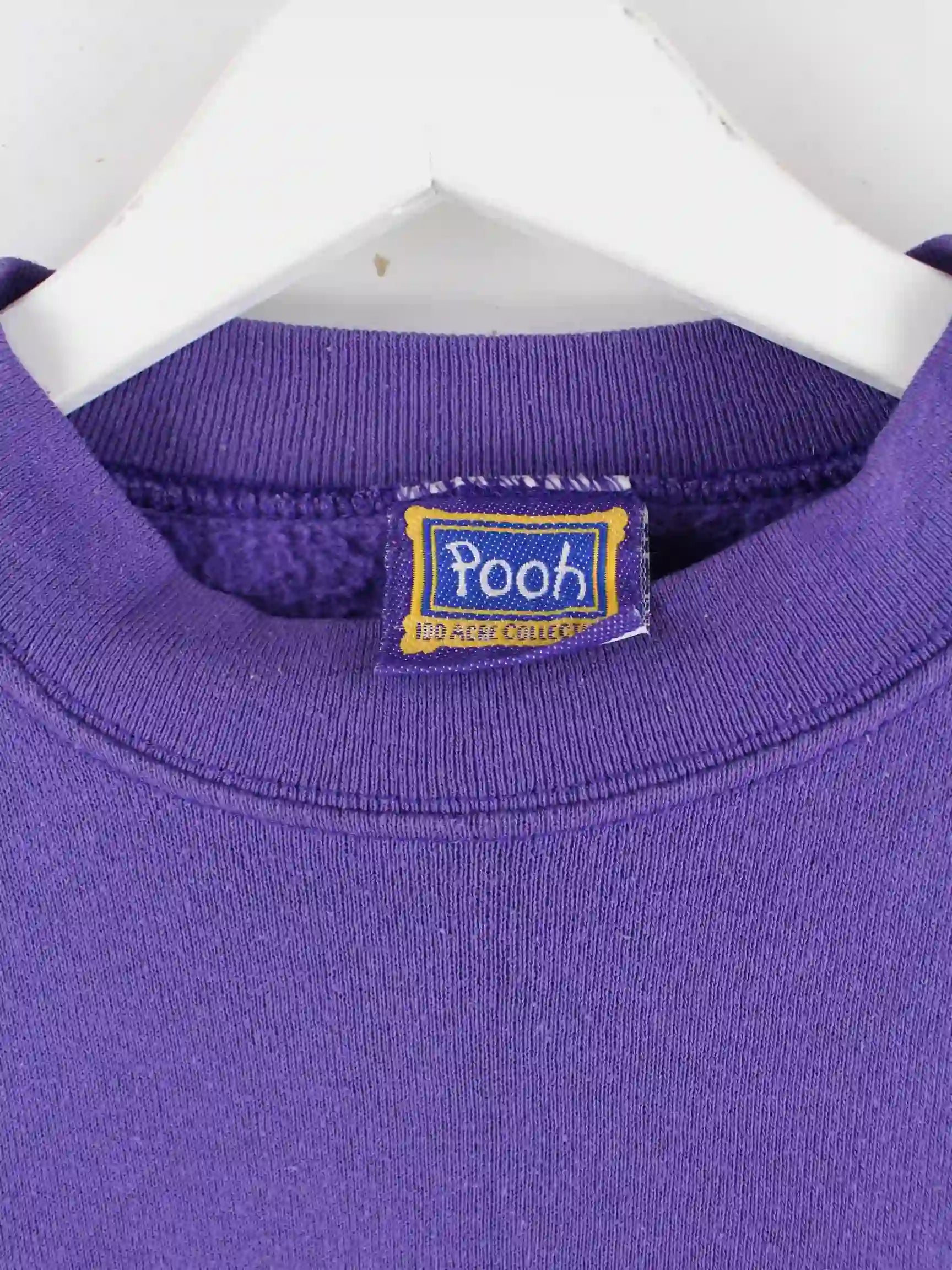 Lilafarbener Sweater mit Stickereien von Pooh aus den 90'ern in Größe S. Er ist aus einer Baumwollmischung produziert und in gutem Zustand bei uns zu bekommen.