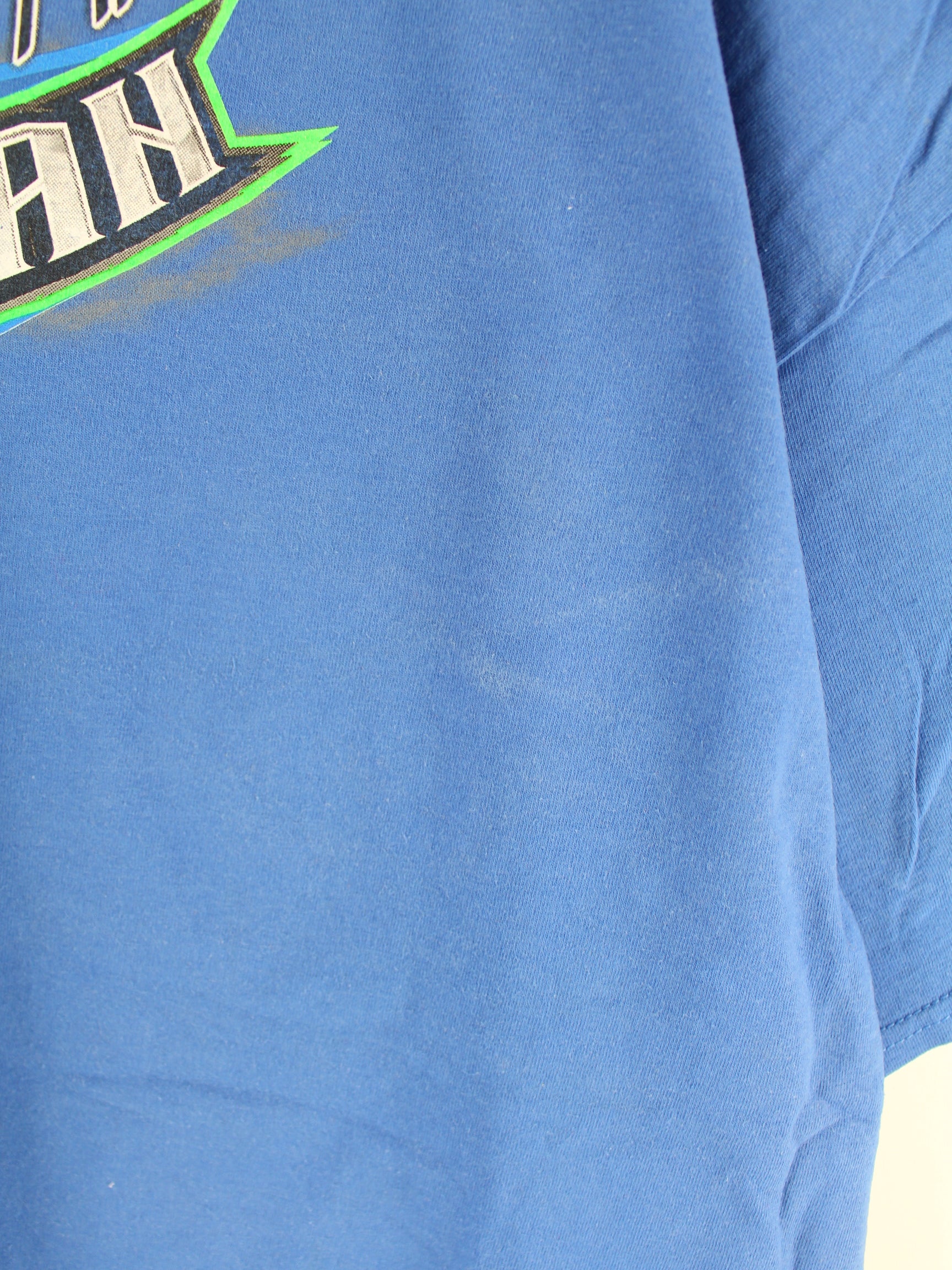 T-shirt from the brand Port & Company in size 5XL. It is made of cotton and available in blue. With a rare racing print.