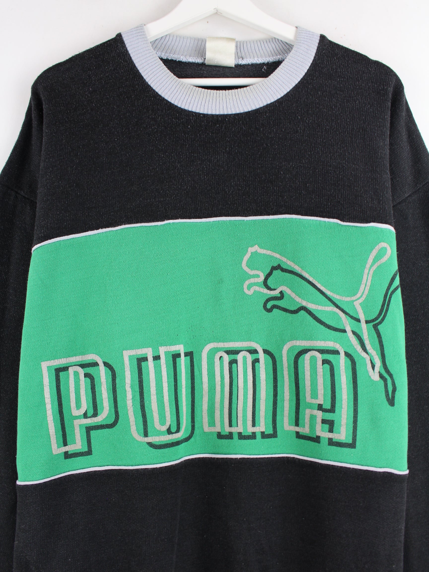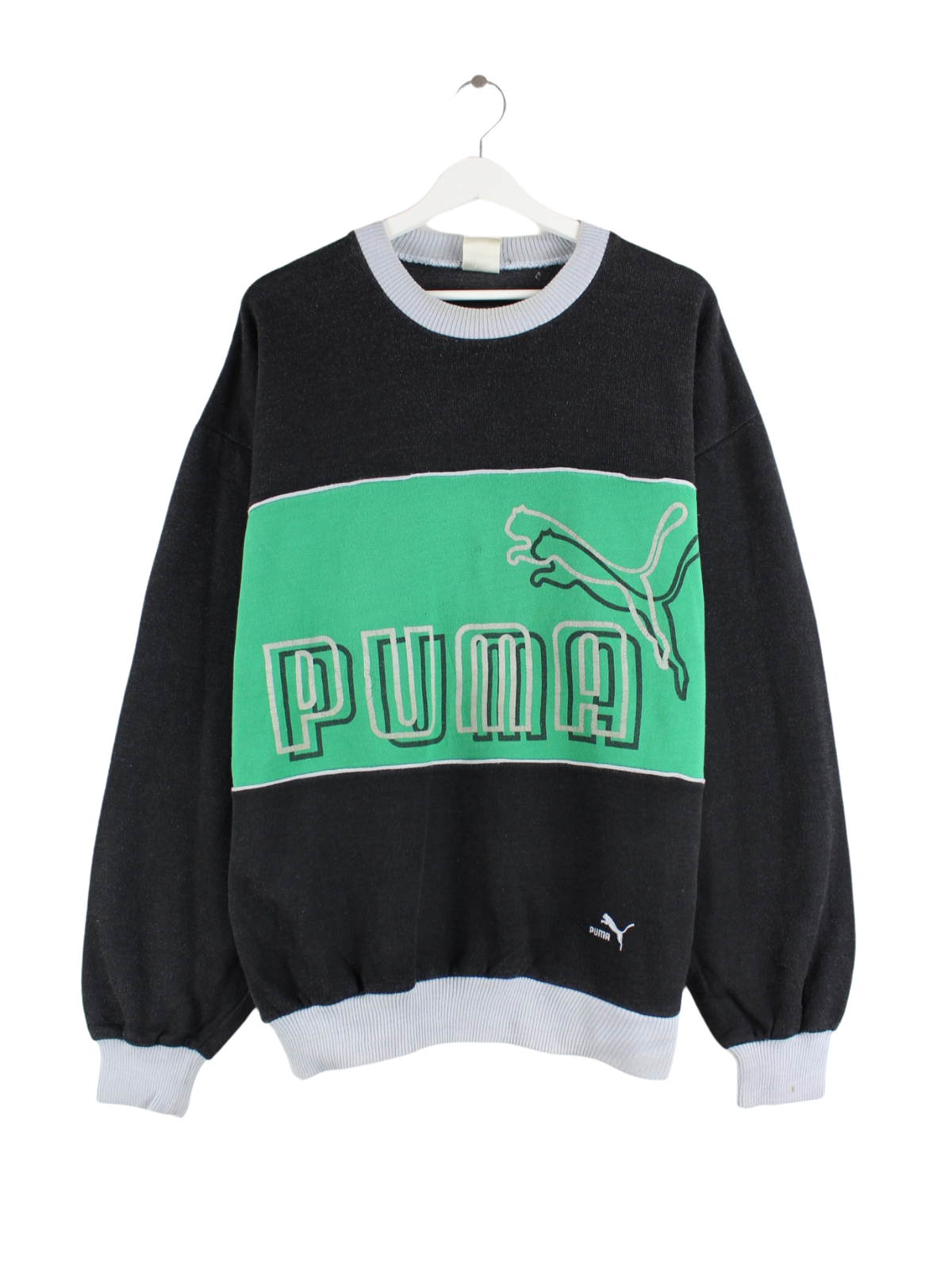 Grey sweater by Puma from the 80's in size XL. It is made from a cotton blend and is in good condition. With a chic vintage print.